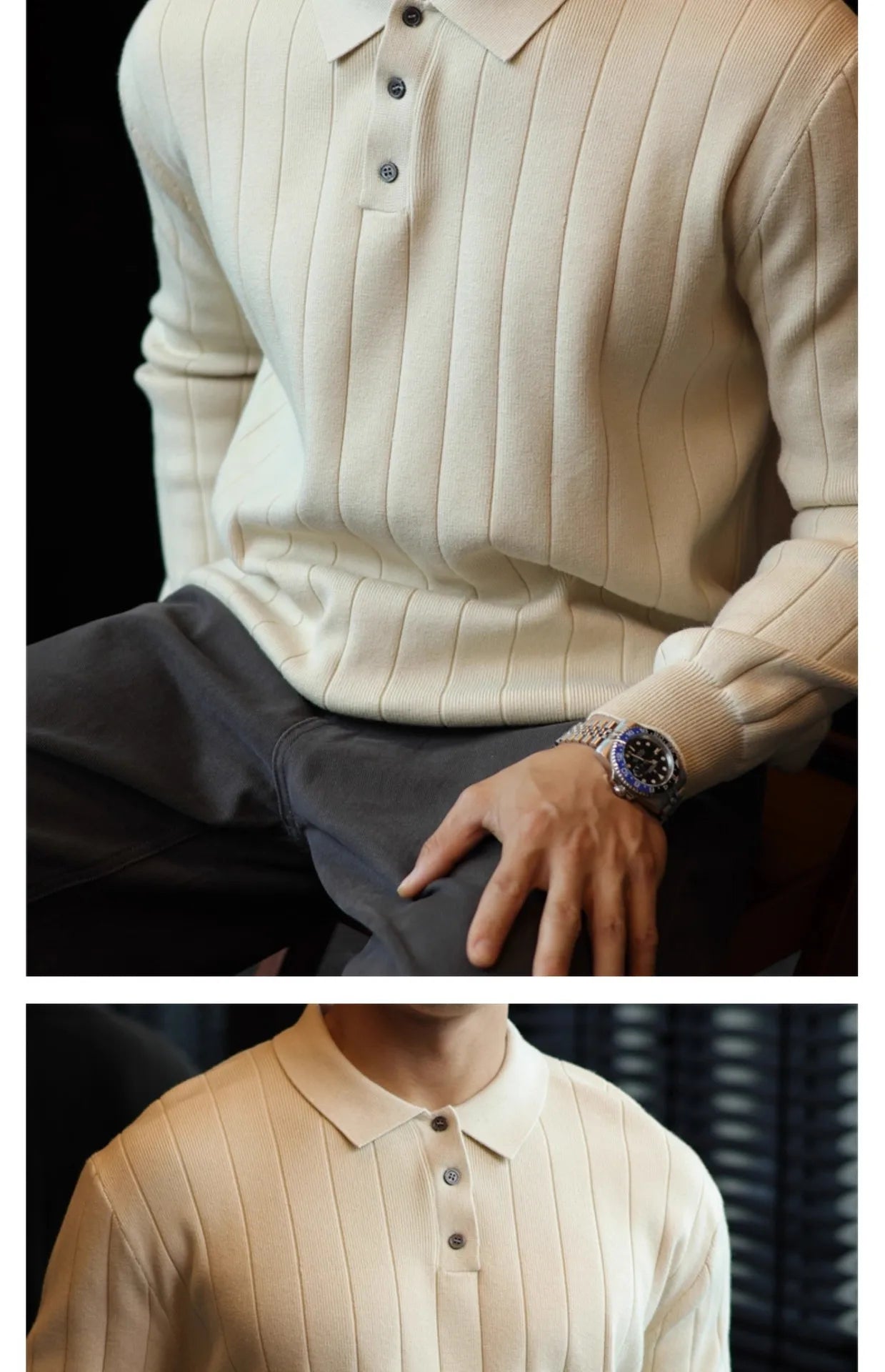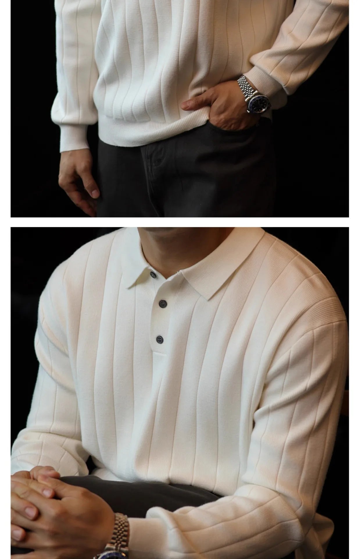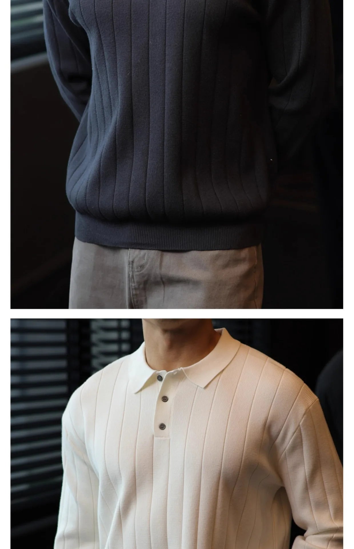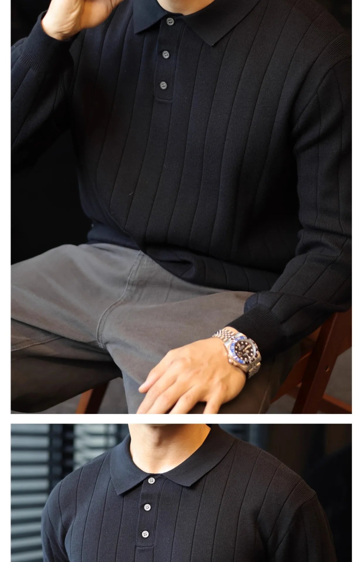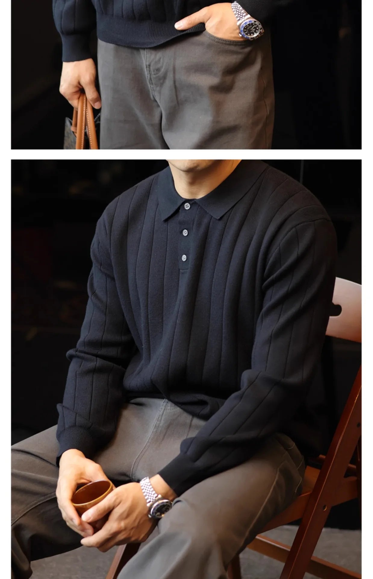 New Japanese Business Men Polo Sweater Light Luxury Knit Slim-fit Long Sleeve Pullover Premium Solid Color Basic Knitwear M-3XL