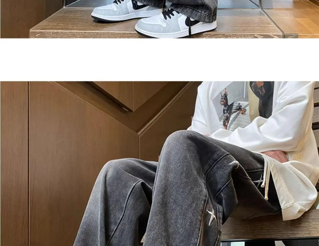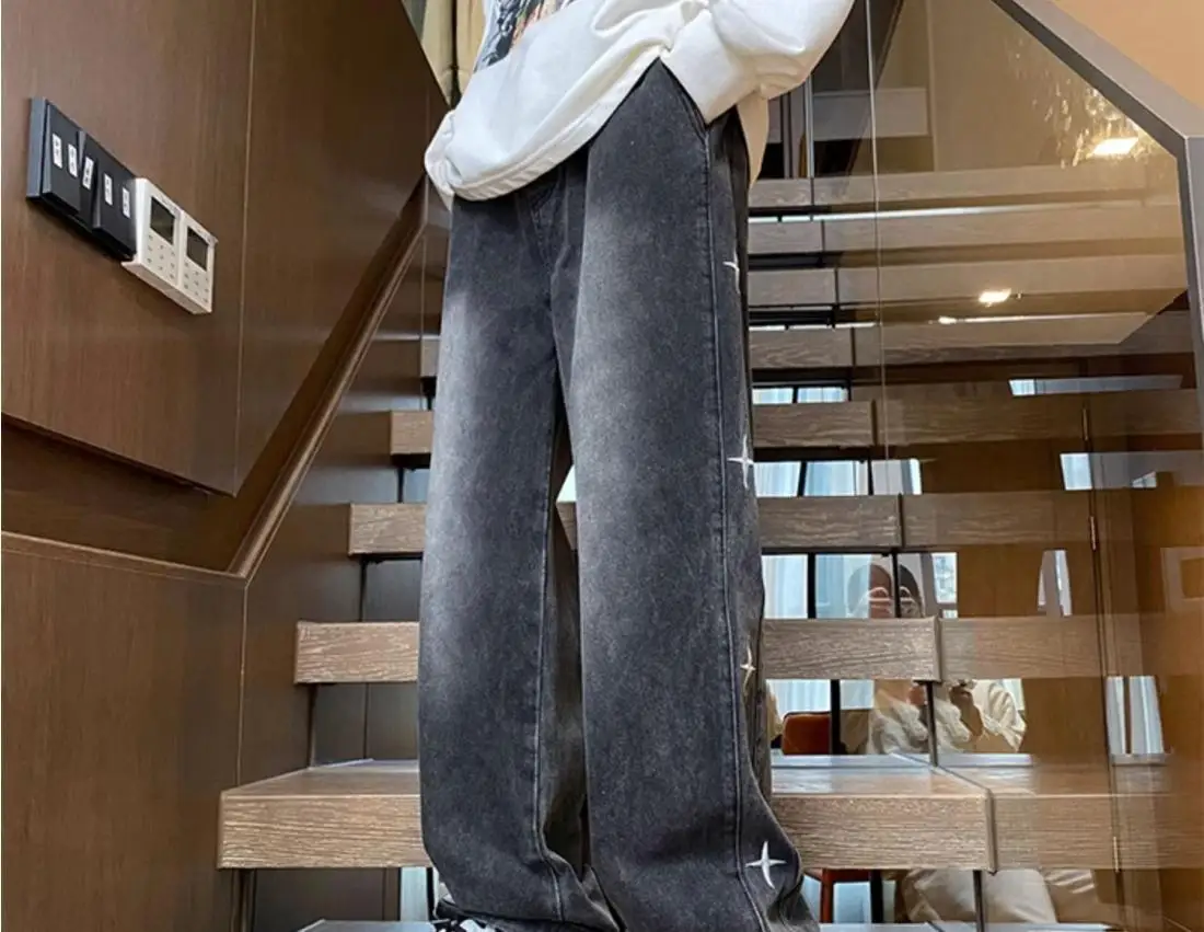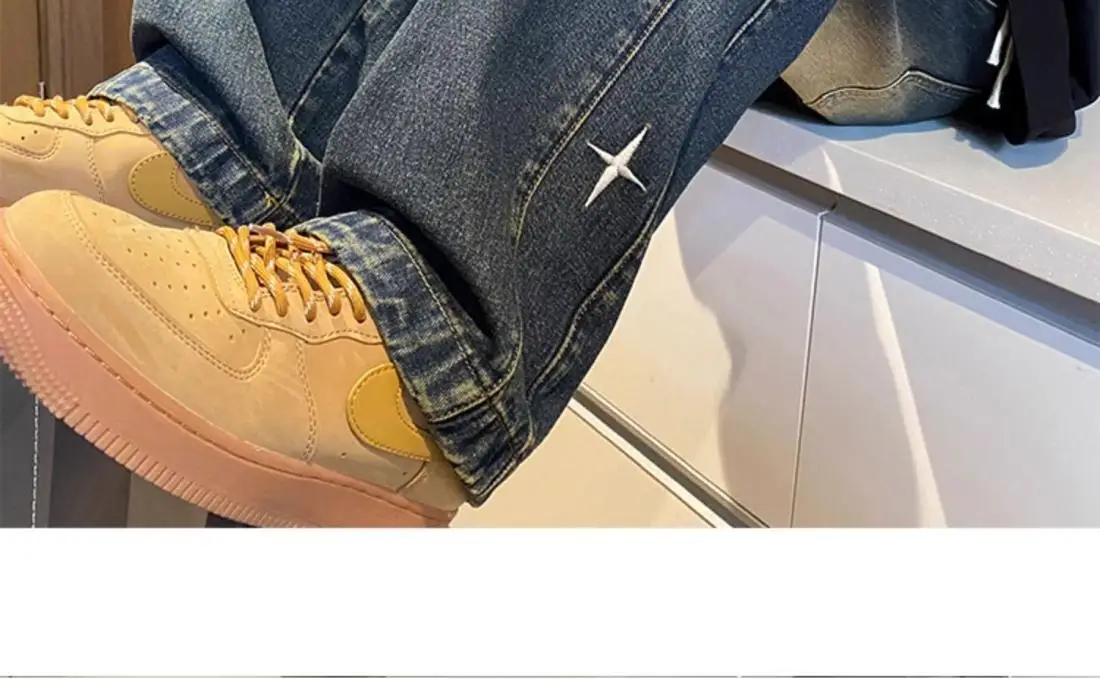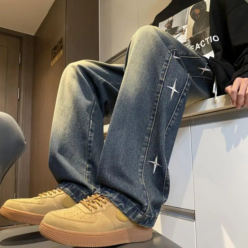 Riolio American retro men and women trendy star shaped graphic design straight leg jeans loose hip-hop wide leg casual pants y2k