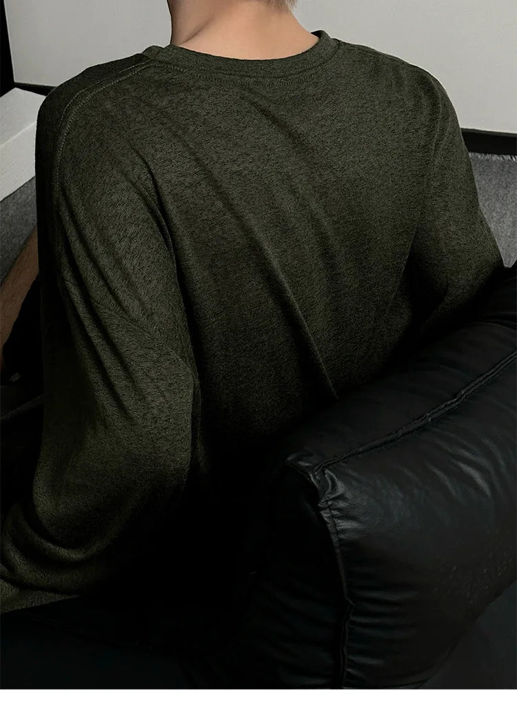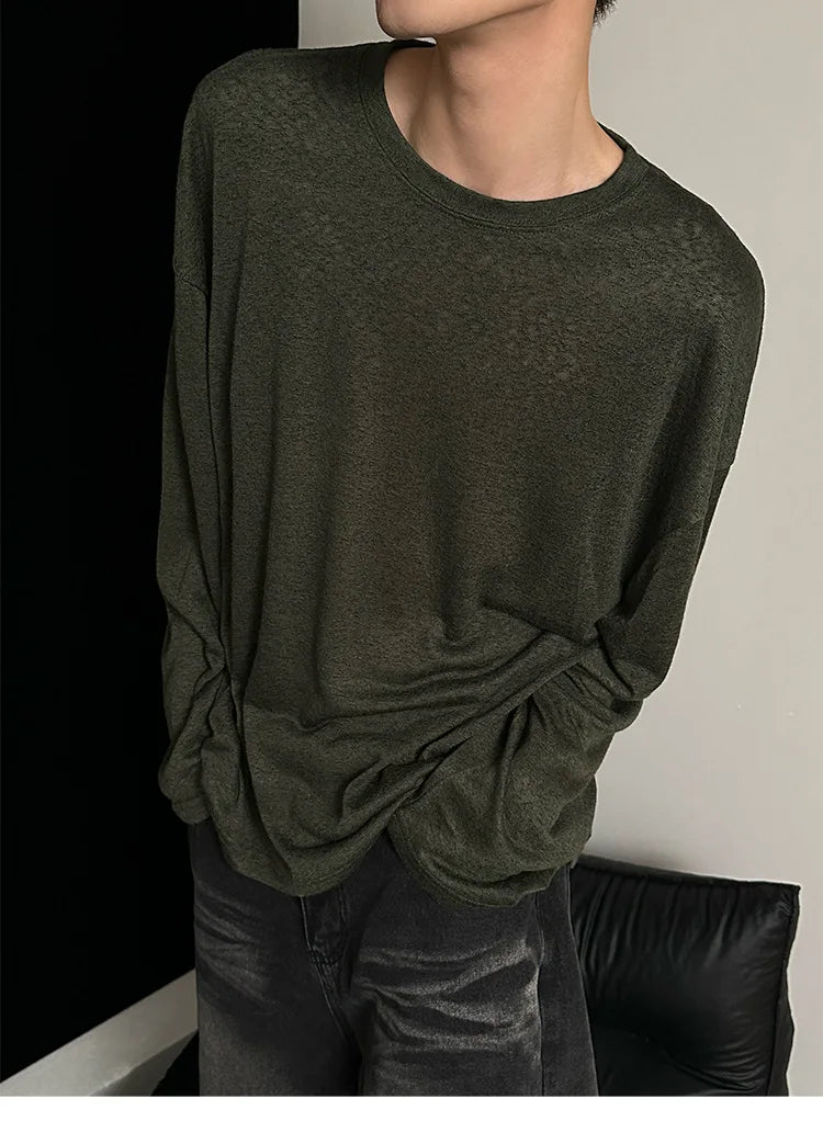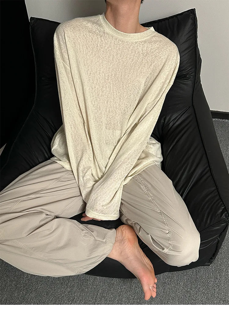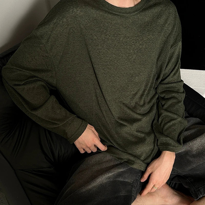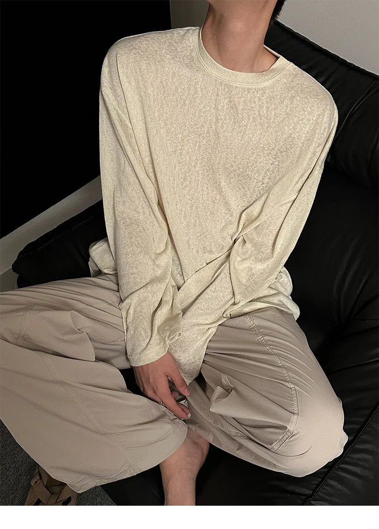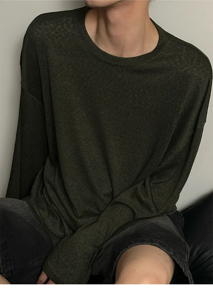Riolio Autumn Laid-back Style Draping Men's T-shirt Luxury Korean Popular O Neck Long Sleeve Tees Leisure Loose Lightweight Basic Shirt