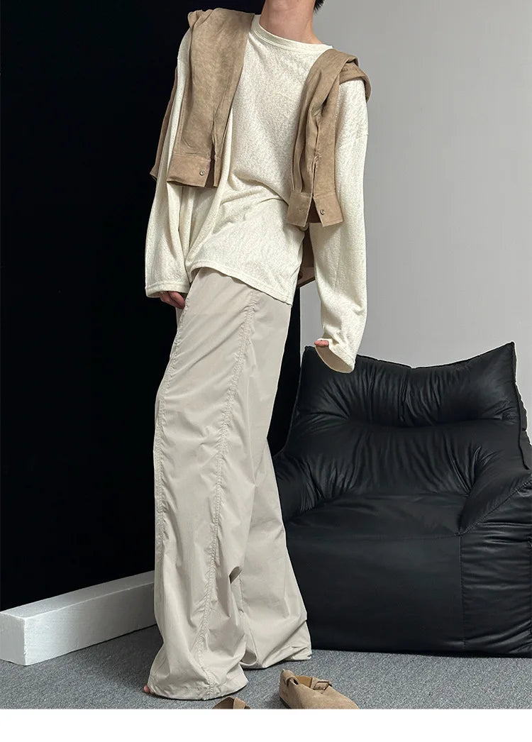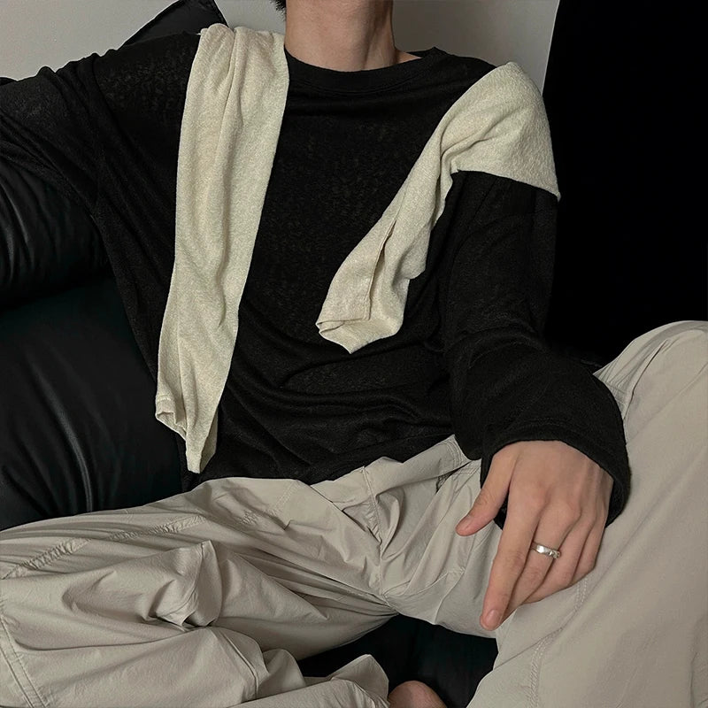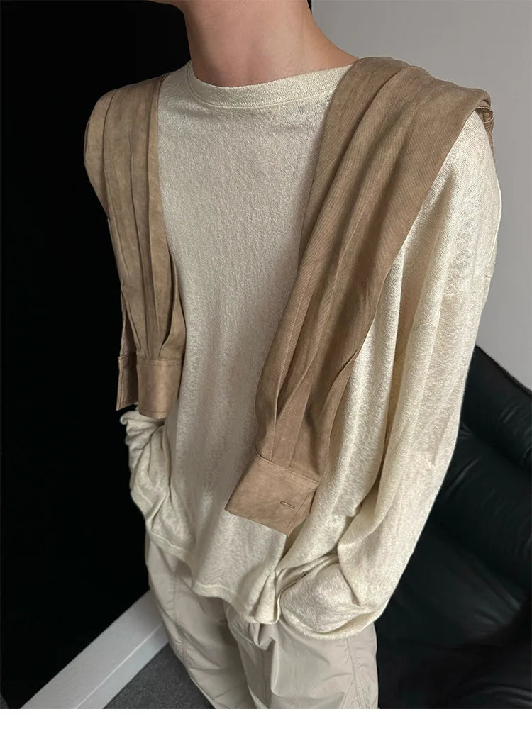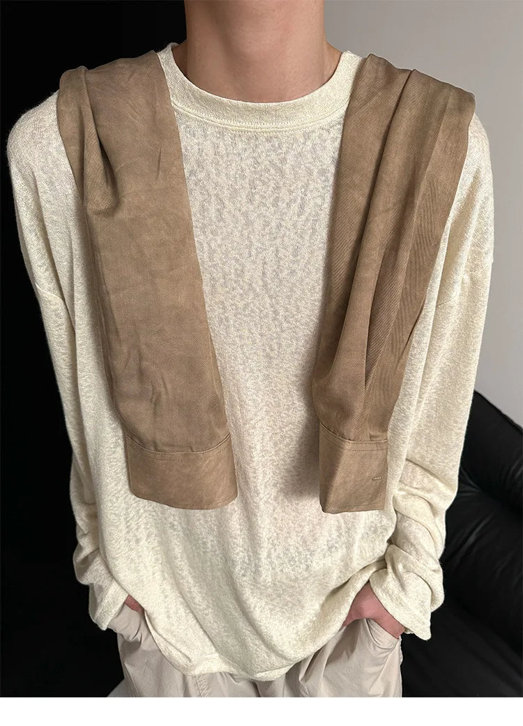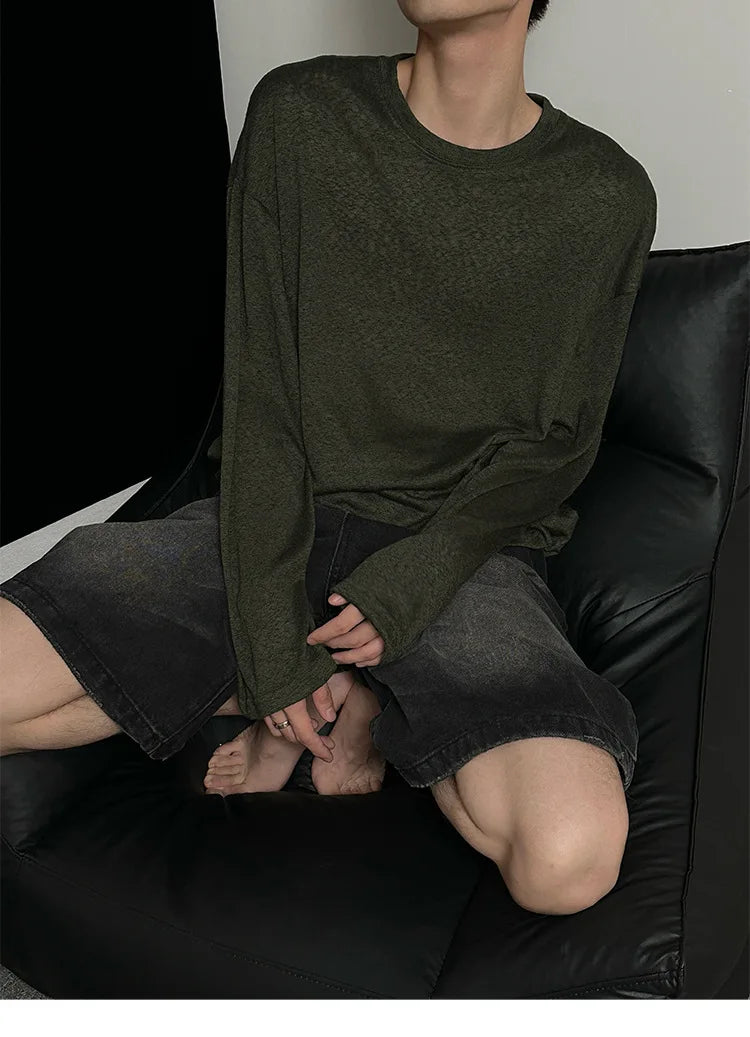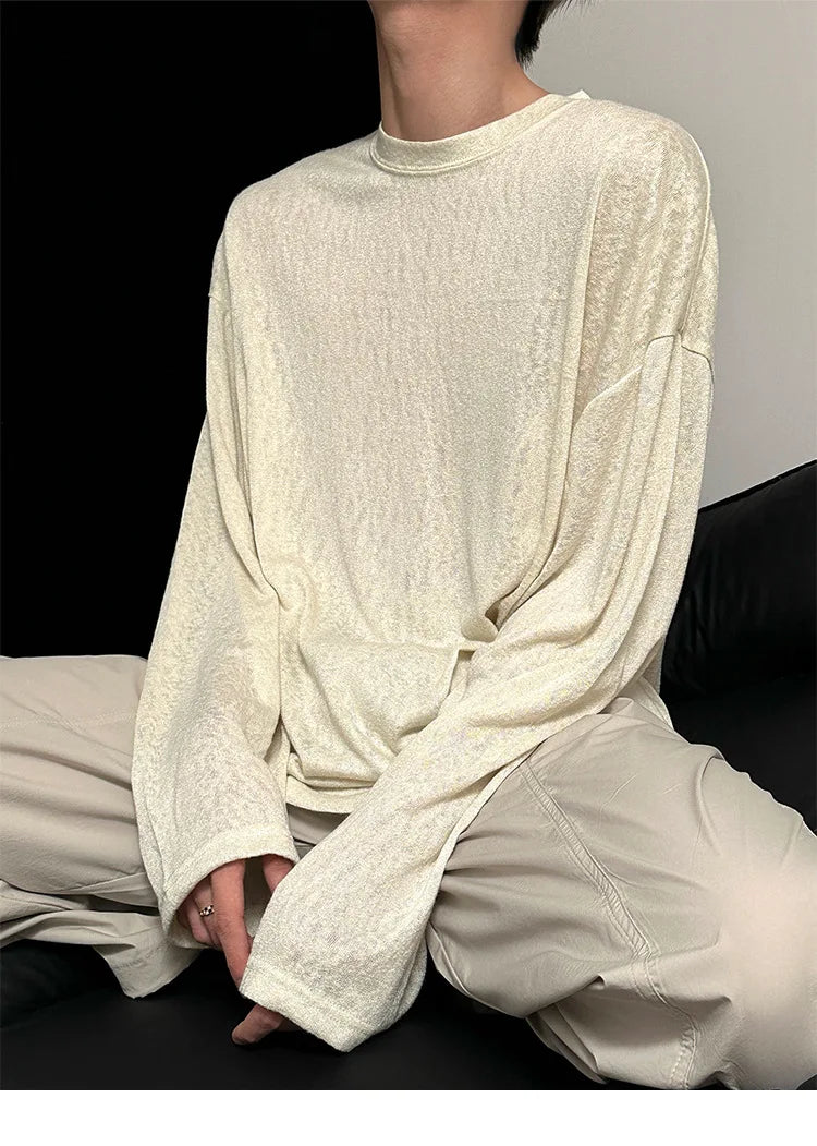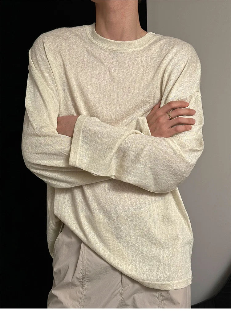 Riolio Autumn Laid-back Style Draping Men's T-shirt Luxury Korean Popular O Neck Long Sleeve Tees Leisure Loose Lightweight Basic Shirt