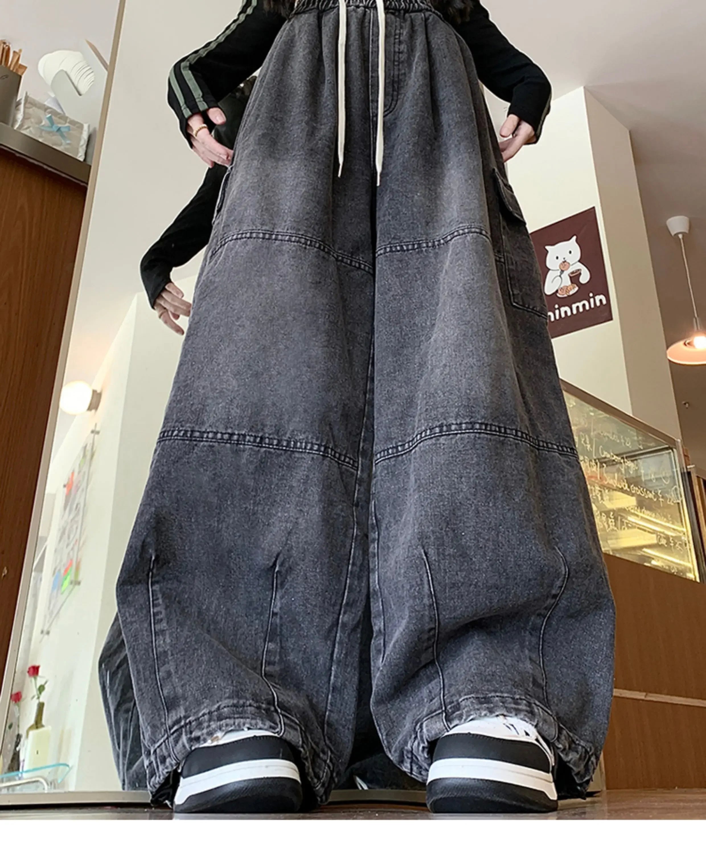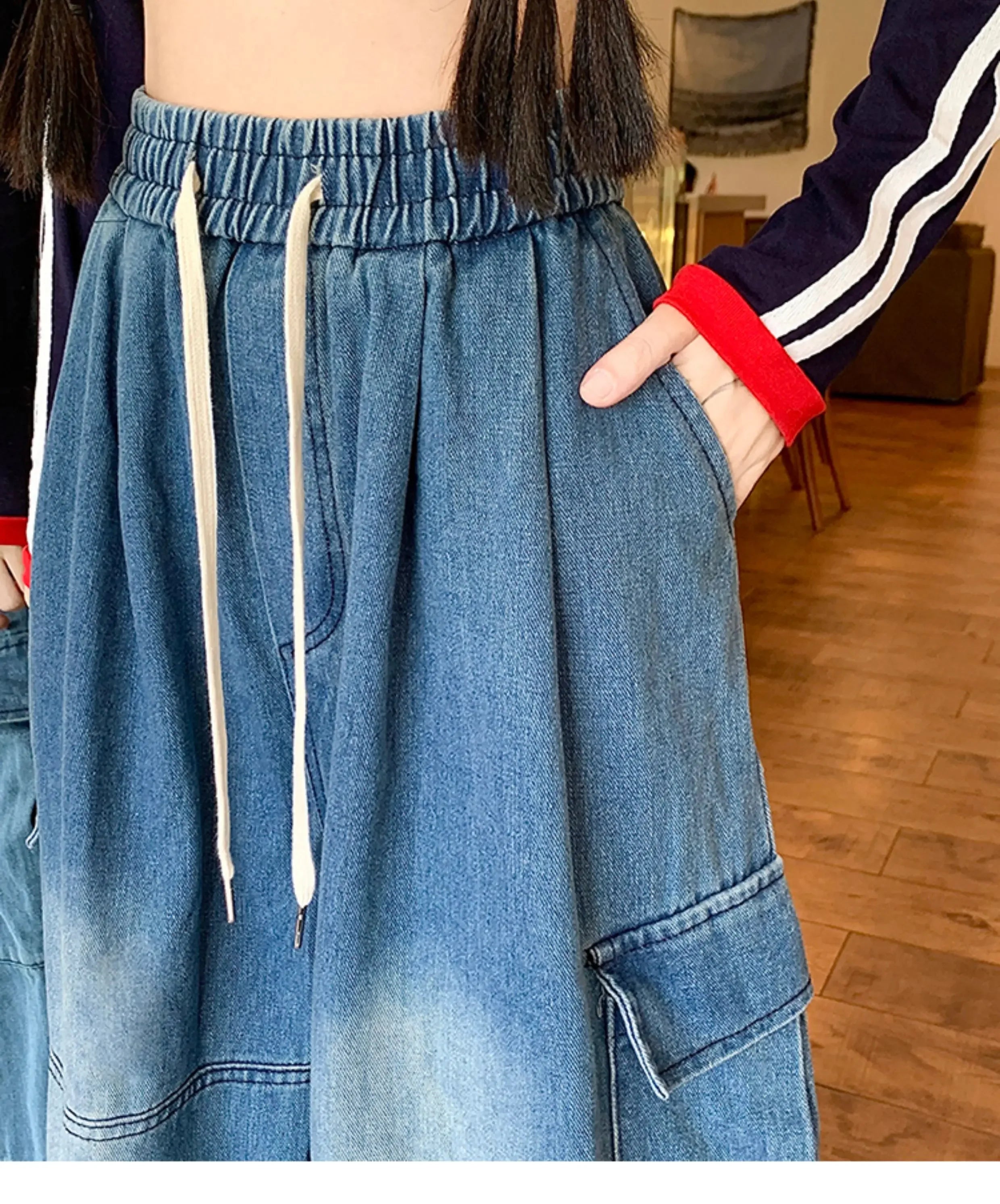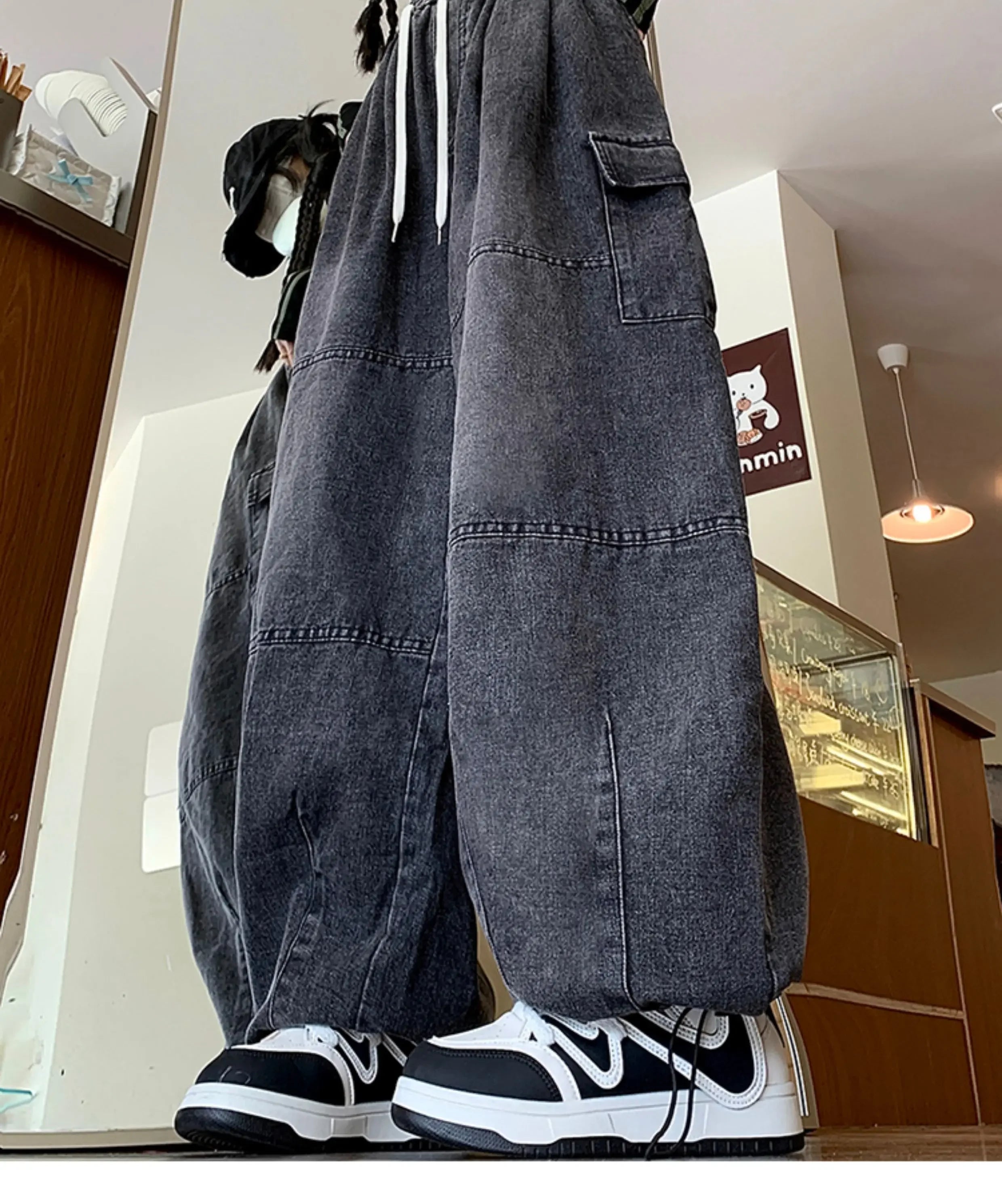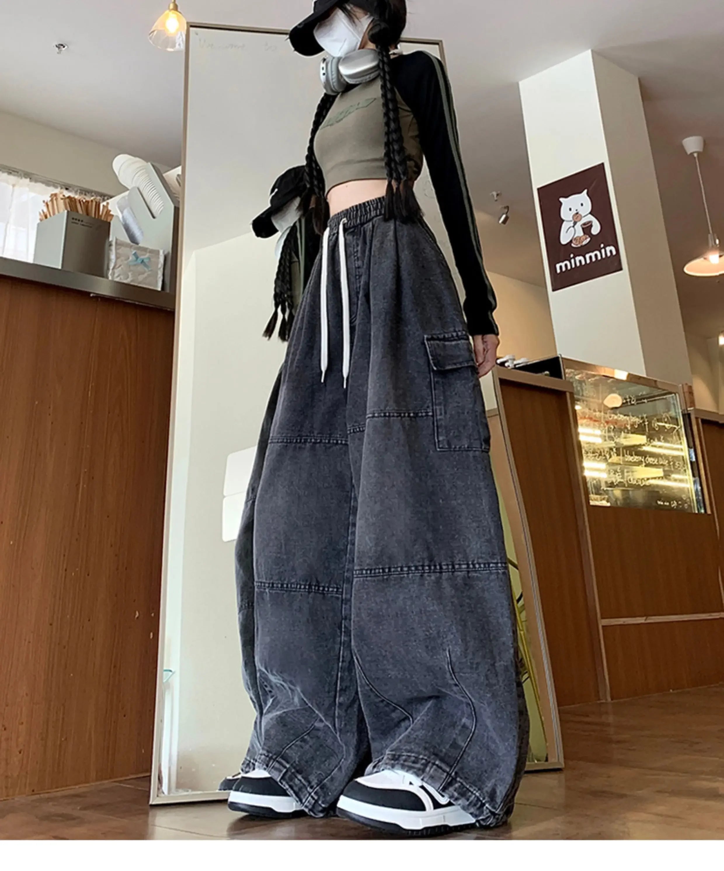 Riolio Cargo Jean Loose Wide Leg Workwear Jeans Elastic Waist Men and Women Spring Autumn Faion Brand Waed Out Trousers Straight Cut