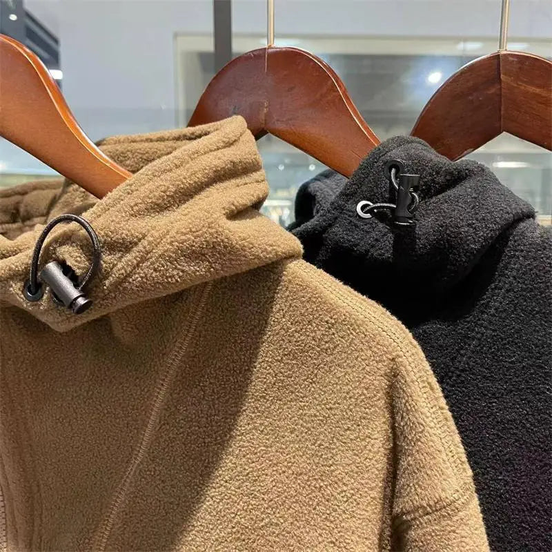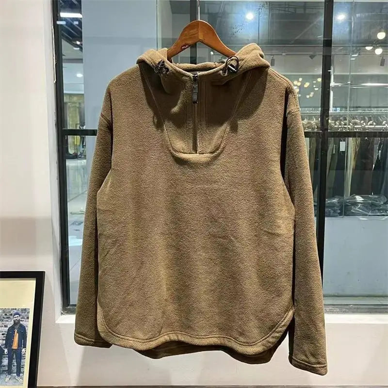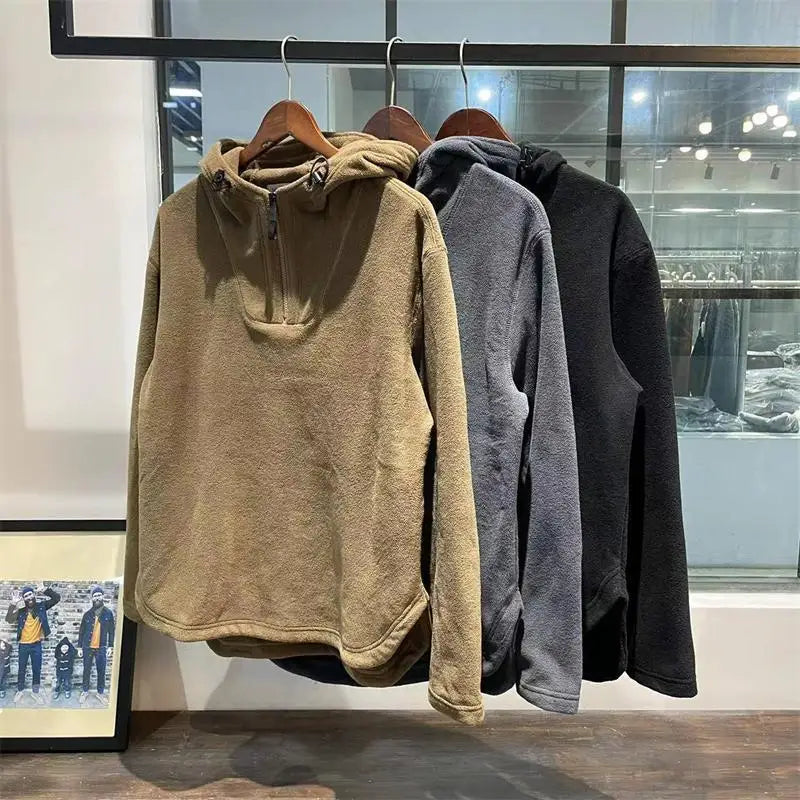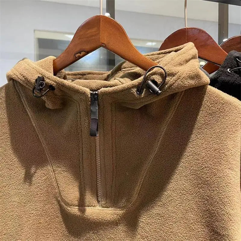 Riolio Double-sided Fleece Hoody Warm Loose Hooded Sweatshirt Men American Style High-end Retro Half Zipper Jacket Aesthetic