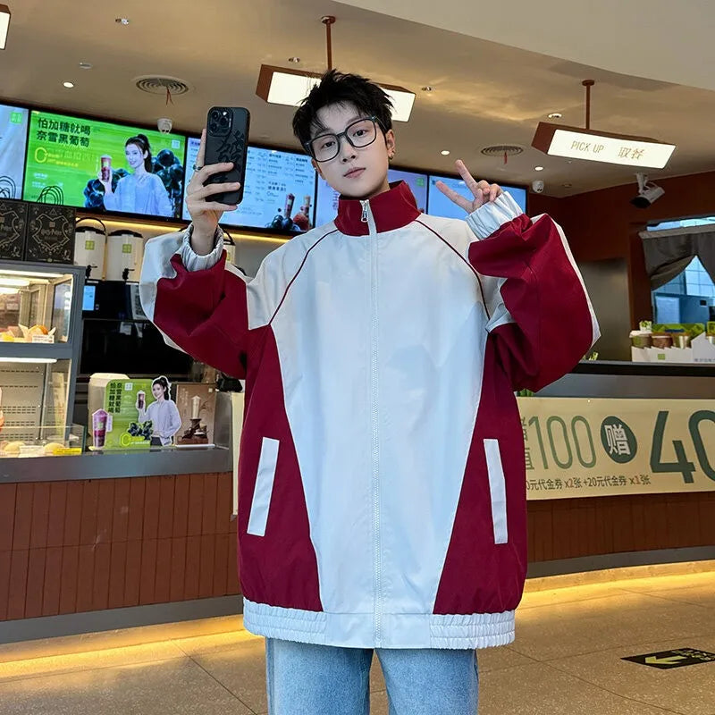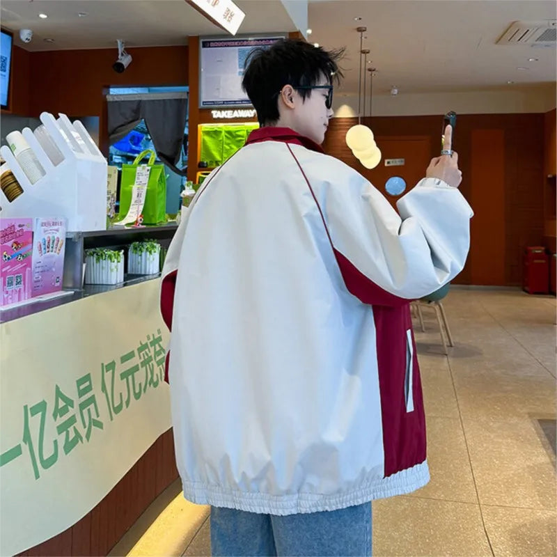 Riolio Fashion Spring New Jackets Men Stand Collar Casual Patchwork Color Jacket Men Outwear Clothing Men's Loose Pilot Jacket