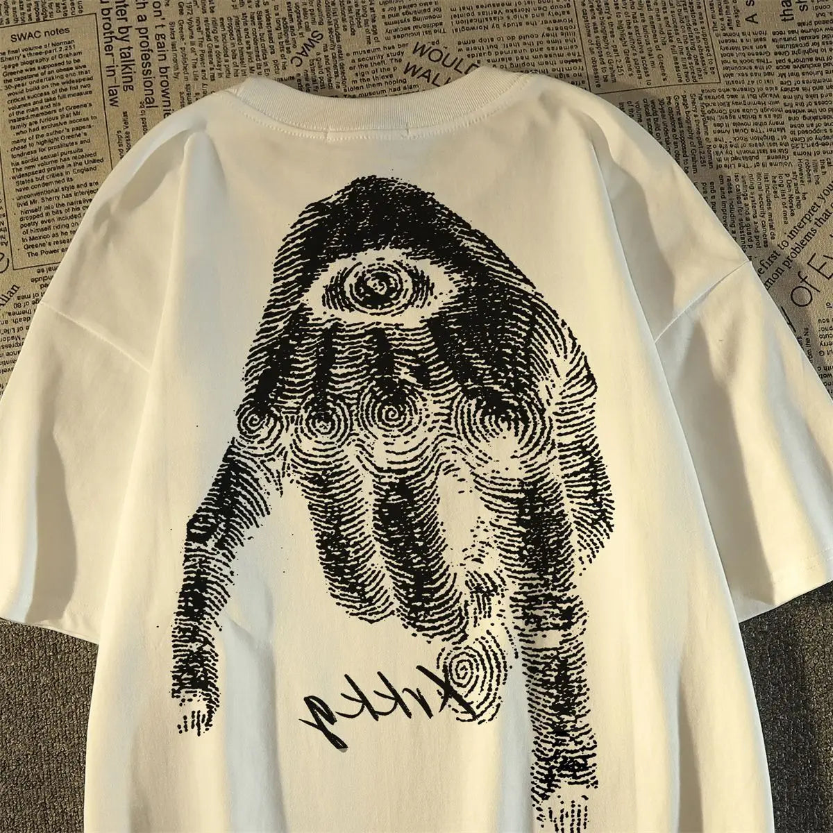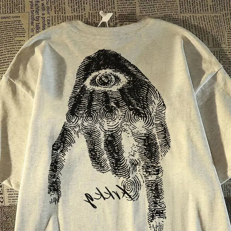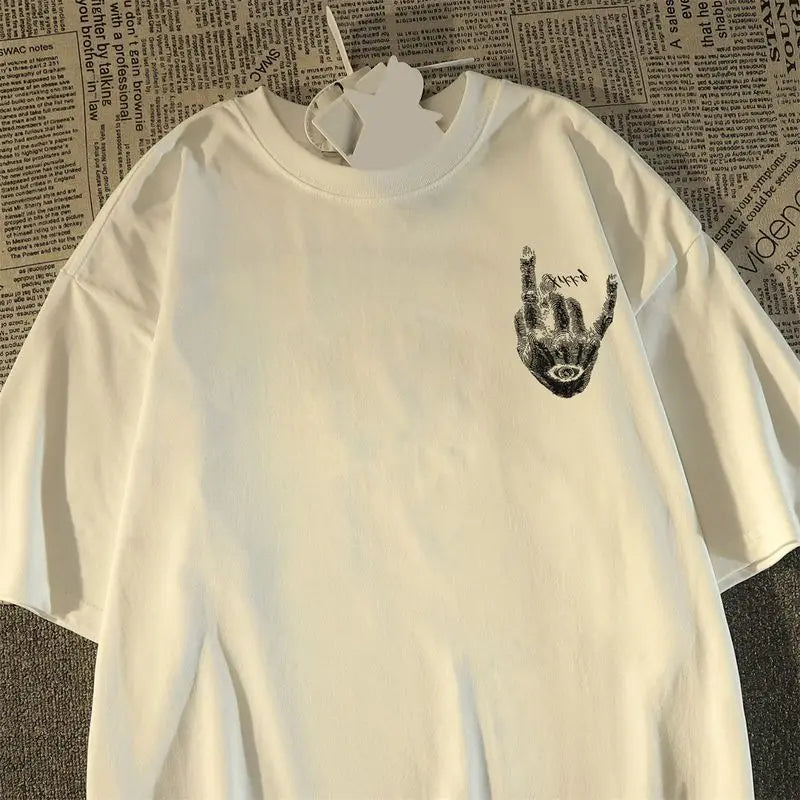 Riolio Harajuku Hip Hop High Street Men and Women Trendy Personalized Printed Round Neck Short Sleeve Couple Loose Summer Casual Tshirt
