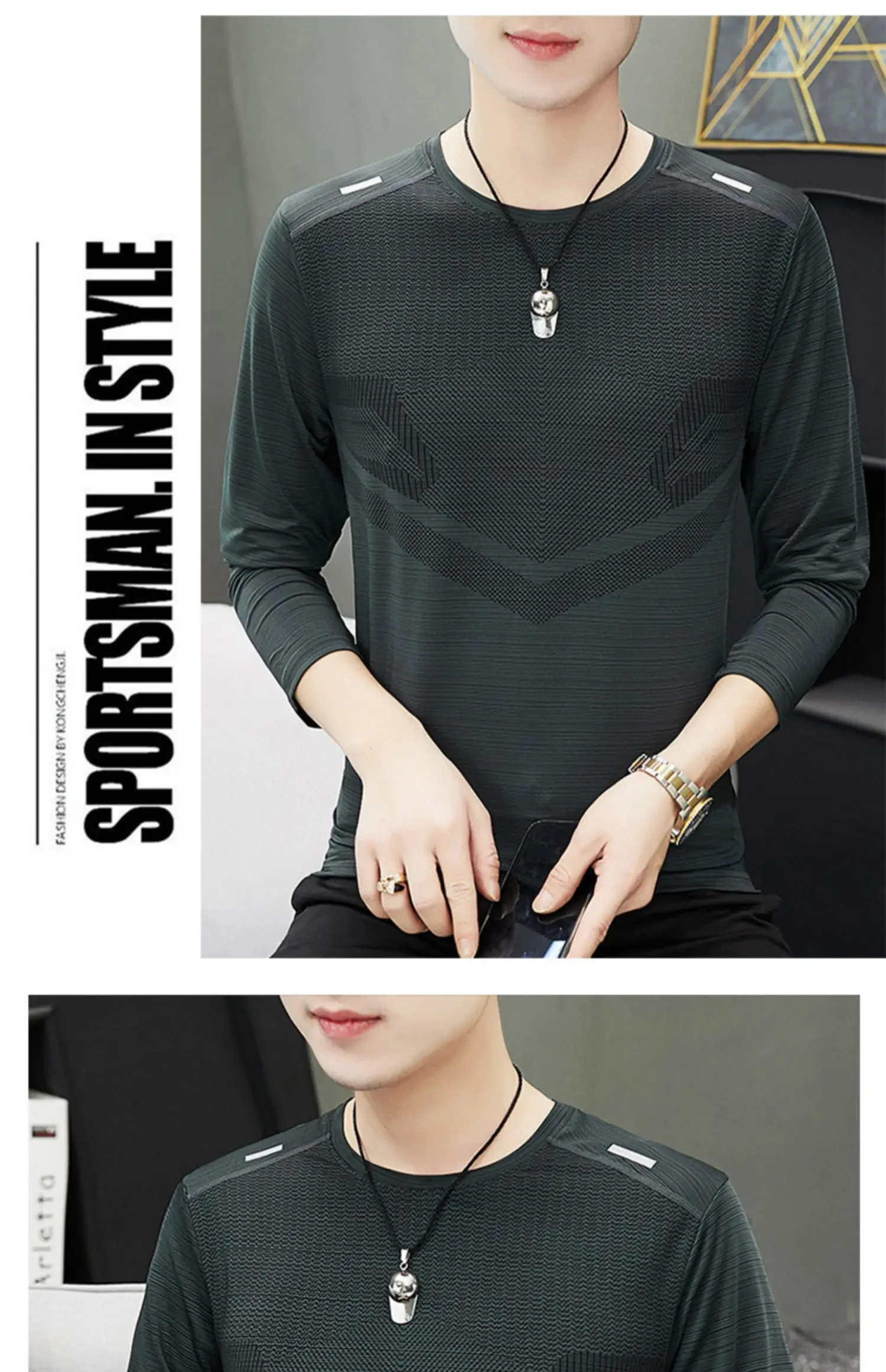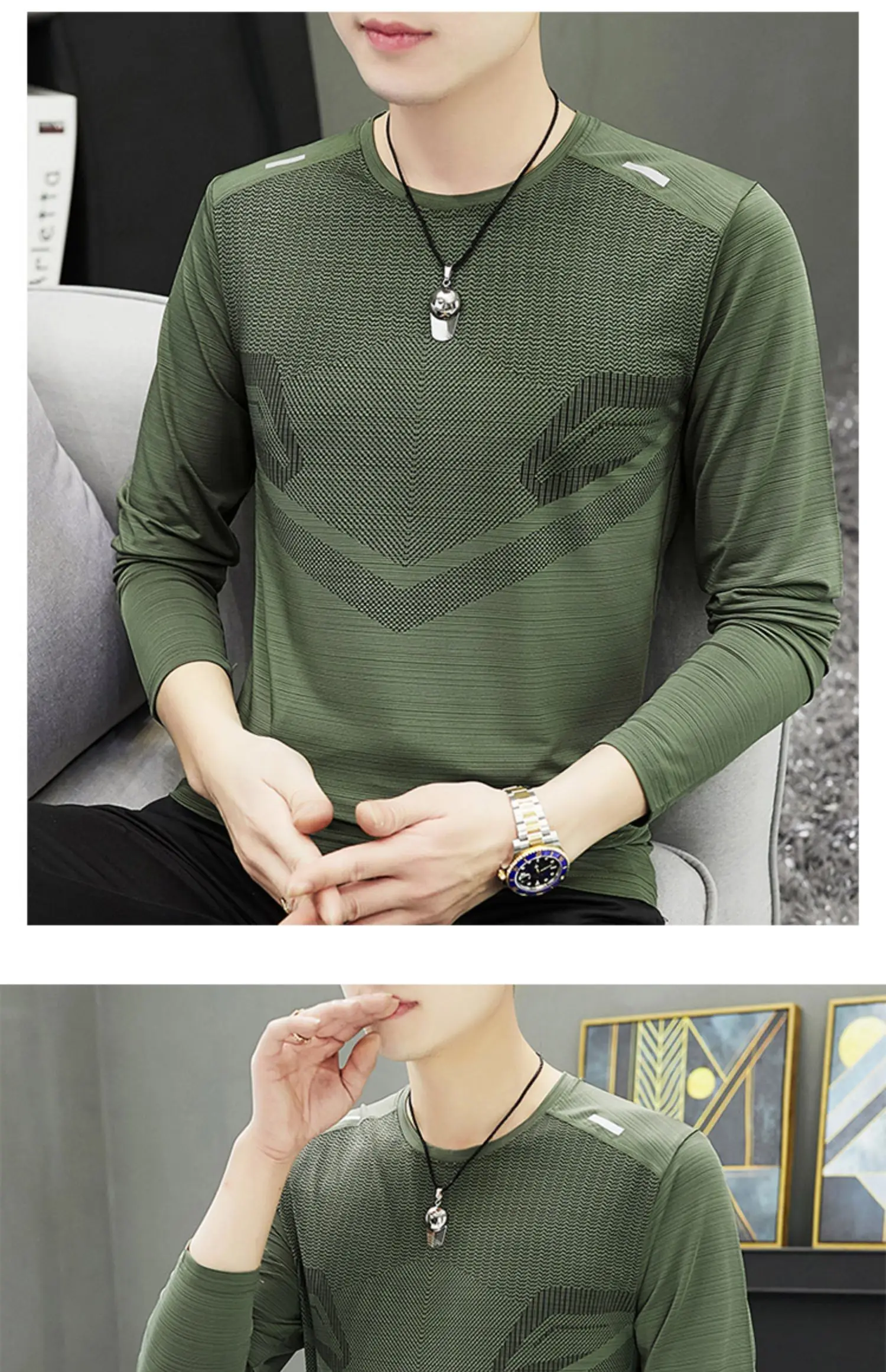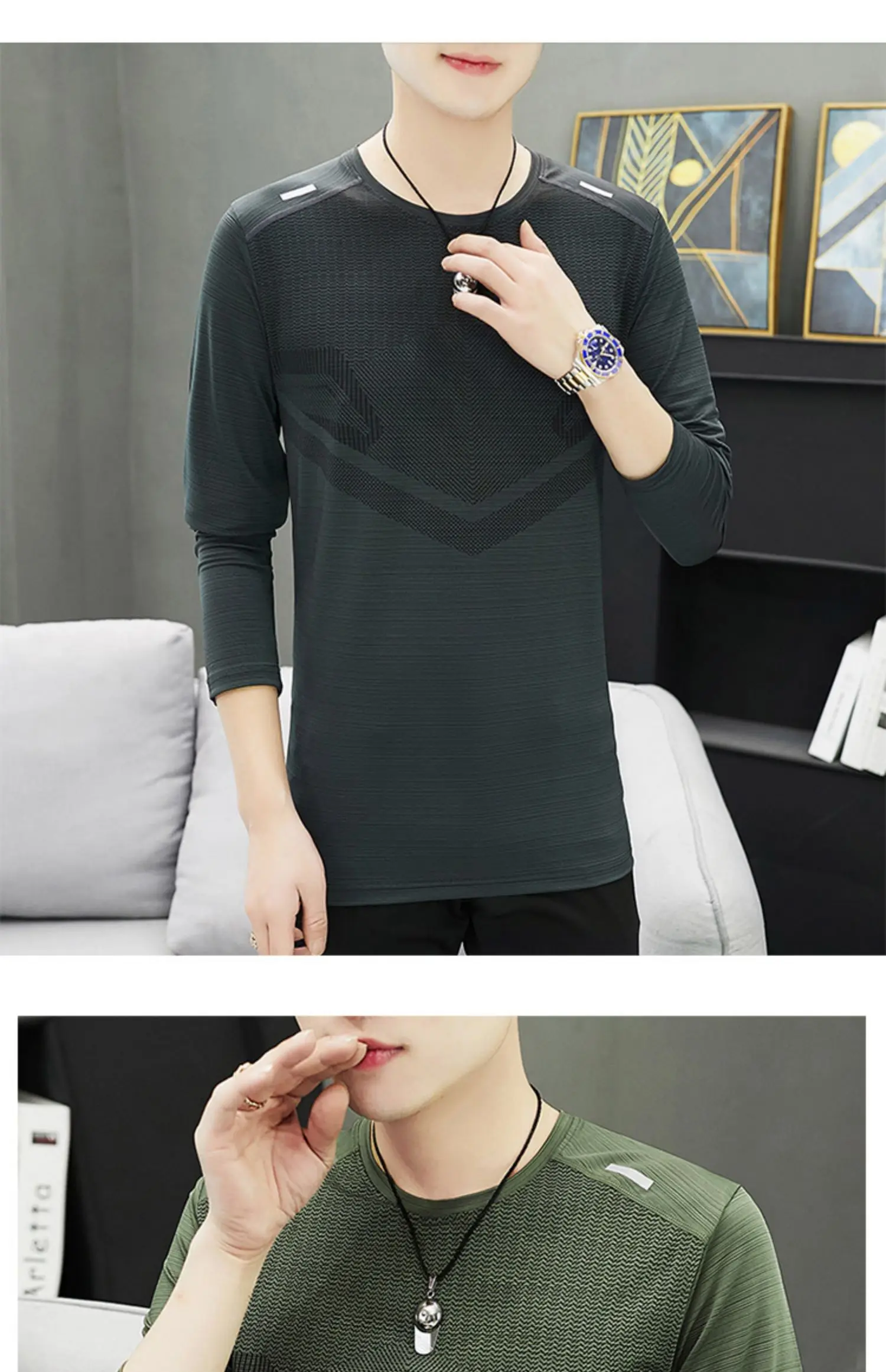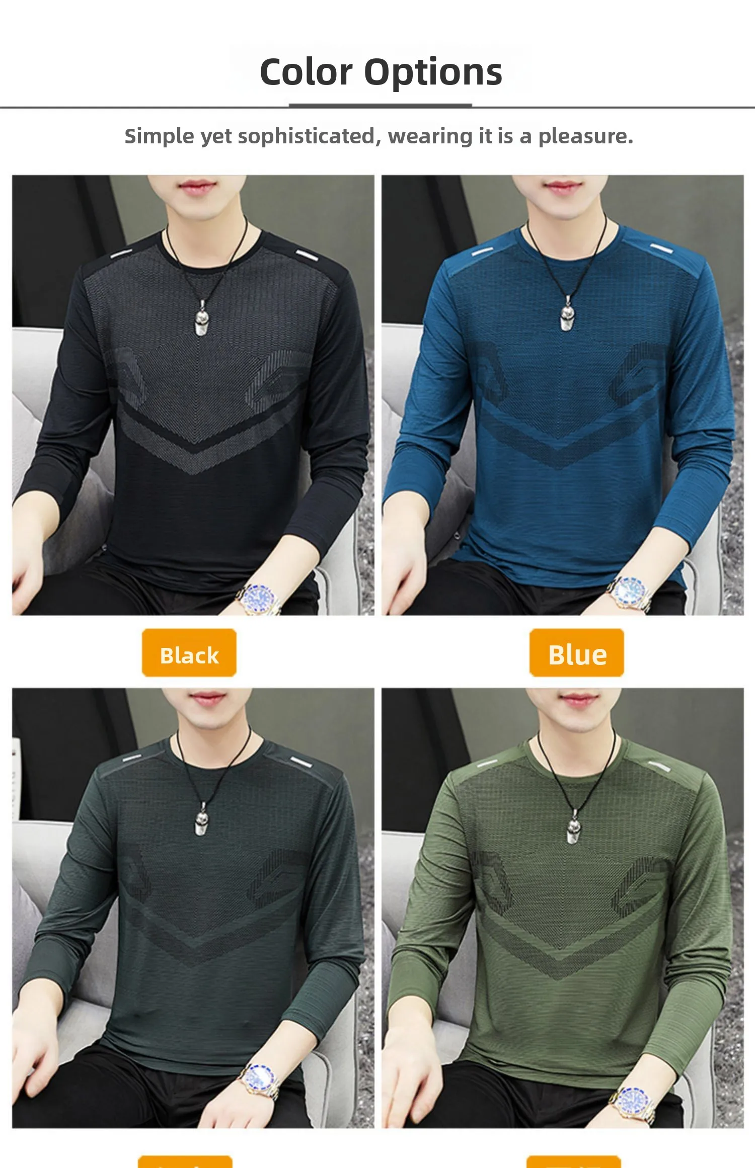 Riolio Ice Silk Long Sve T-irt for Men Slim Fit Qui Dry Smooth Material Spring Summer Base irt 30 40 Years Old Men's Faion