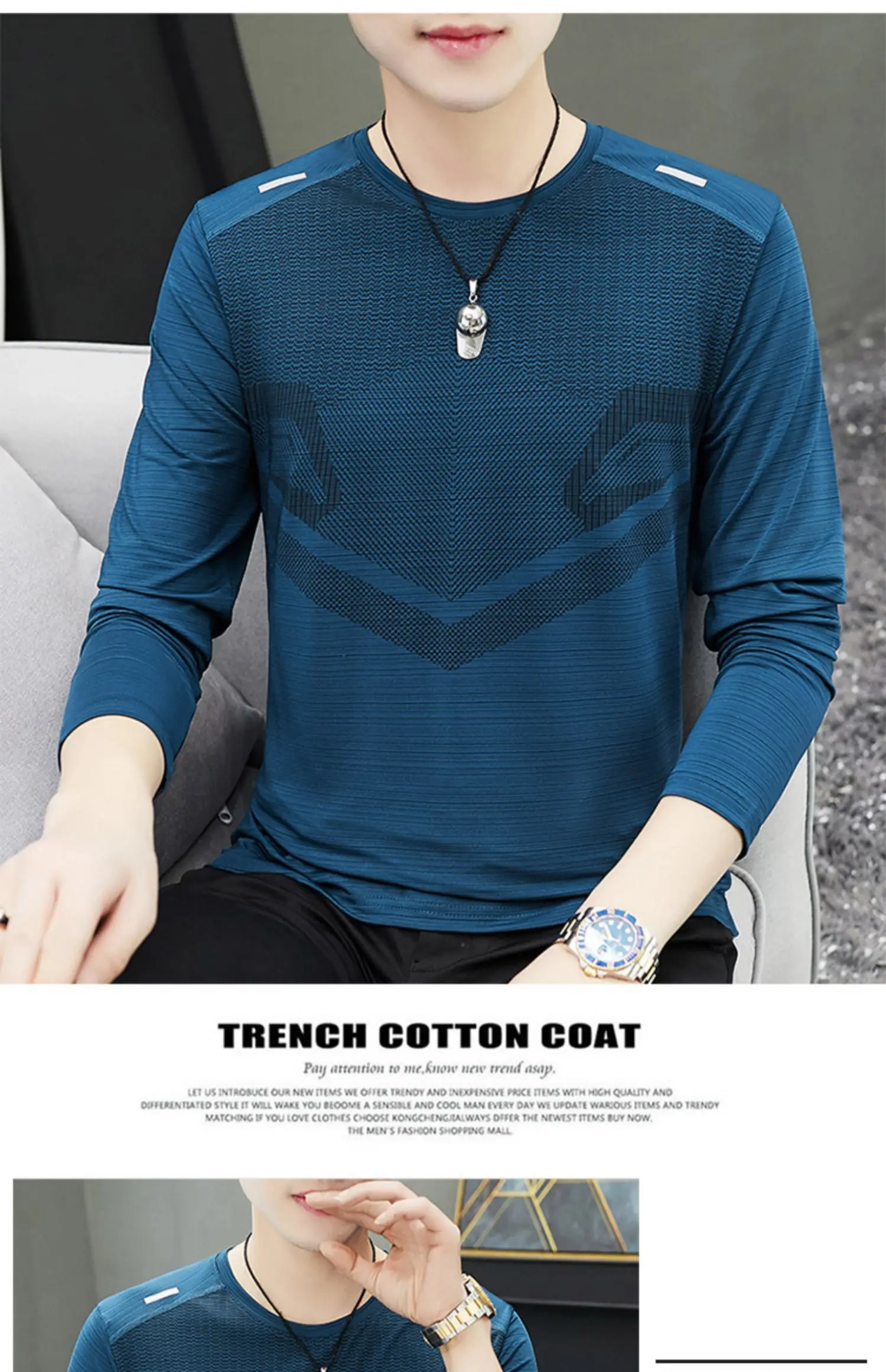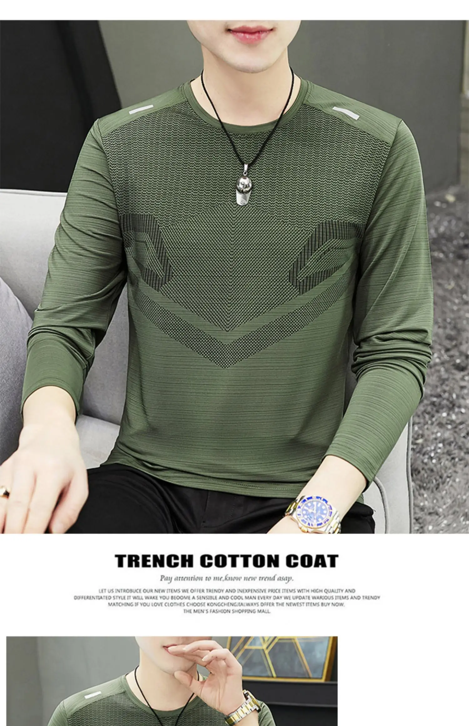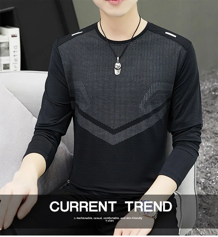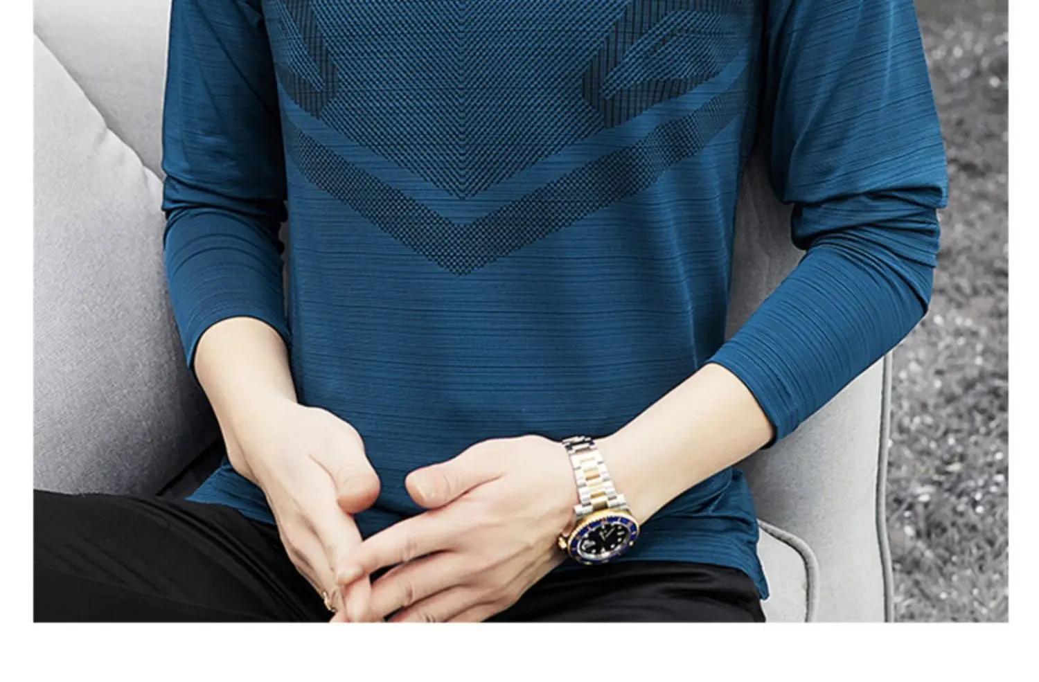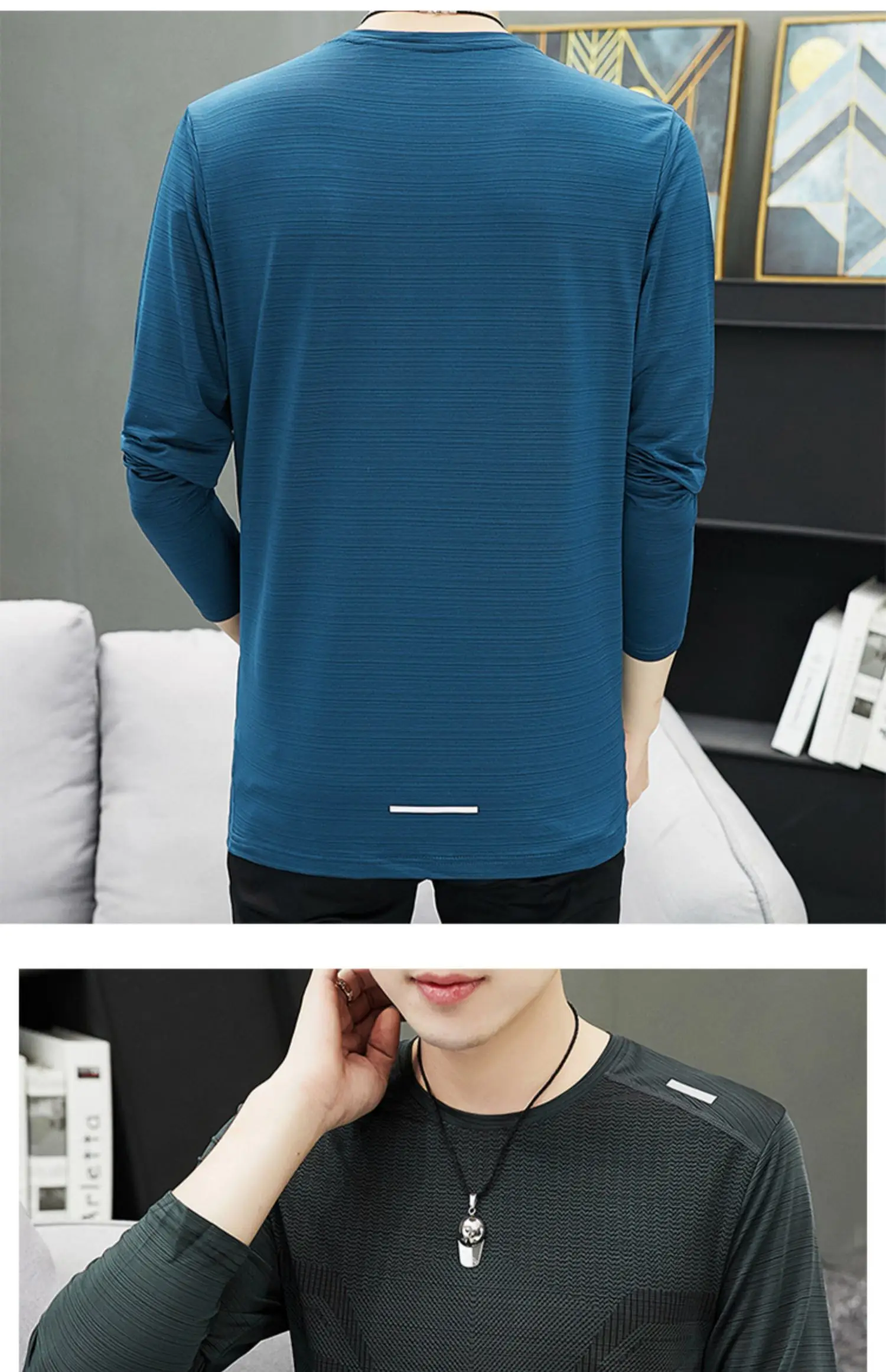 Riolio Ice Silk Long Sve T-irt for Men Slim Fit Qui Dry Smooth Material Spring Summer Base irt 30 40 Years Old Men's Faion