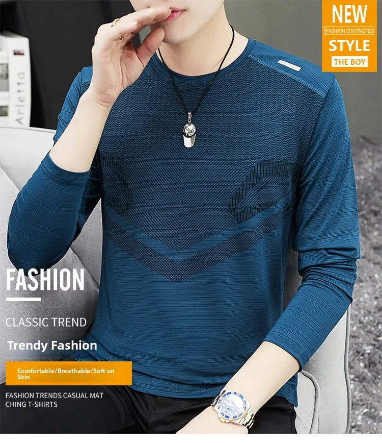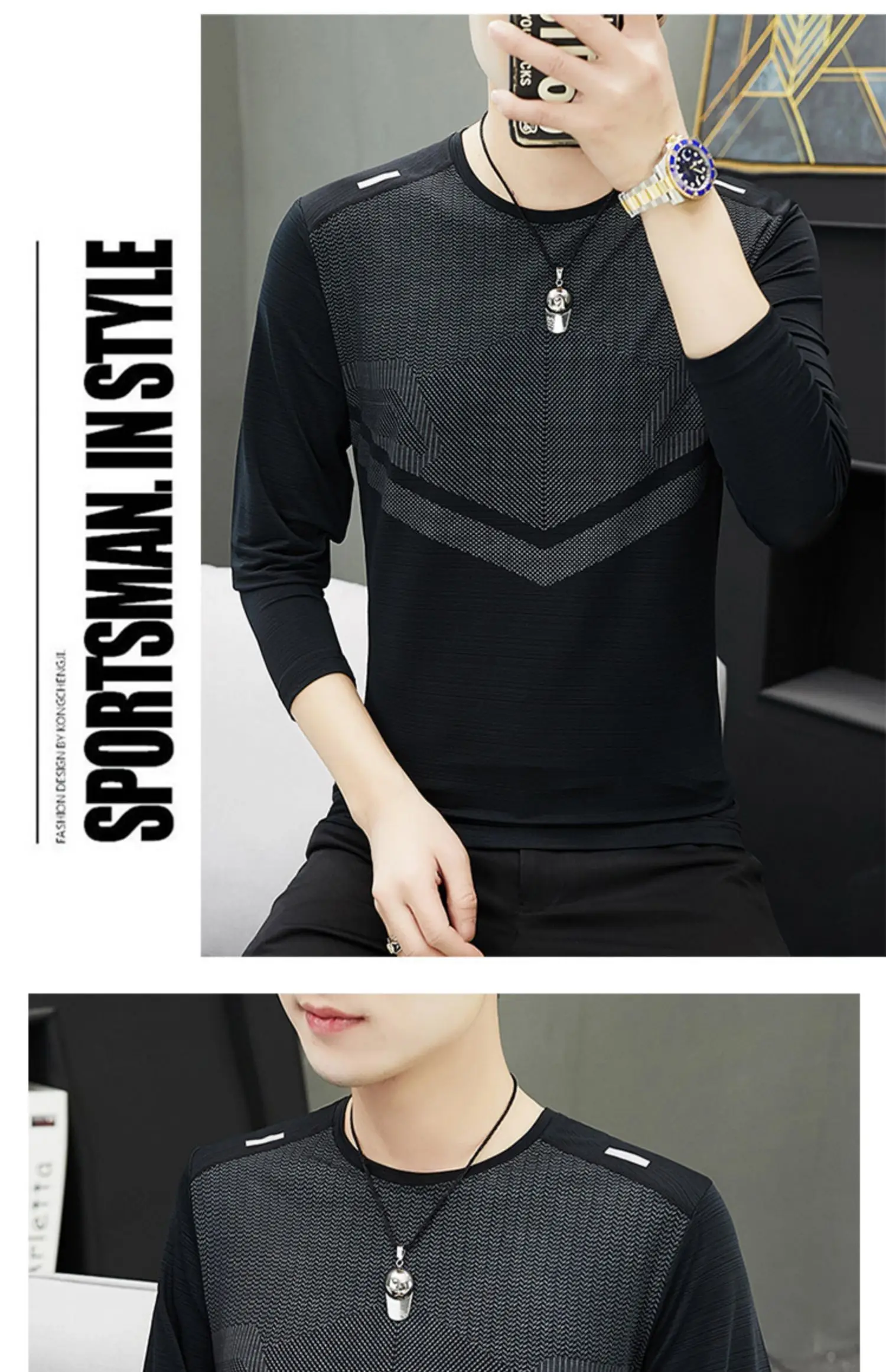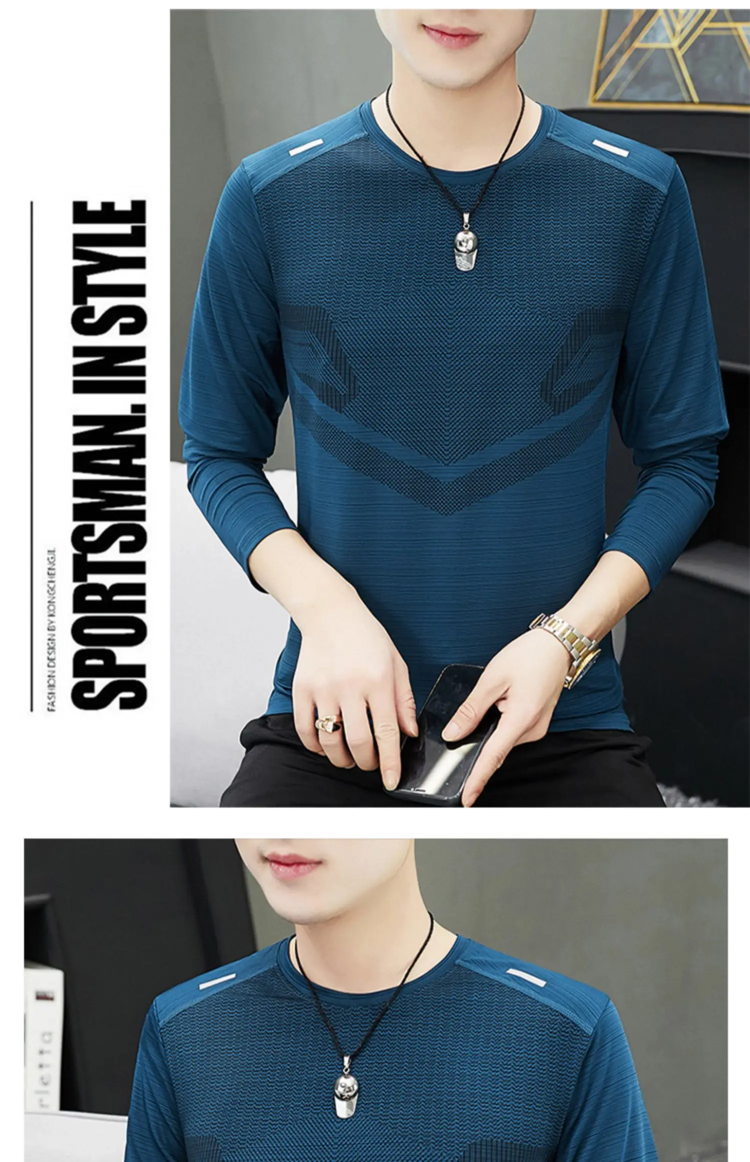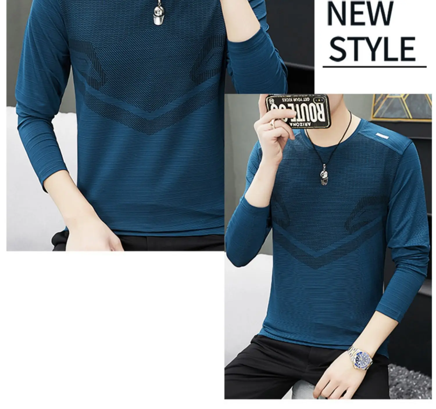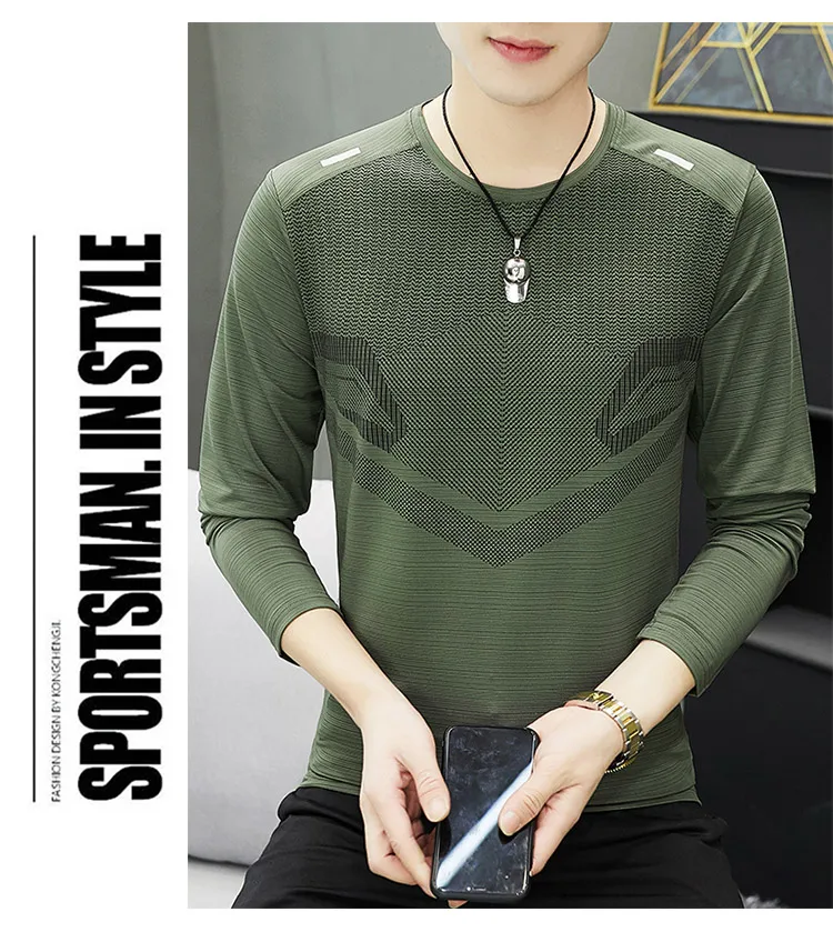 Riolio Ice Silk Long Sve T-irt for Men Slim Fit Qui Dry Smooth Material Spring Summer Base irt 30 40 Years Old Men's Faion