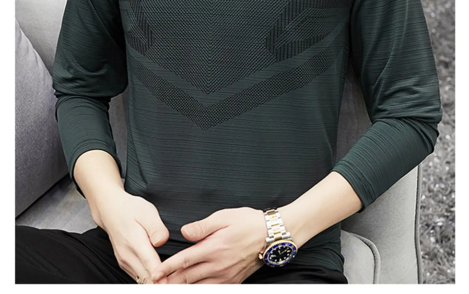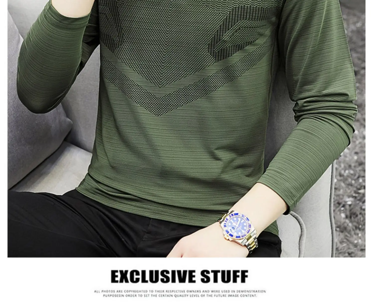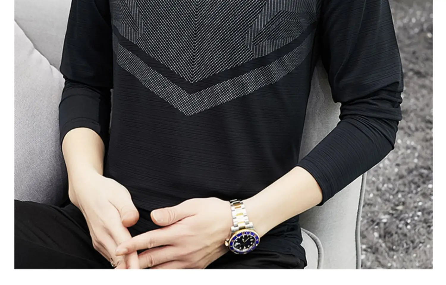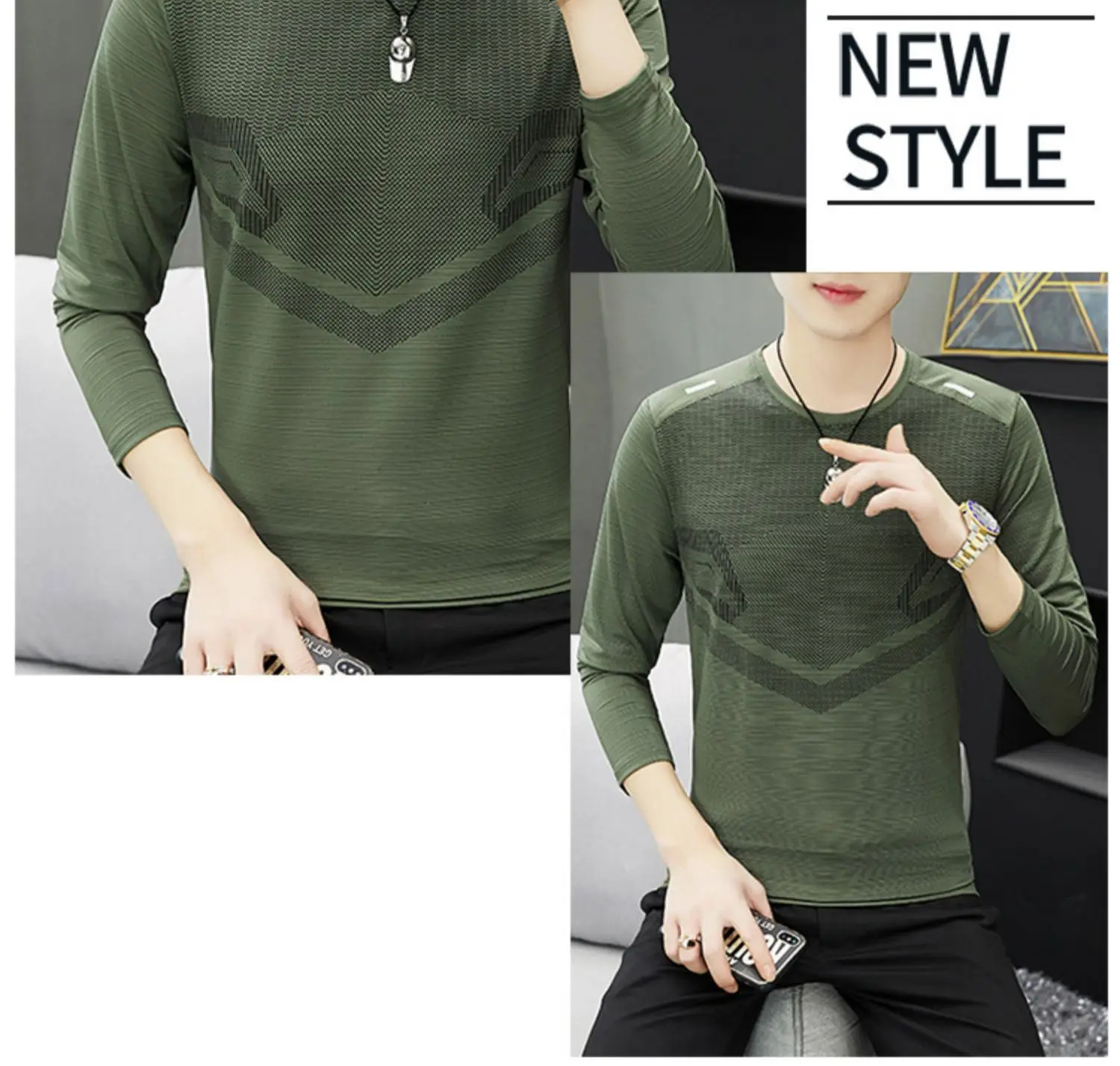 Riolio Ice Silk Long Sve T-irt for Men Slim Fit Qui Dry Smooth Material Spring Summer Base irt 30 40 Years Old Men's Faion