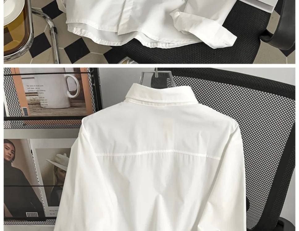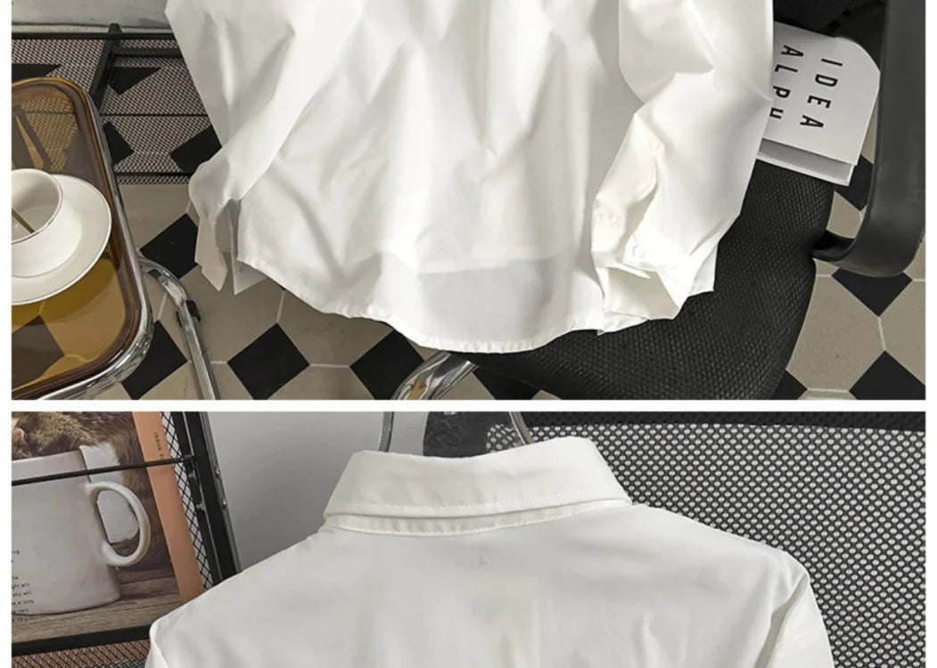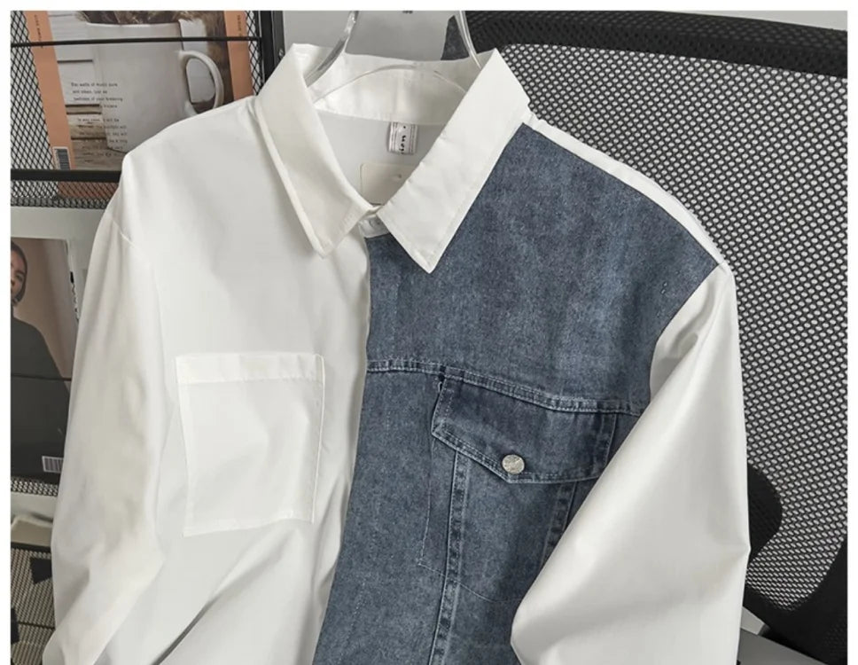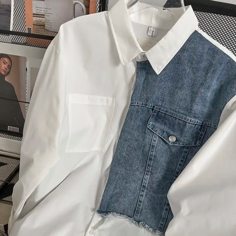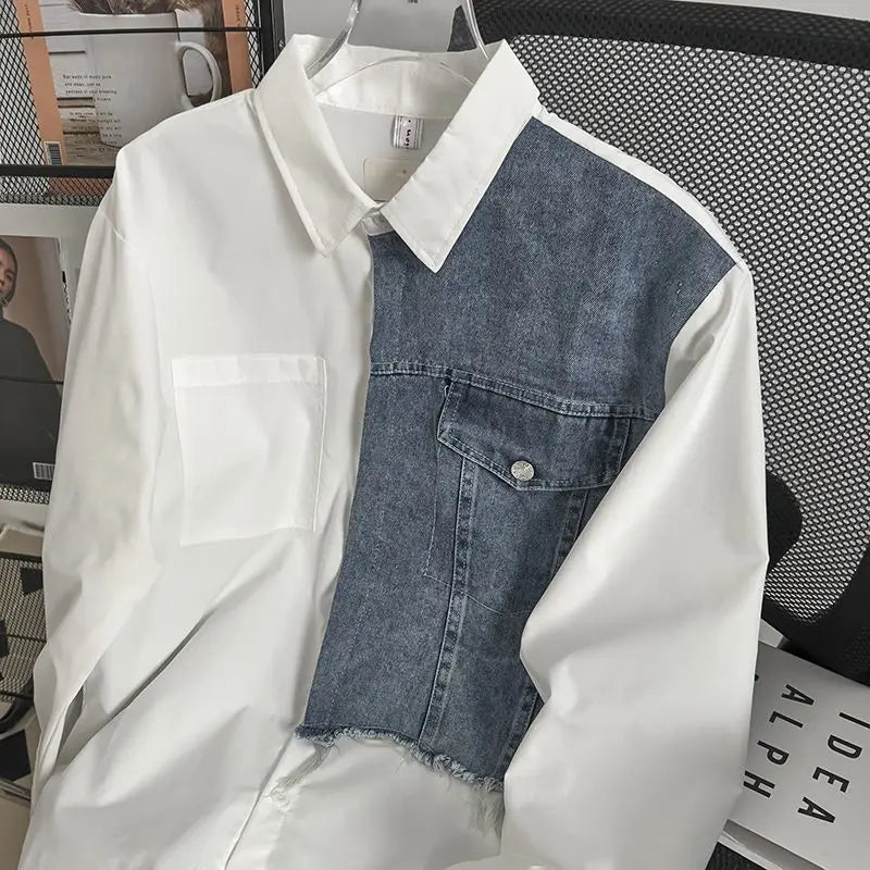 Riolio Japanese High-end Denim Jacket Spliced Long-sleeved Shirt Men's Niche Design Sense High Street Couple Loose Casual White Shirt
