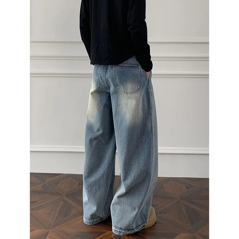 Riolio Jeans men Wash Light Blue Relaxed Fit 2025 New Arrival High Quality Distressed Denim Pants Men Streetwear Fashion Youth Casual