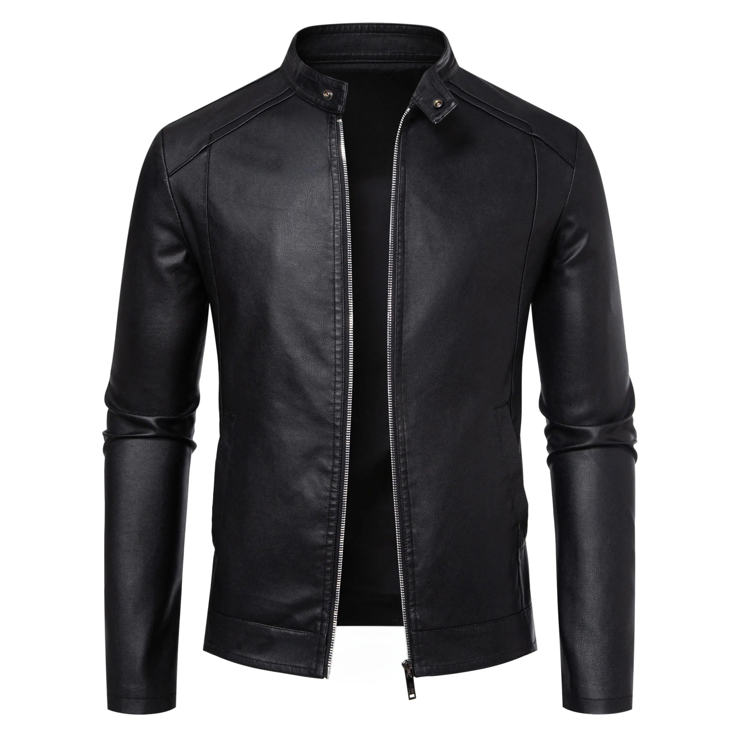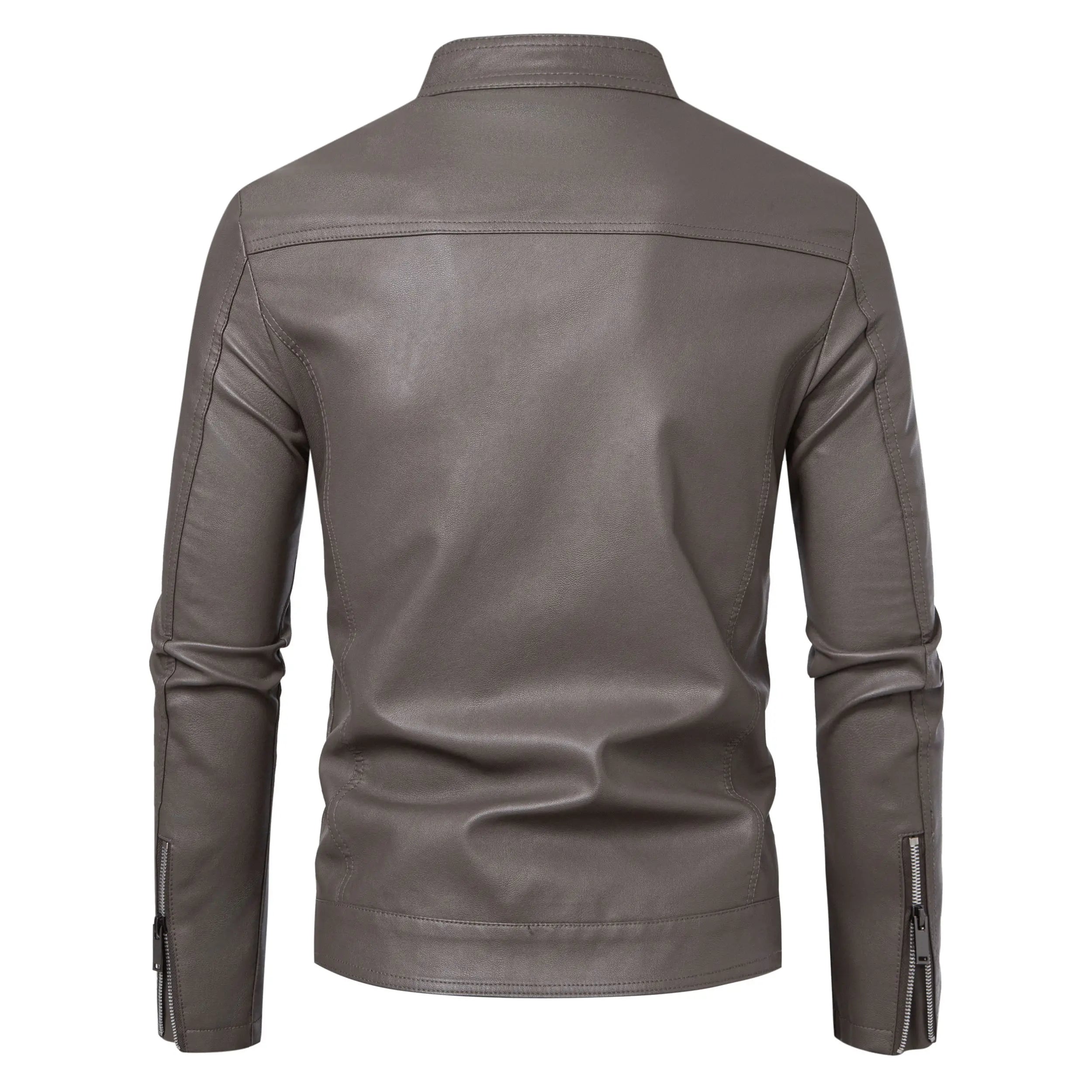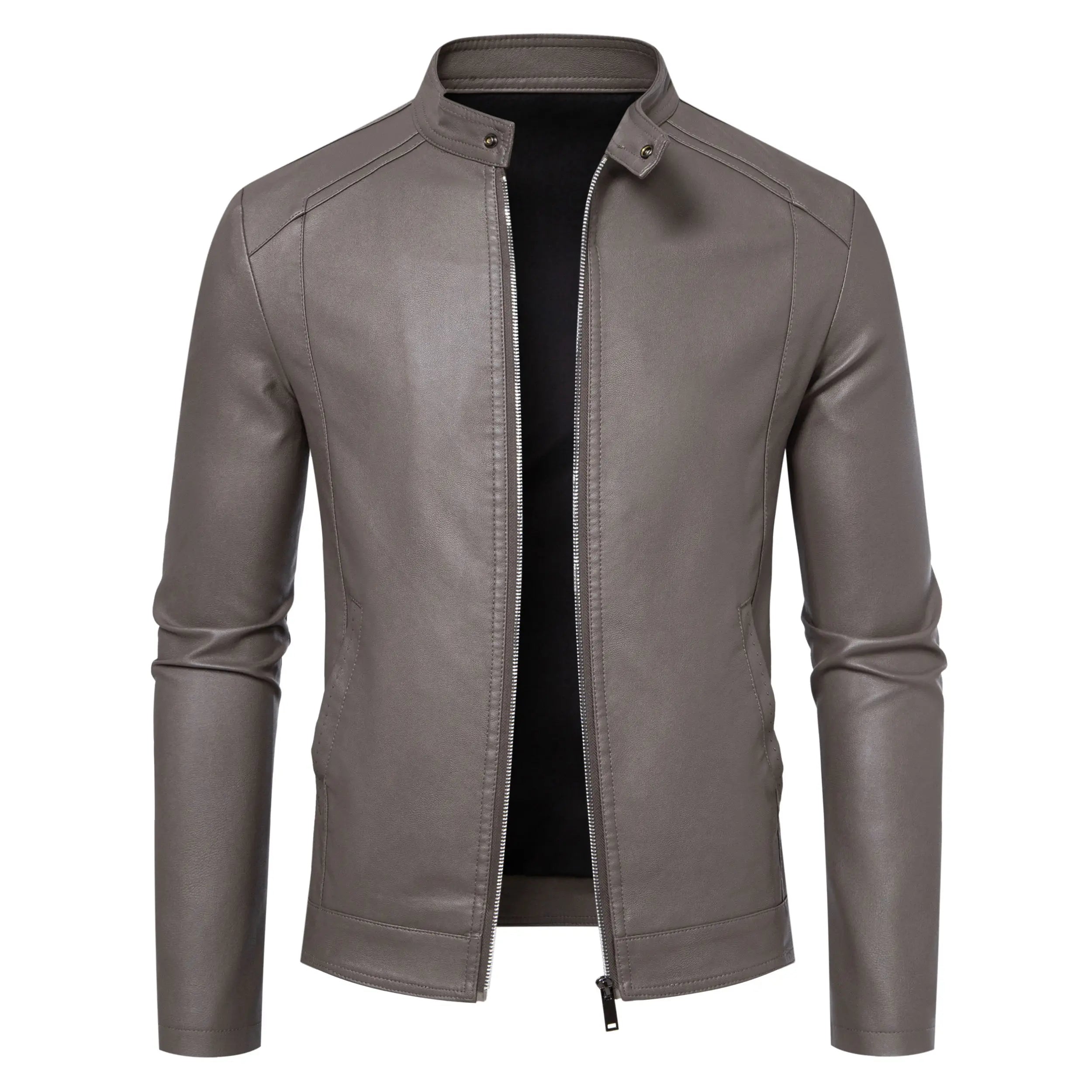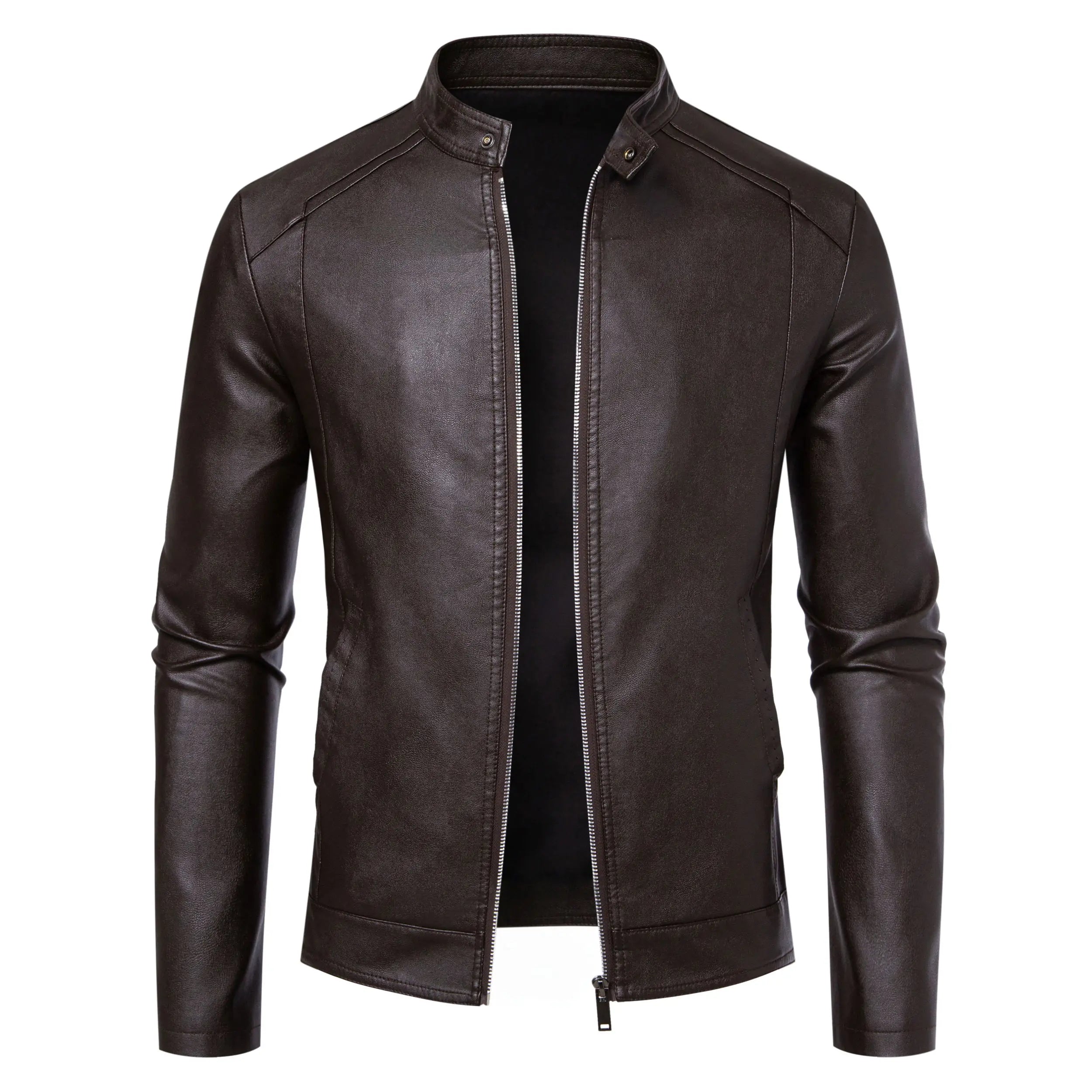 Riolio Men's Leather Jacket Trendy Handsome British Style Autumn Winter New Retro Stand Up Collar with Plush Casual Motorcycle Jacket