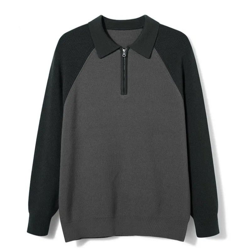 Riolio New American Chic Men Polo Sweater Luxury Trendy Business Zip-up Knit Solid Color Pullover Leisure Slim-fit Long Sleeve Knitwear