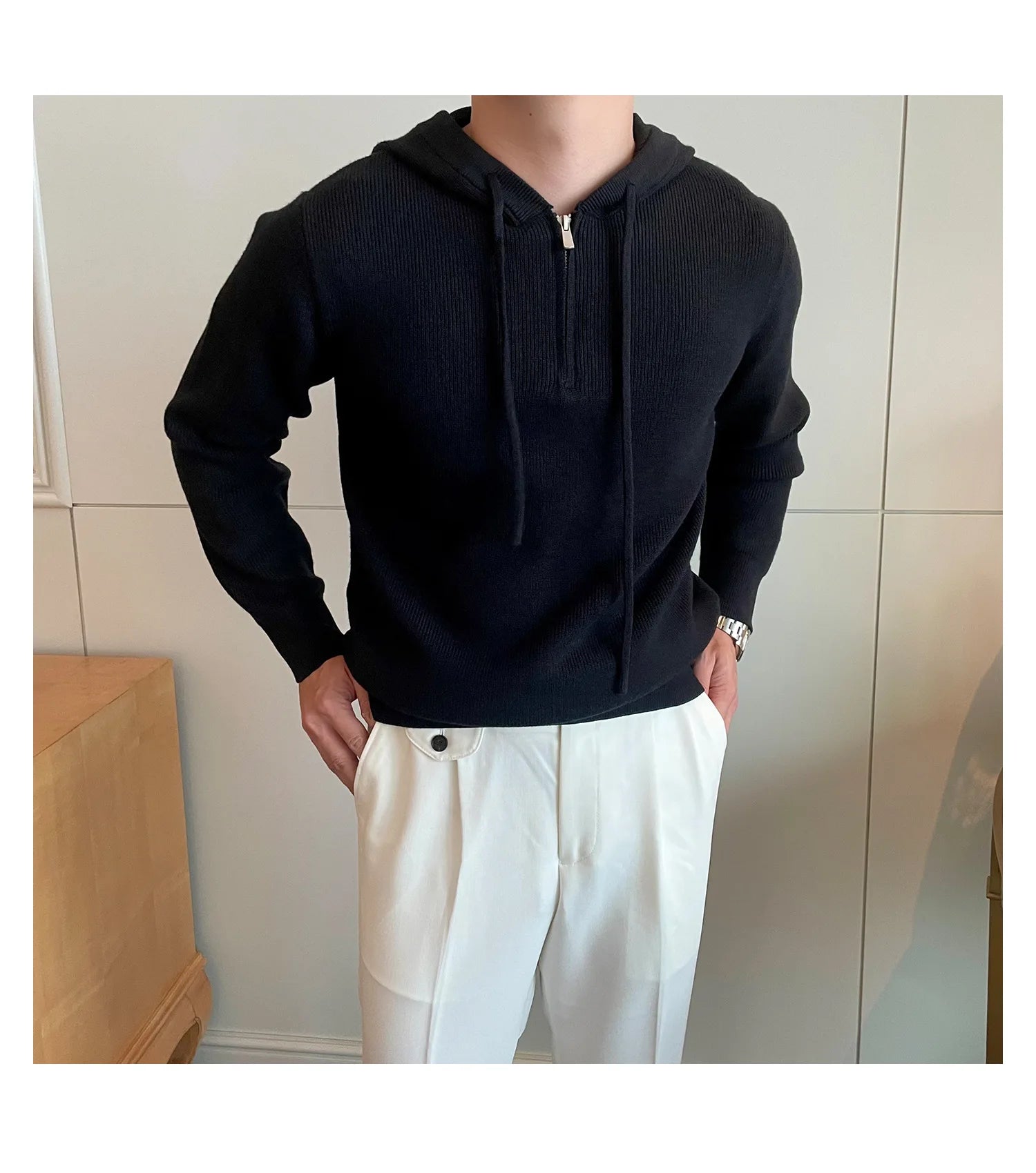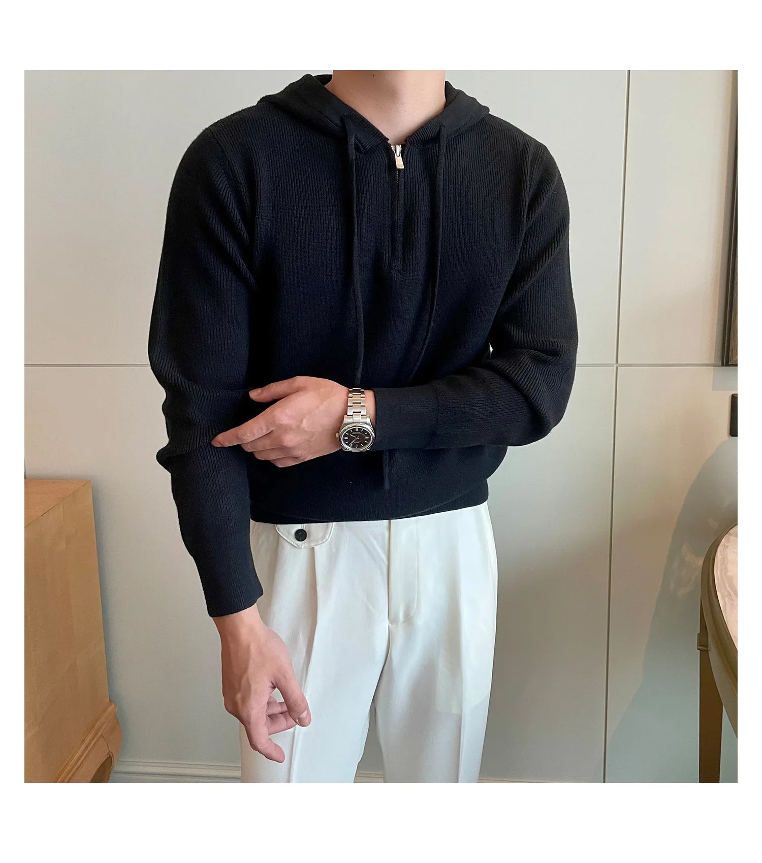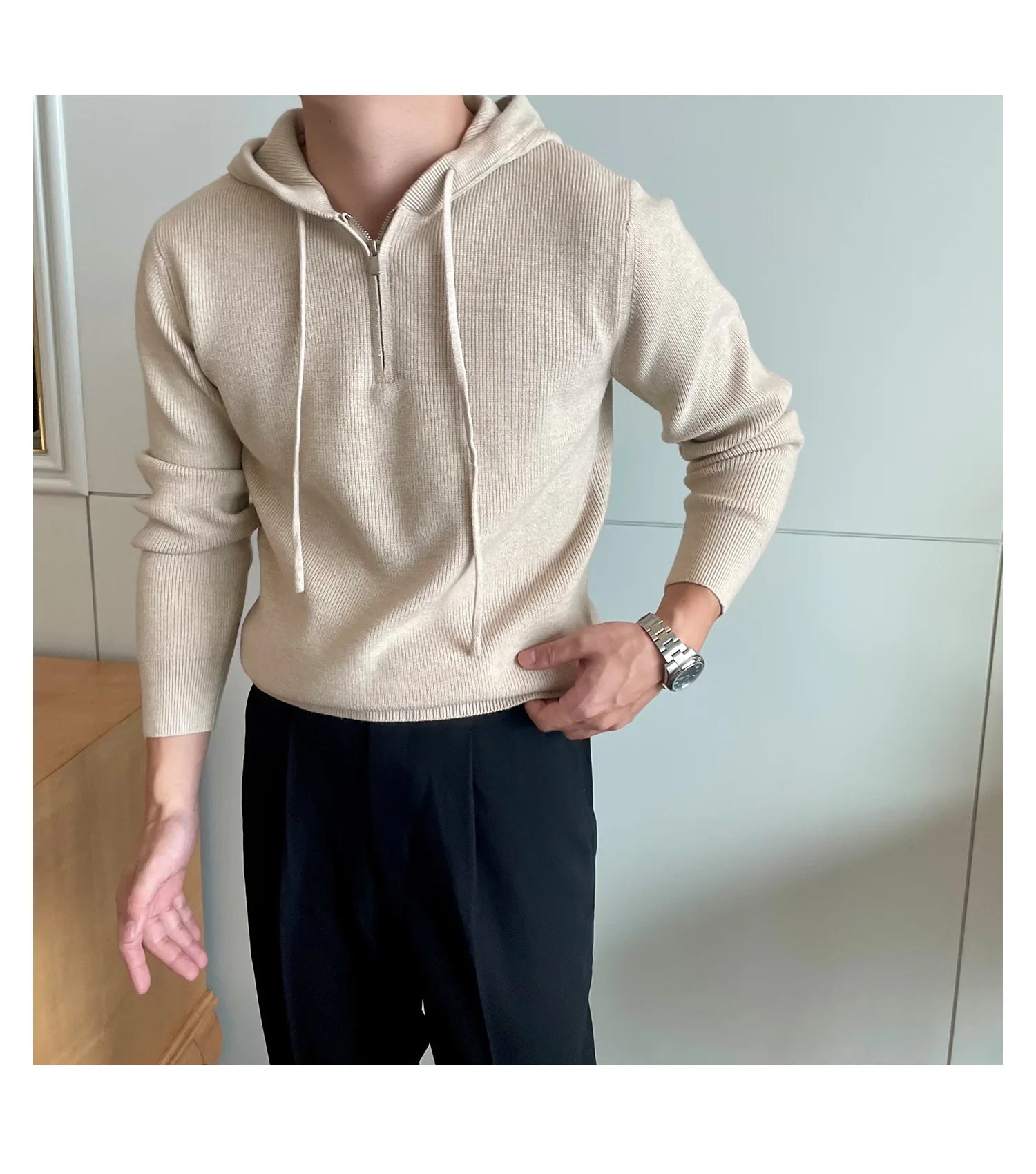 Riolio New British Leisure Men's Hooded Sweater Trendy Zip-up Preppy Style Slim-fit Long Sleeve Hoodies Casual Vintage Warmth Knitwear