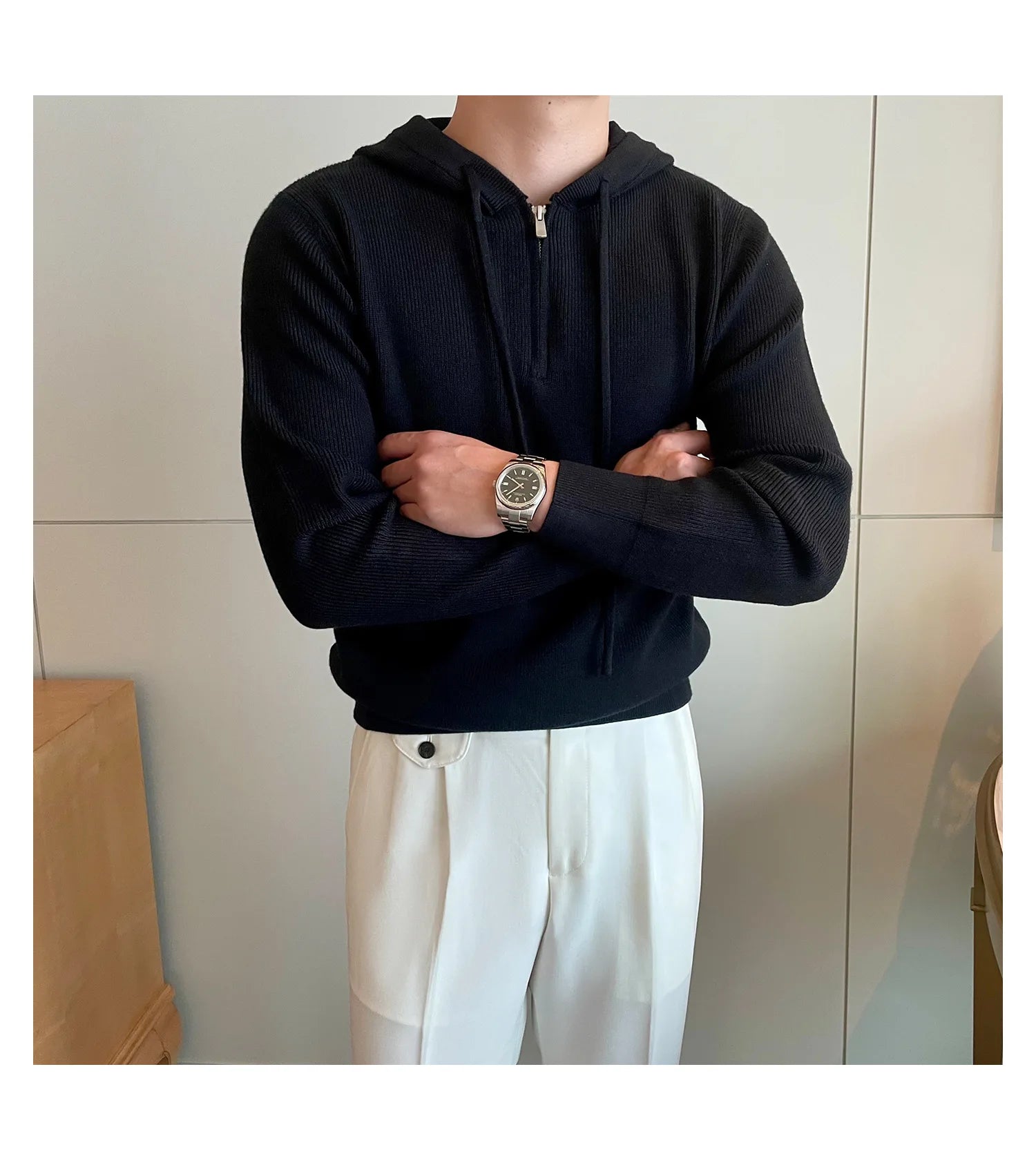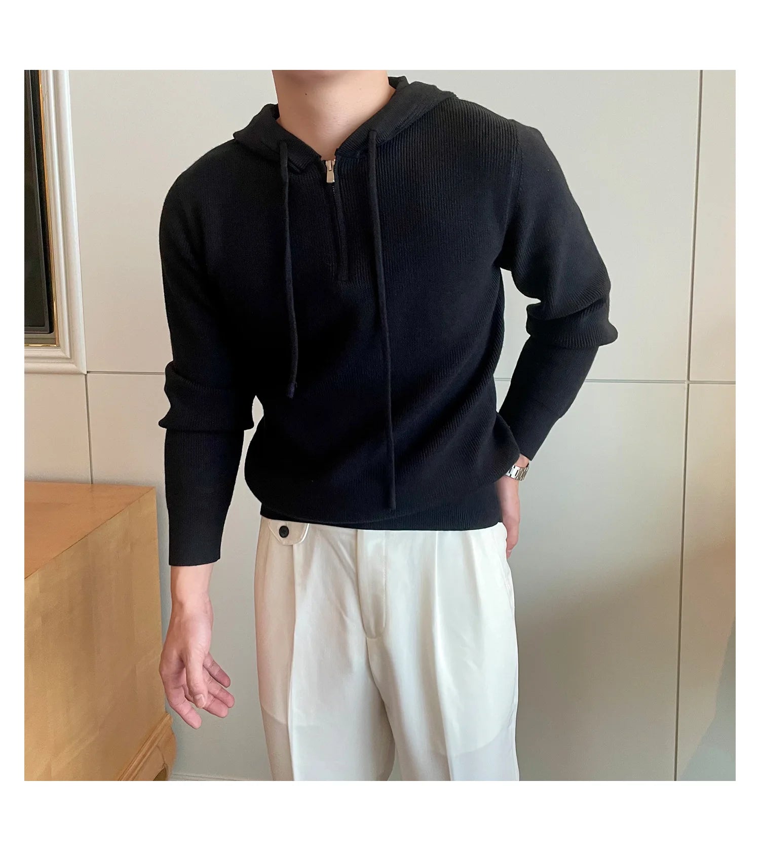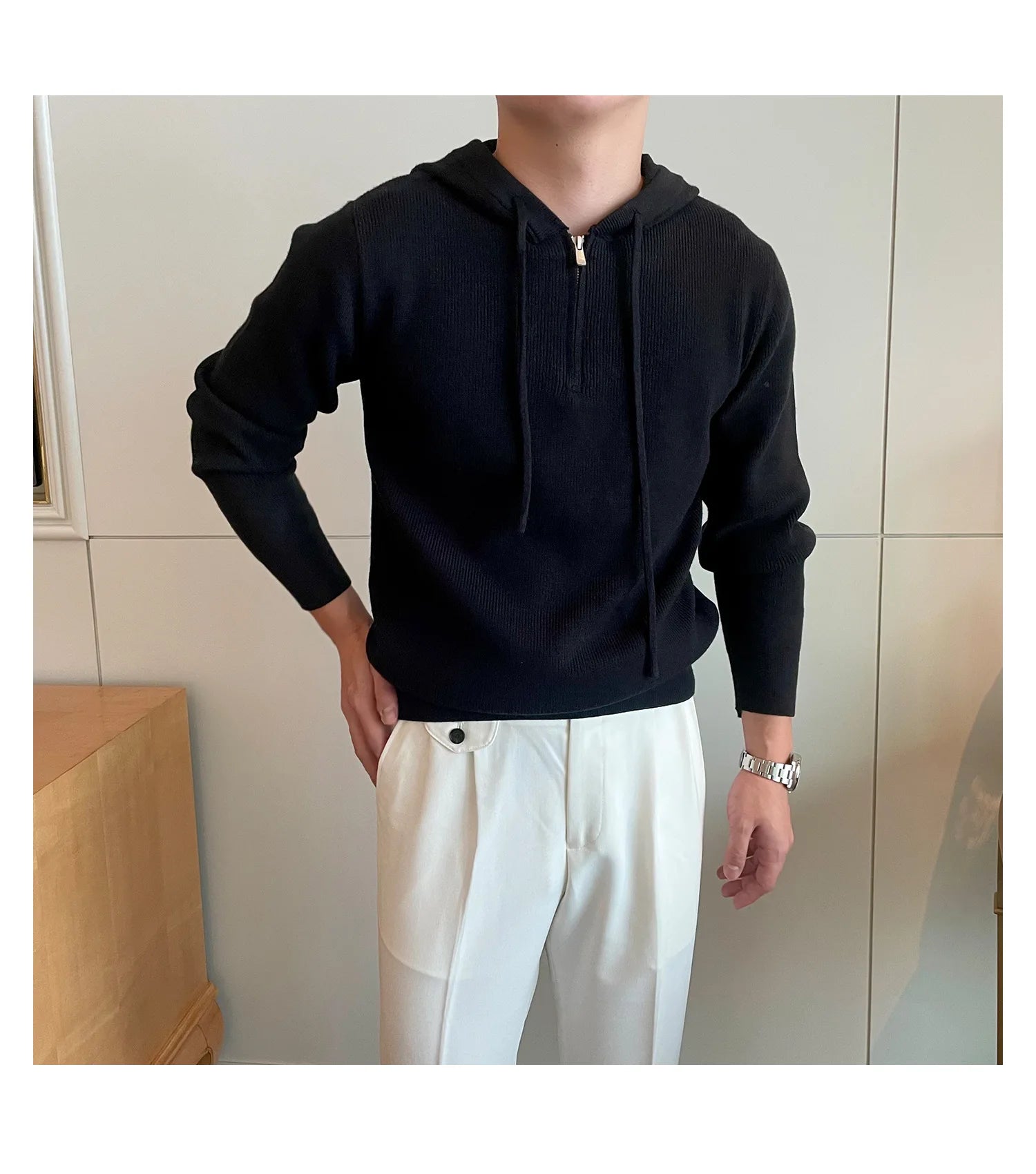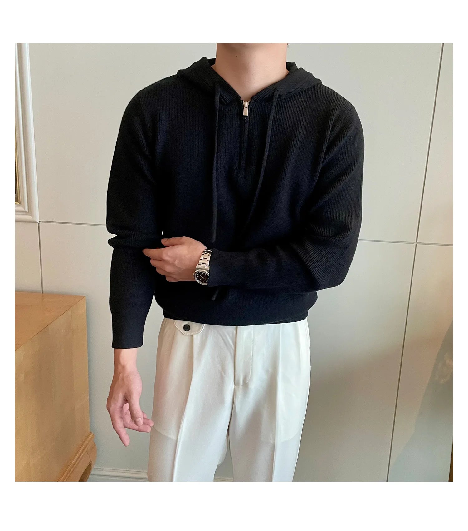 Riolio New British Leisure Men's Hooded Sweater Trendy Zip-up Preppy Style Slim-fit Long Sleeve Hoodies Casual Vintage Warmth Knitwear
