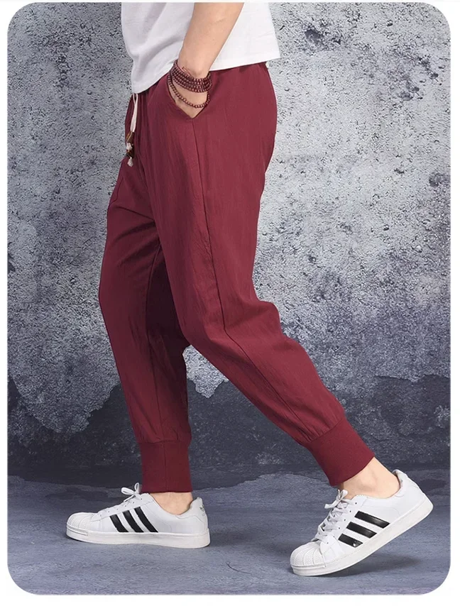 Riolio New Cotton Linen Shirts Men's Casual Sleeveless Vest Lace Up Shirts Retro V Neck Tank Tops Loose Shirt Male Solid Color Clothes