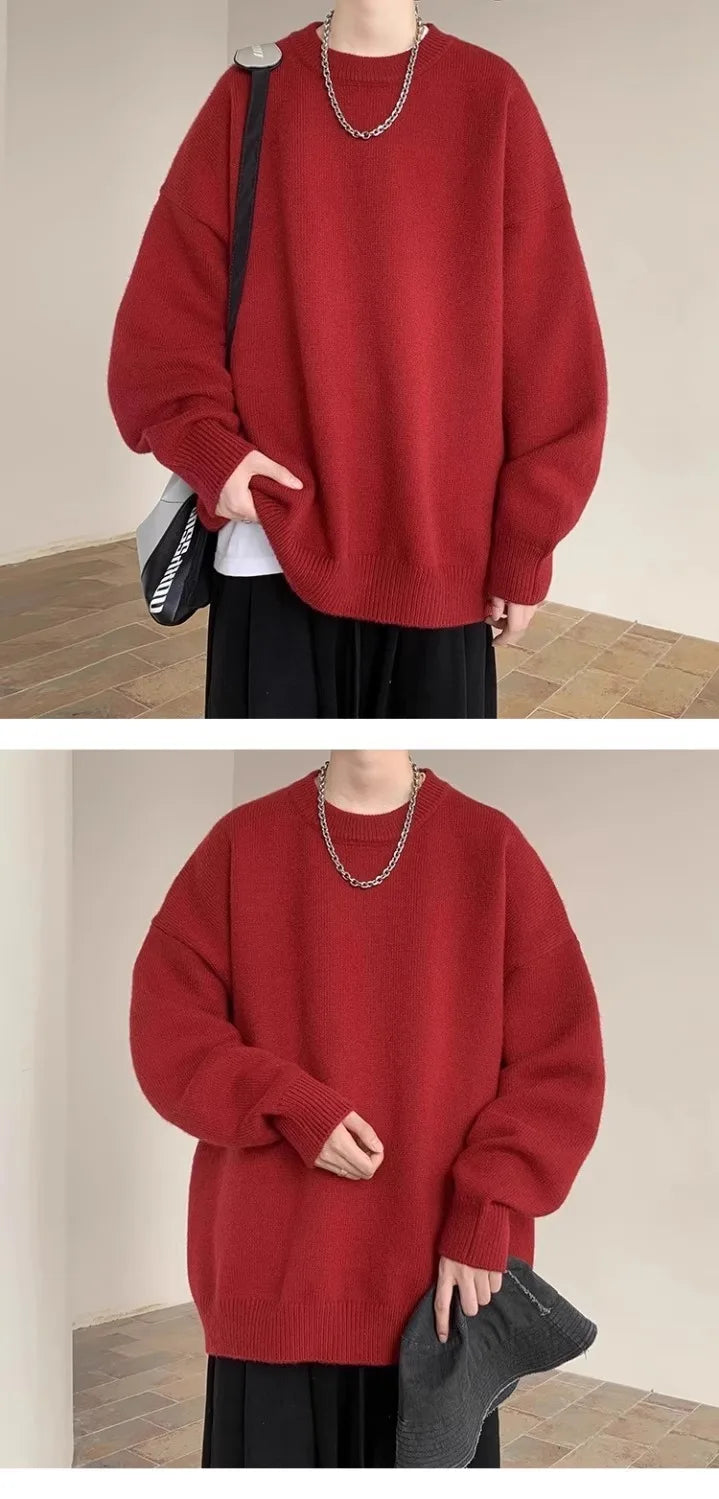Riolio New Japanese Retro Men Knitted Sweater Light Luxury Casual O Neck Solid Color Long Sleeve Pullovers Loose High Street Knitwear