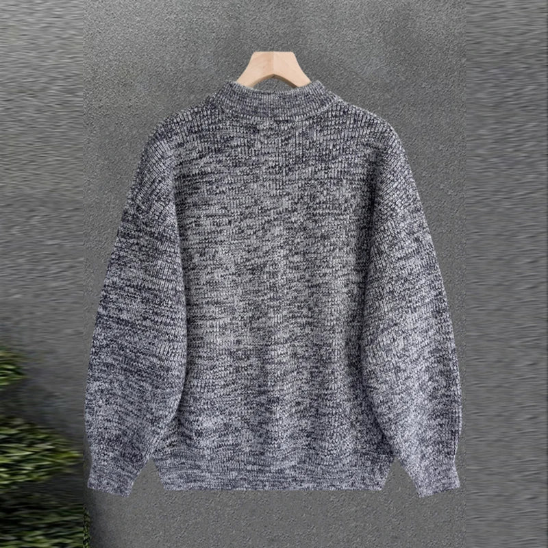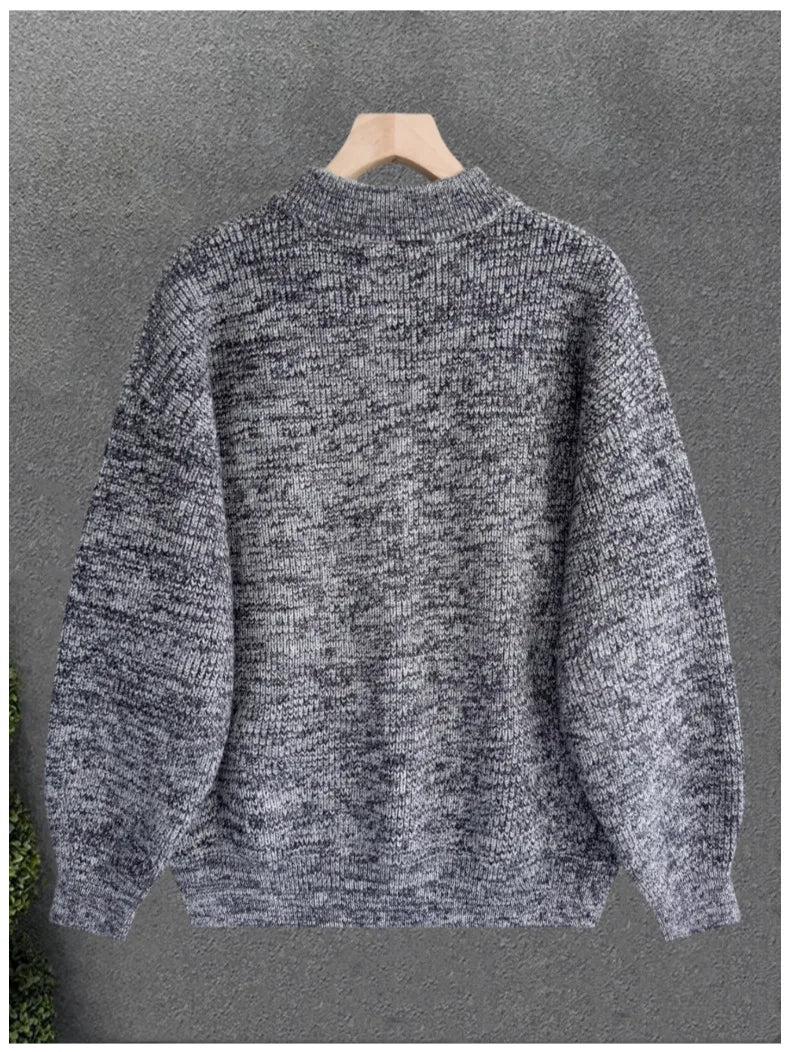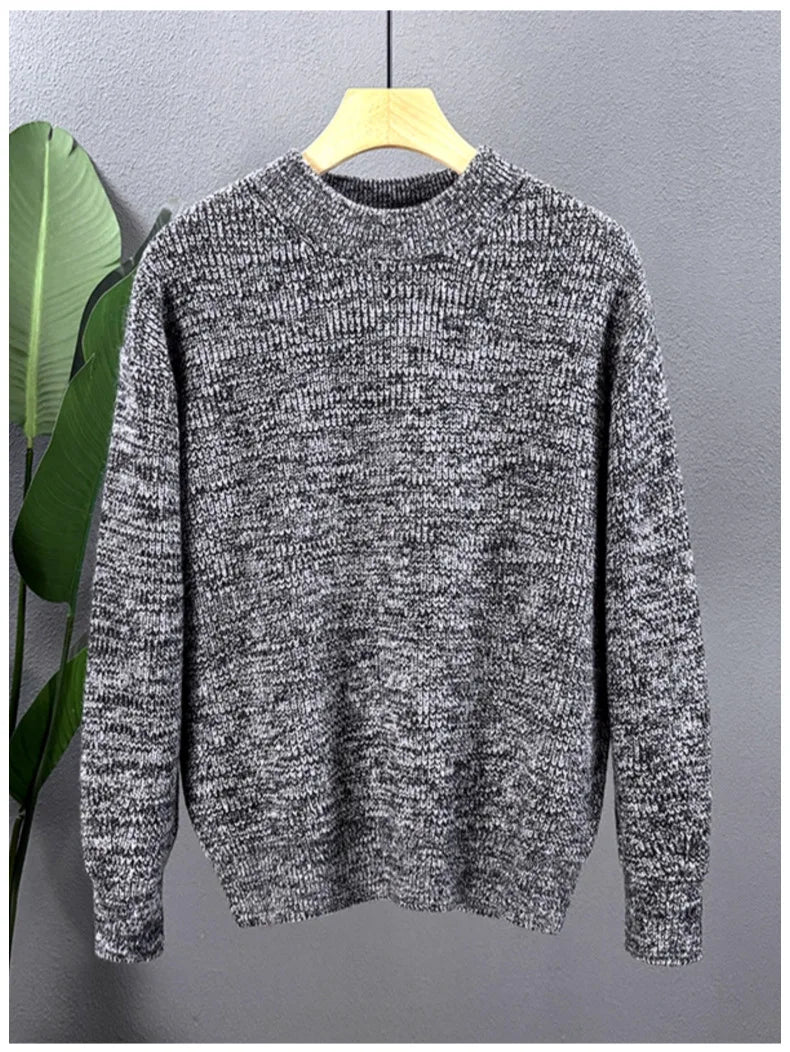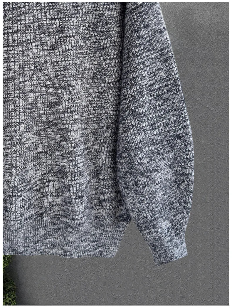 Riolio New Japanese Retro Men Sweater Light Luxury Knitted O Neck Grey Long Sleeve Pullover Casual Loose Premium Thickened Knitwear