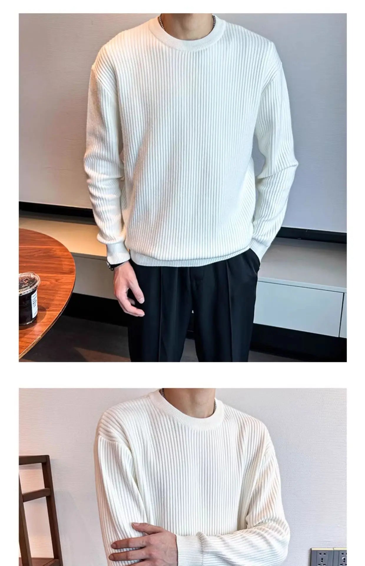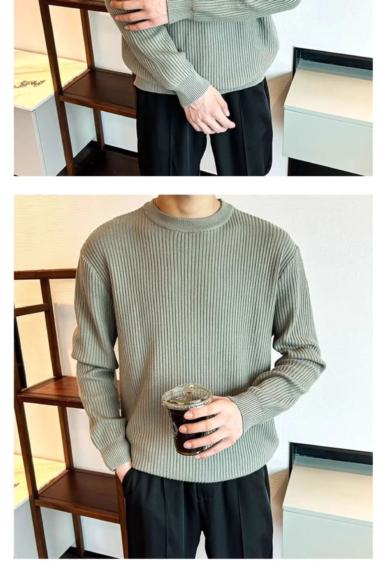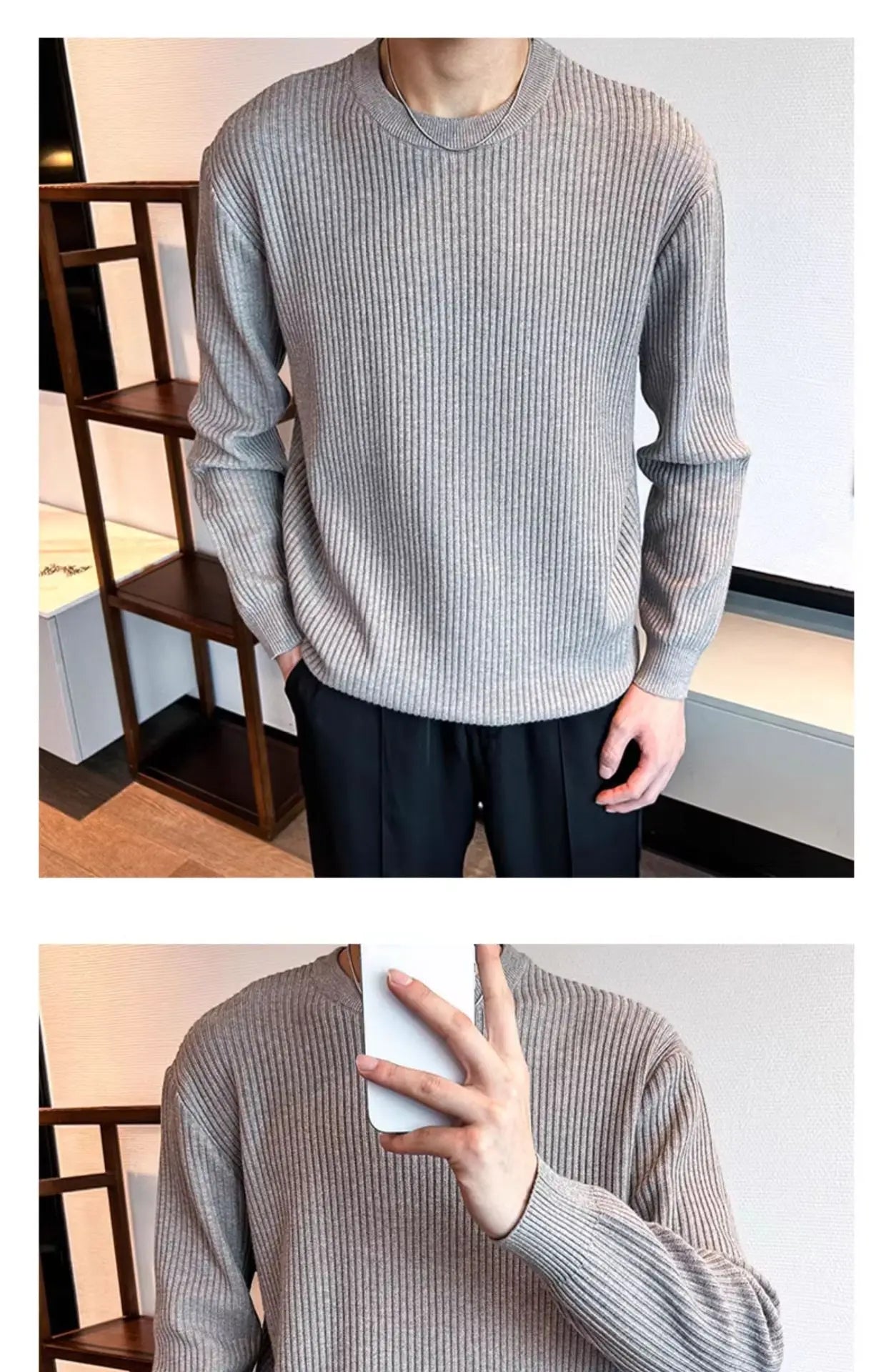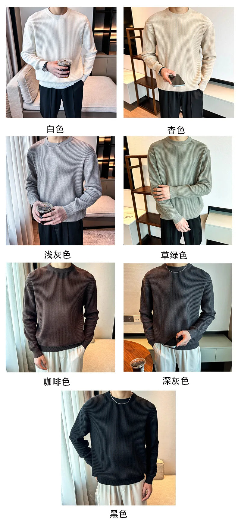 Riolio New Korean Retro Men Basic Sweater Luxury Knitted Solid Color O Neck Long Sleeve Pullover Casual Slim Premium Quality Knitwear