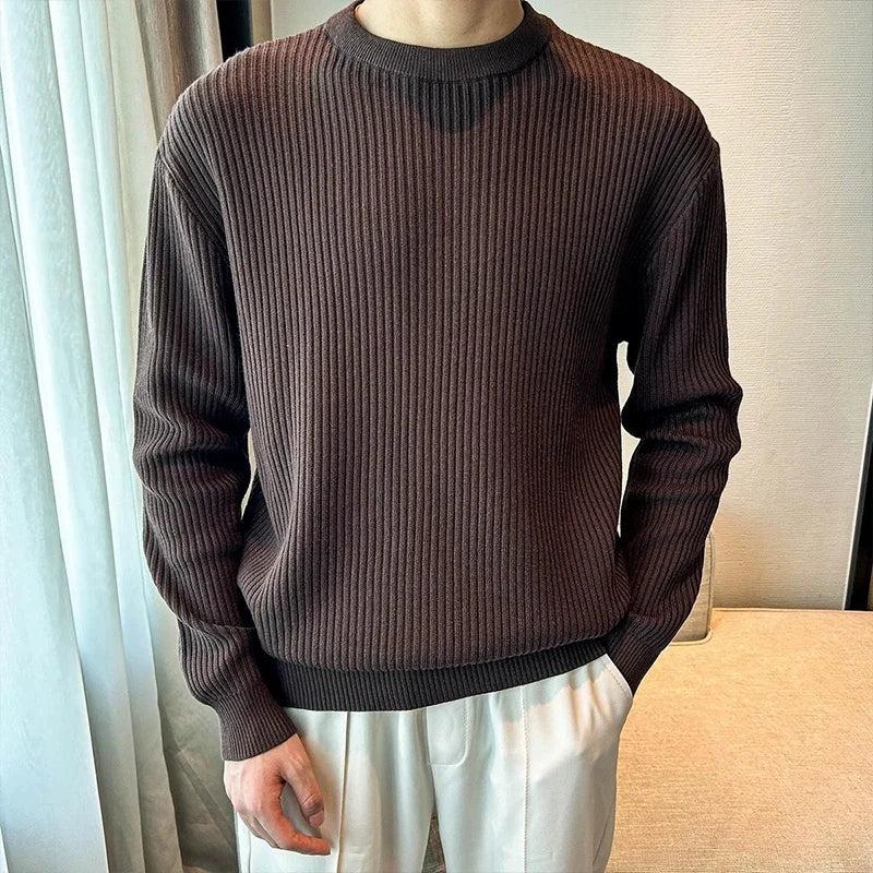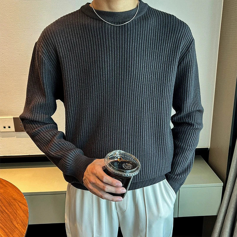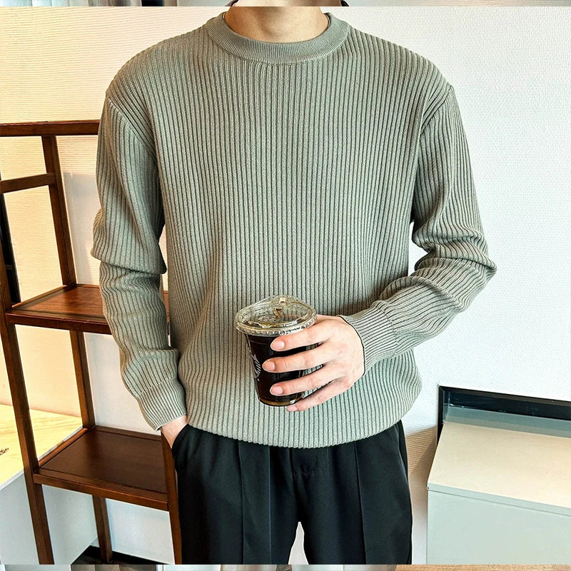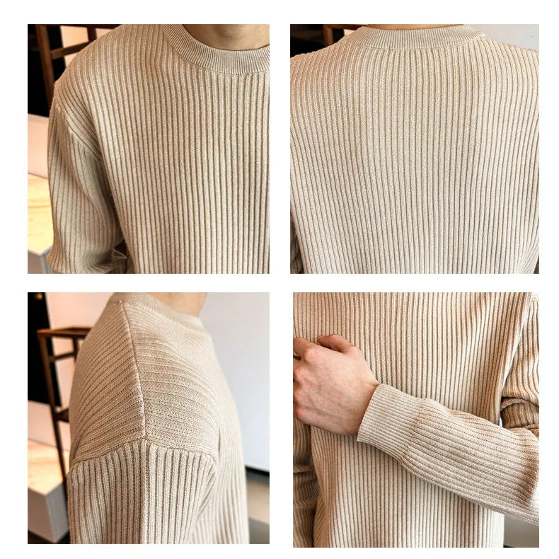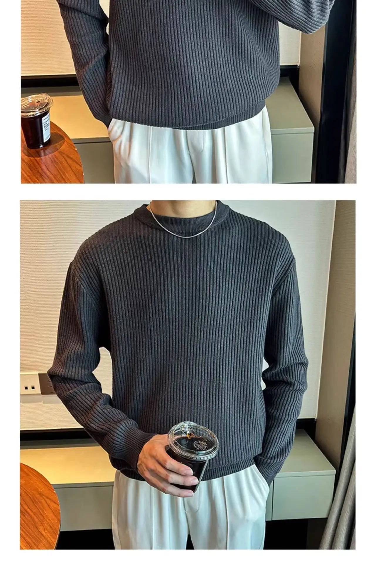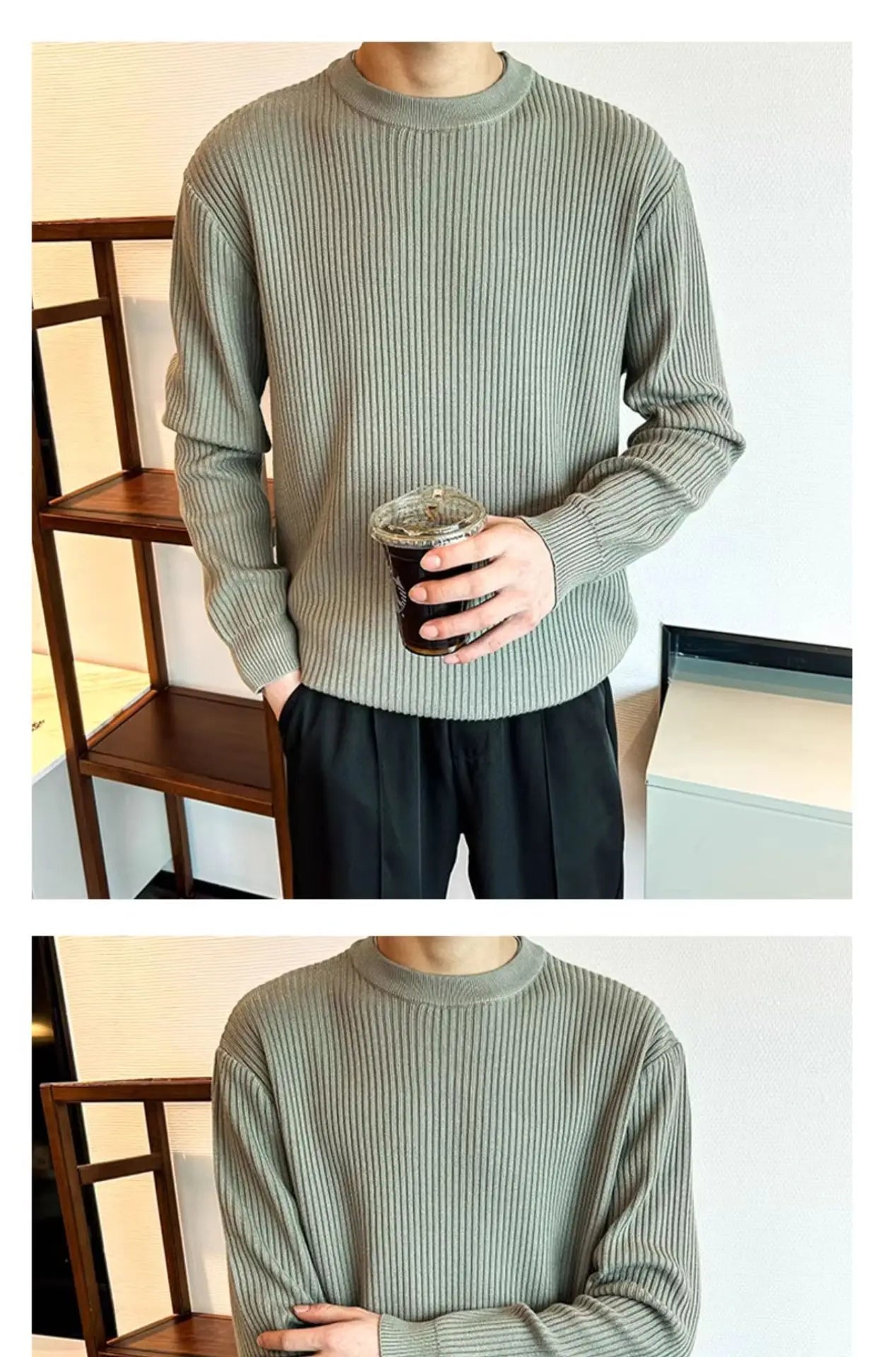 Riolio New Korean Retro Men Basic Sweater Luxury Knitted Solid Color O Neck Long Sleeve Pullover Casual Slim Premium Quality Knitwear