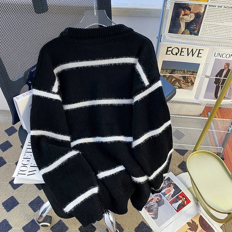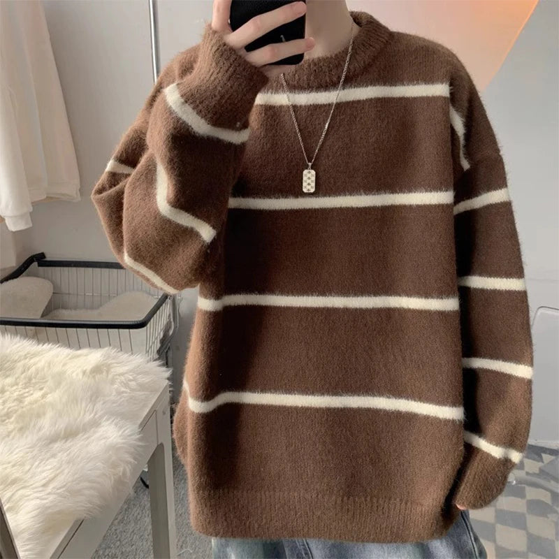 Riolio New Korean Trendy Men Sweater Light Luxury Knitted Drooping Stripe O Neck Long Sleeve Pullover Casual High Street Knitwear M-3XL
