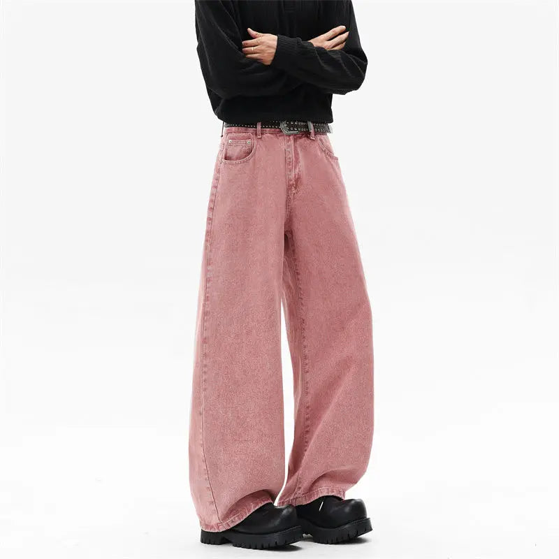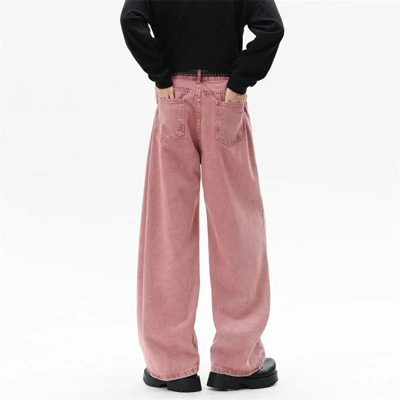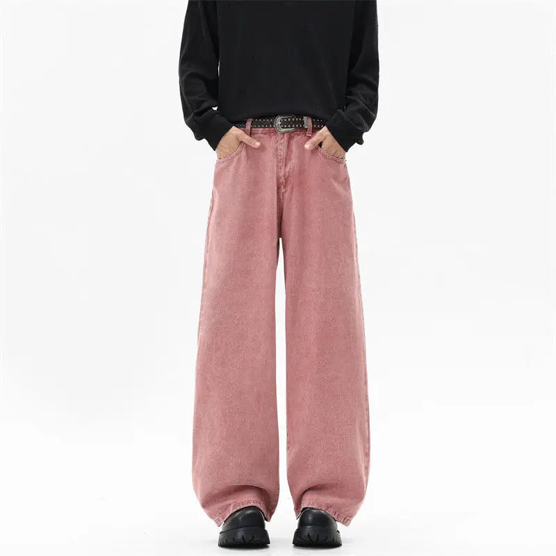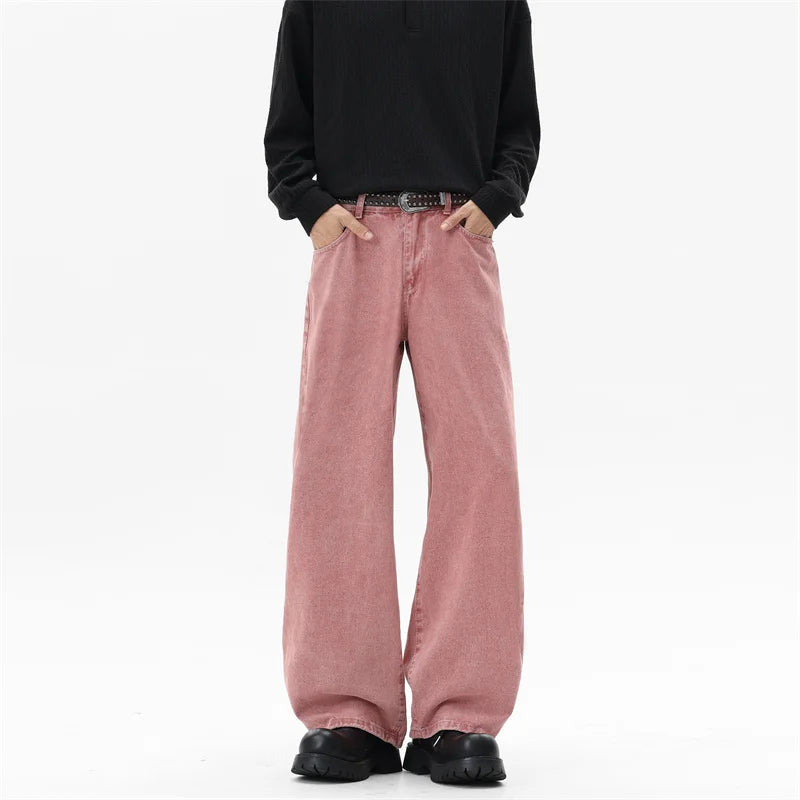 Riolio Pink Straight Leg Denim Pants Unisex Gender Neutral Jeans Urban Street Style Fashion Trendy Casual Wear Comfortable 2025 New