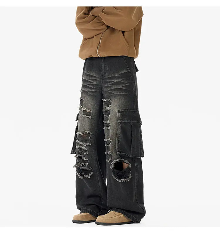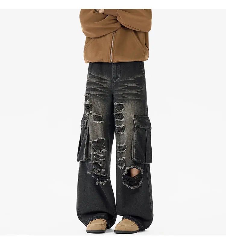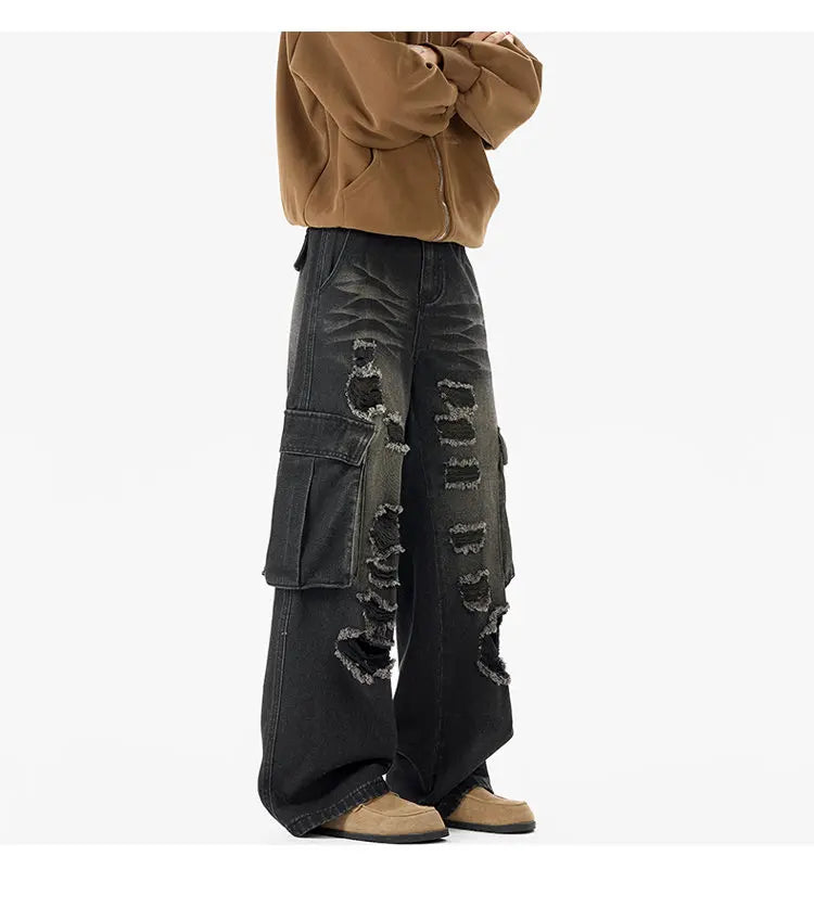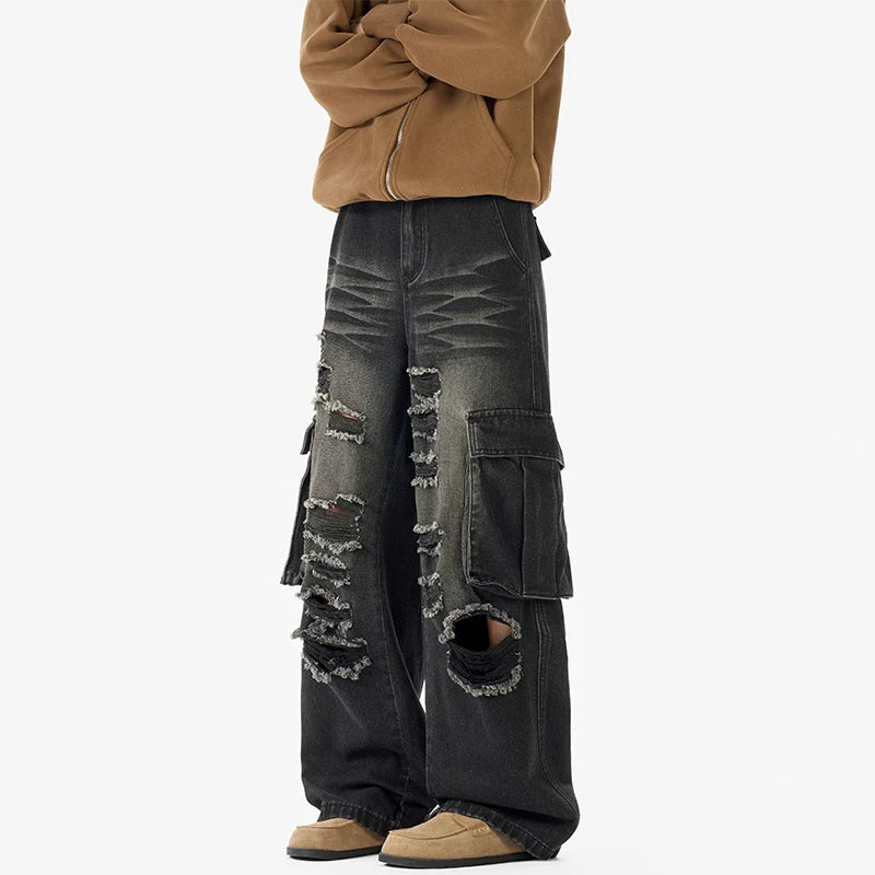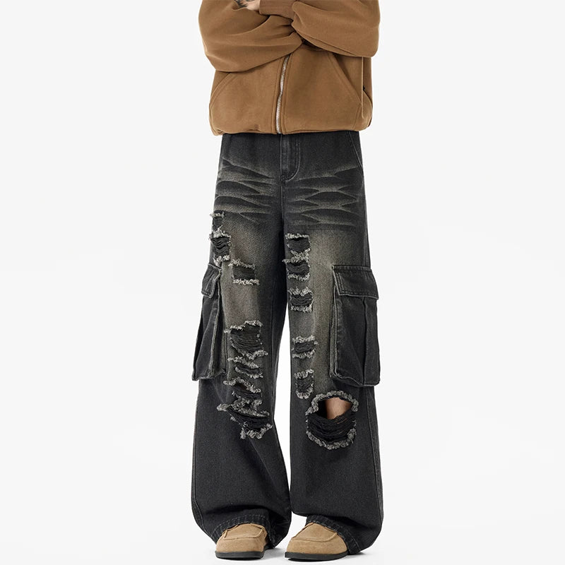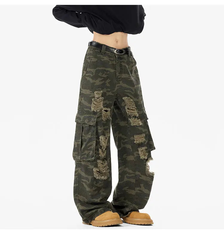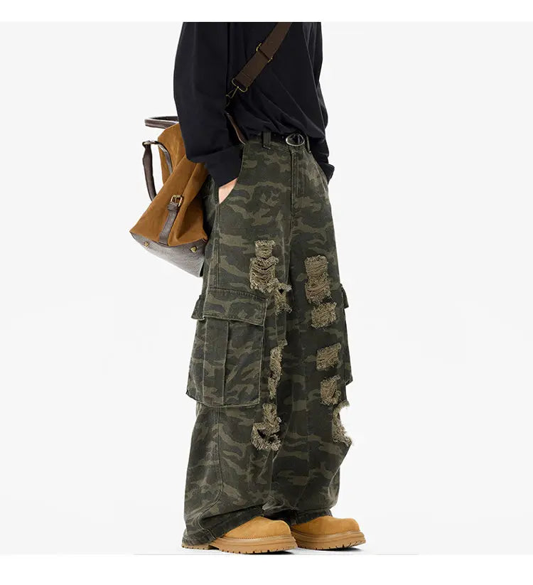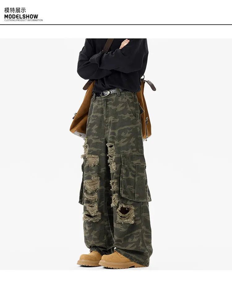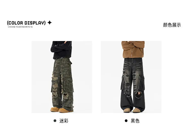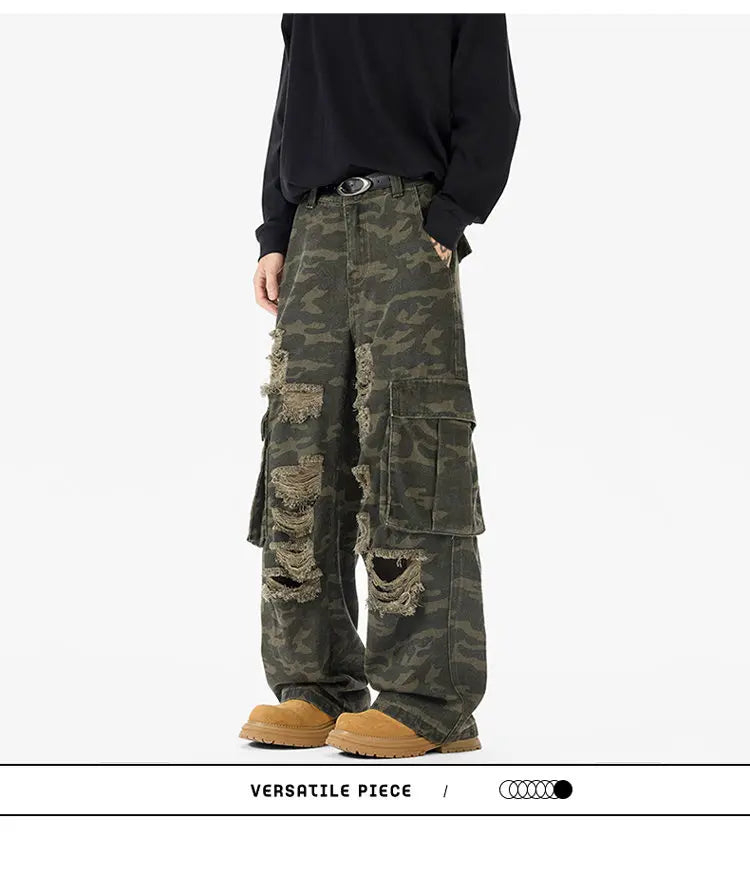 Riolio Ripped Camo Jeans Men 2025 New Loose Straight Leg Denim Pants Outdoor Hiking Trousers Casual Comfort Street Style Fashion