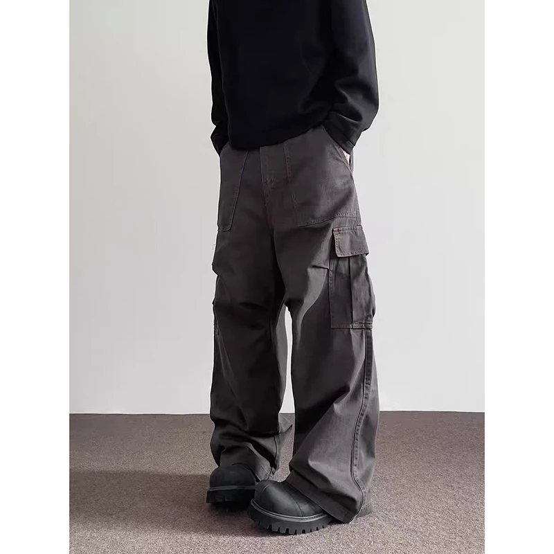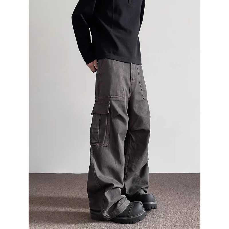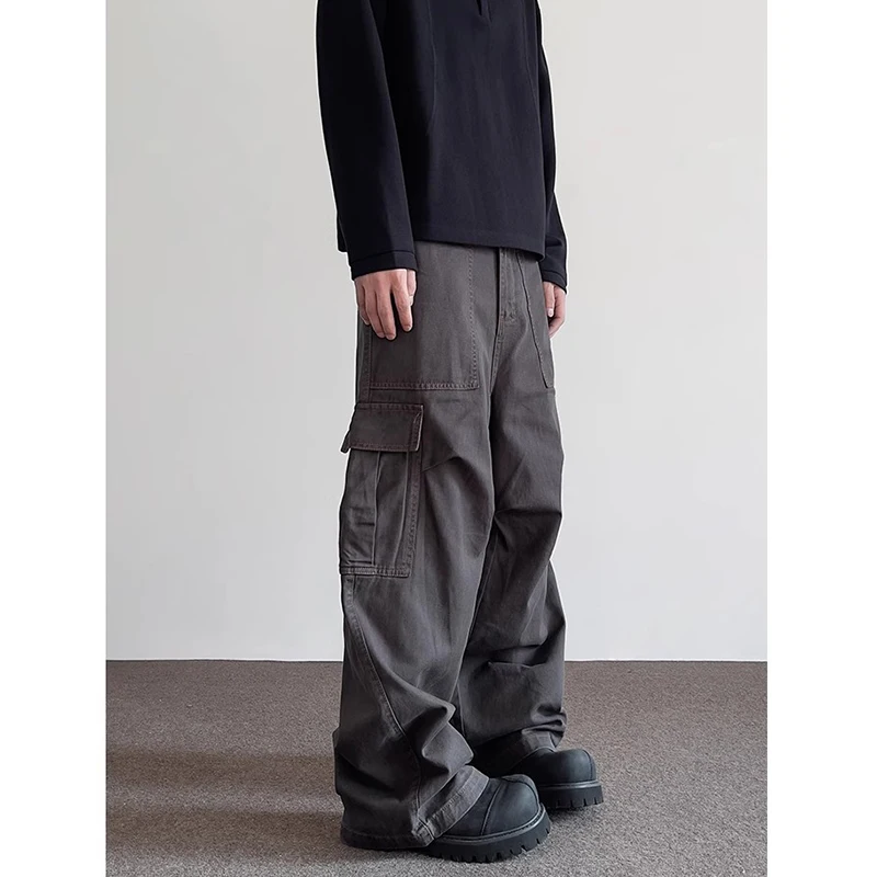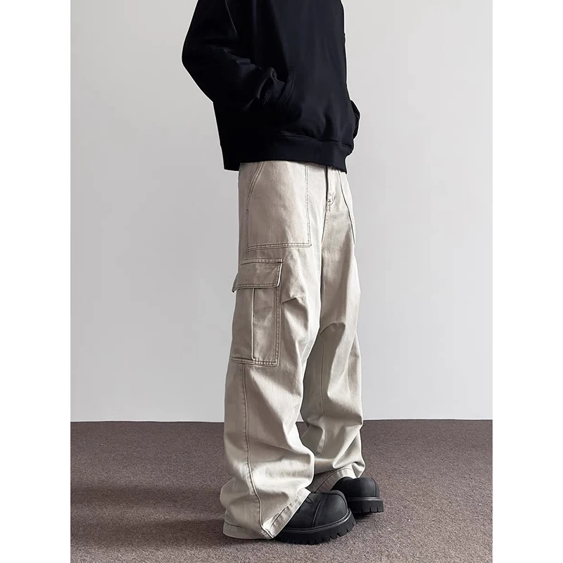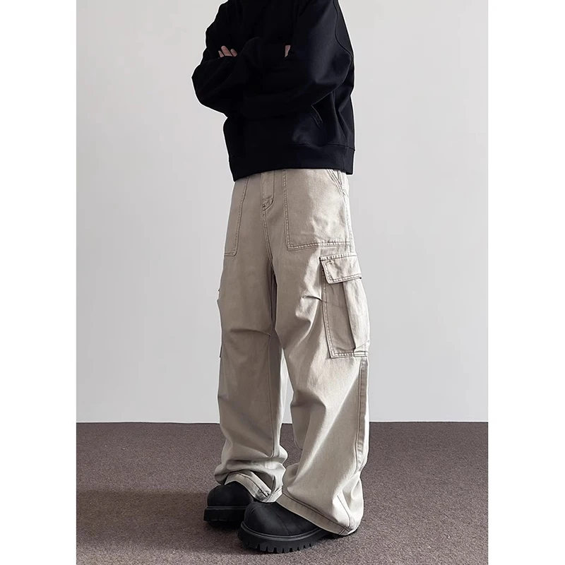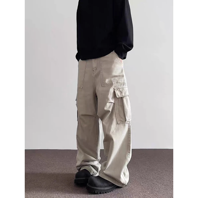 Riolio Summer American Vintage High Waisted Khaki Jeans Men's Casual Grunge High Street 2000s Pants Y2K Wide Leg Washed Denim Trouser