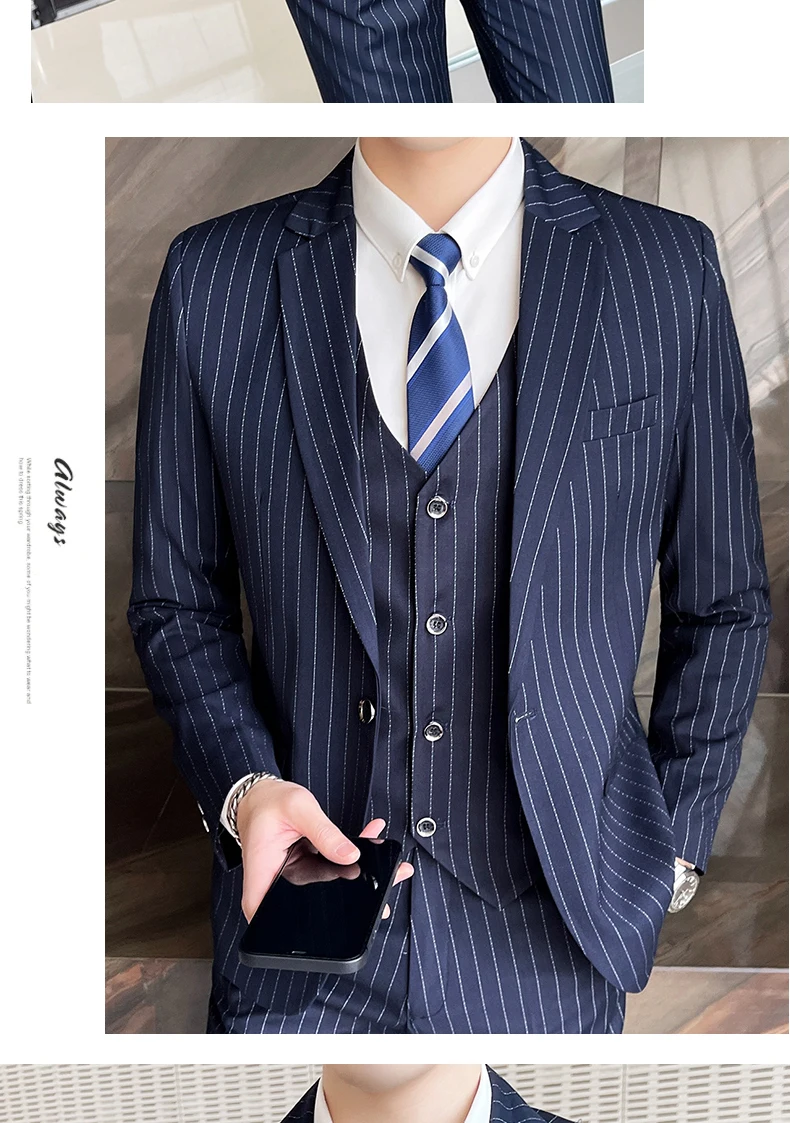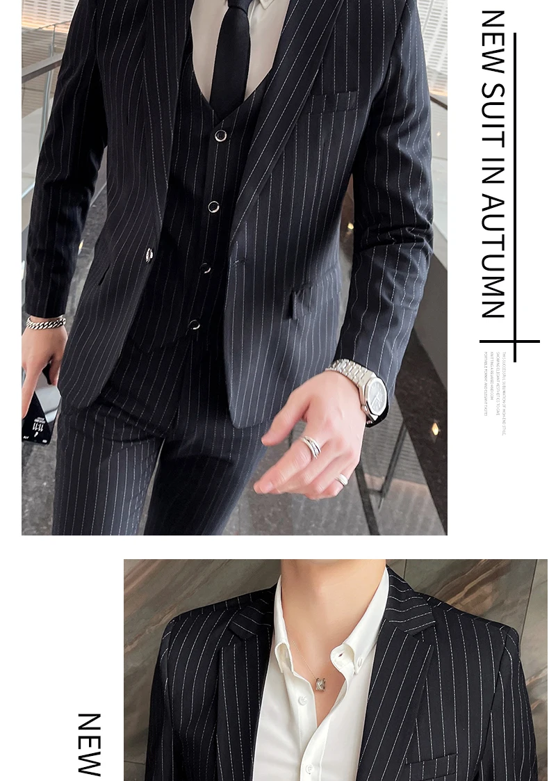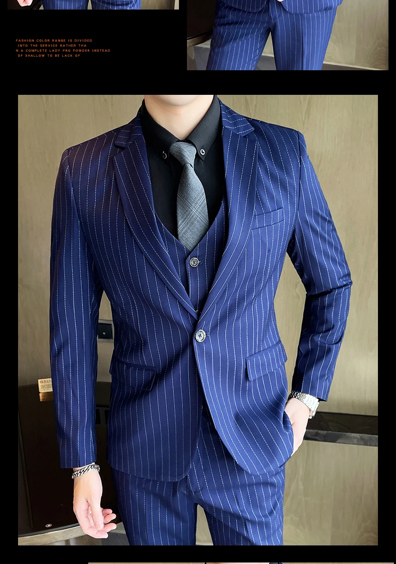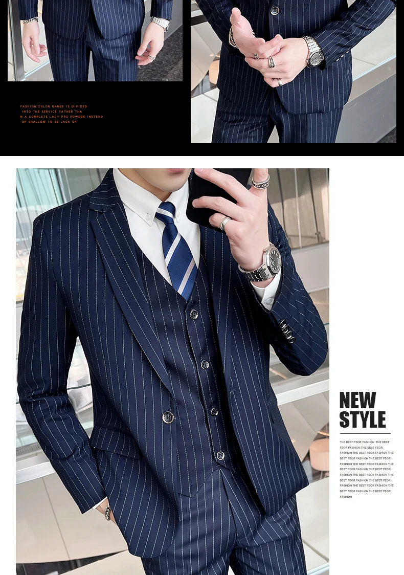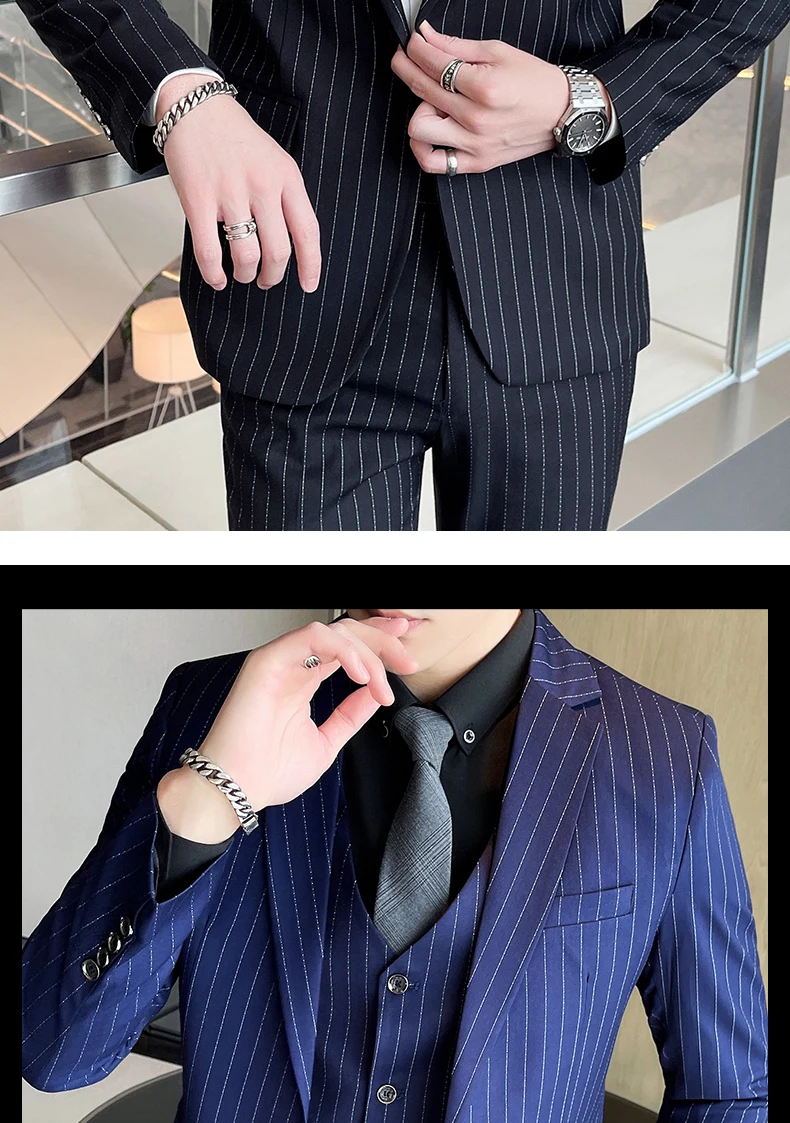 Riolio 3 Pcs Set Blazers Jacket Pants Vest / Fashion Men's Casual Boutique Business Striped Groom Wedding Suit Trousers Waistcoat