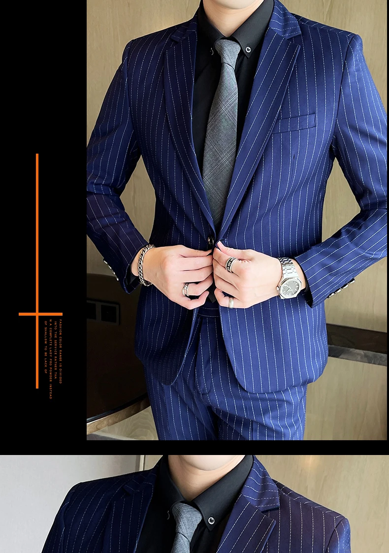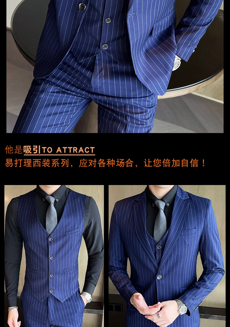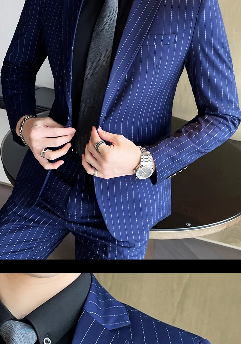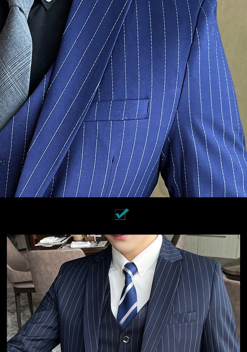 Riolio 3 Pcs Set Blazers Jacket Pants Vest / Fashion Men's Casual Boutique Business Striped Groom Wedding Suit Trousers Waistcoat