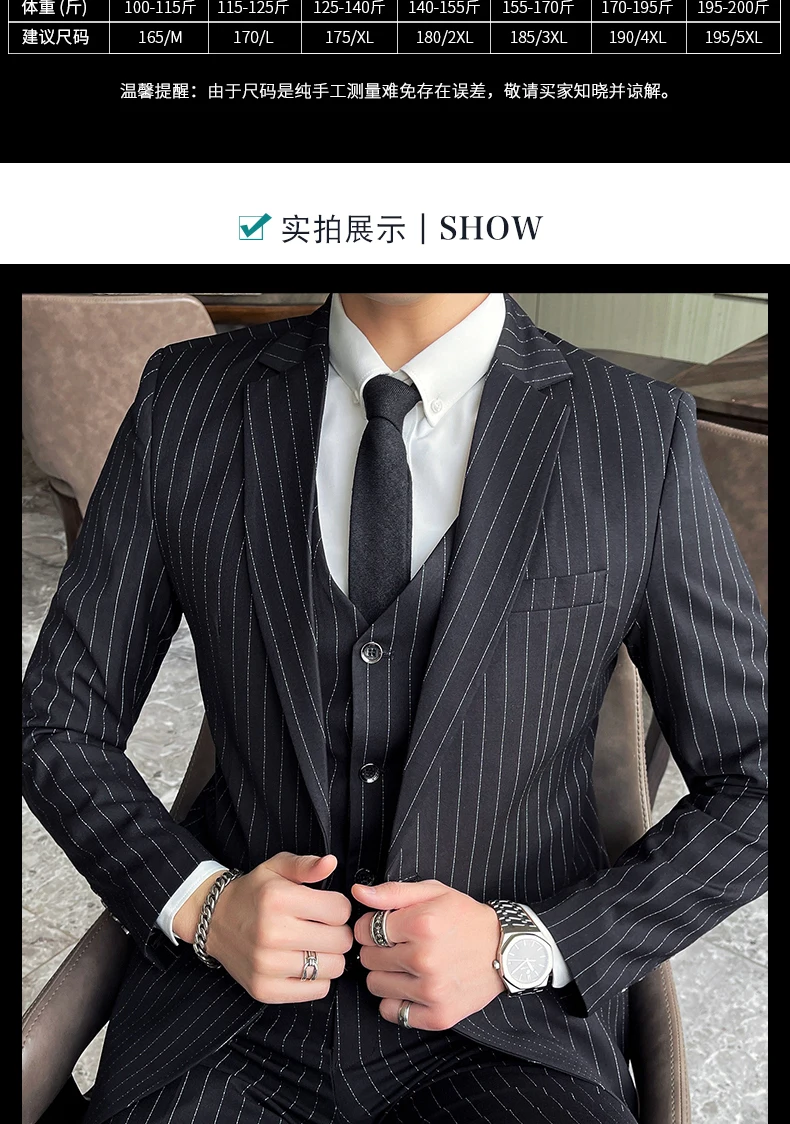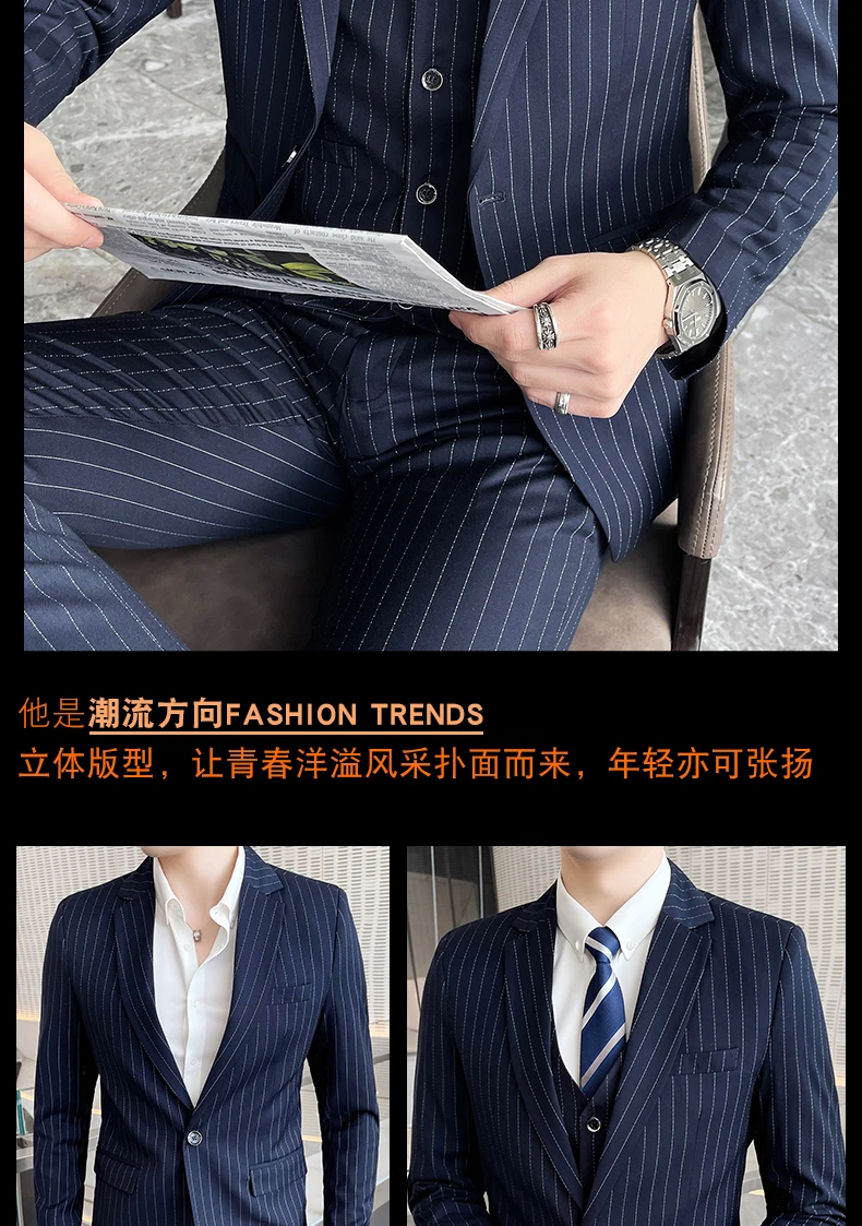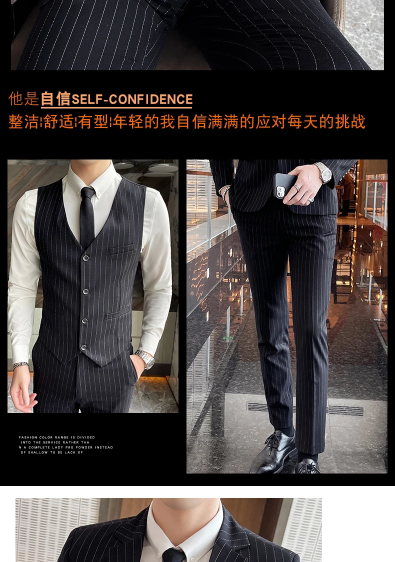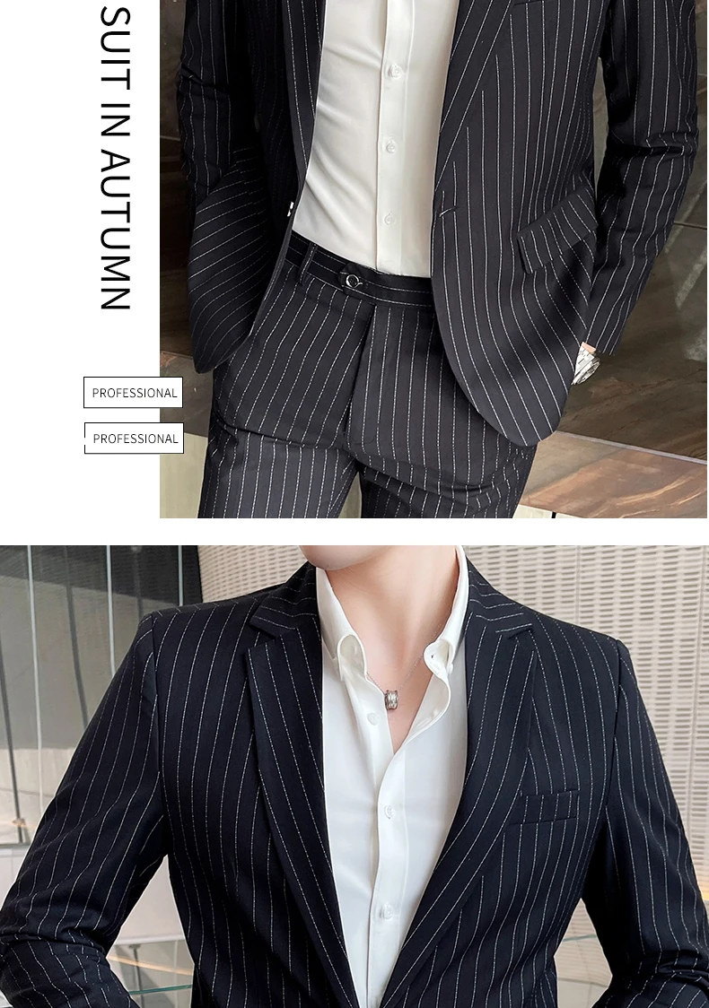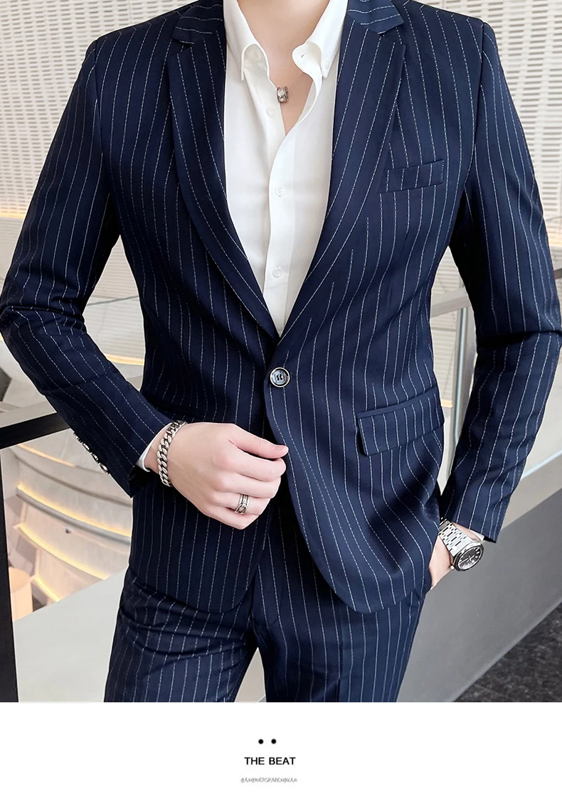 Riolio 3 Pcs Set Blazers Jacket Pants Vest / Fashion Men's Casual Boutique Business Striped Groom Wedding Suit Trousers Waistcoat