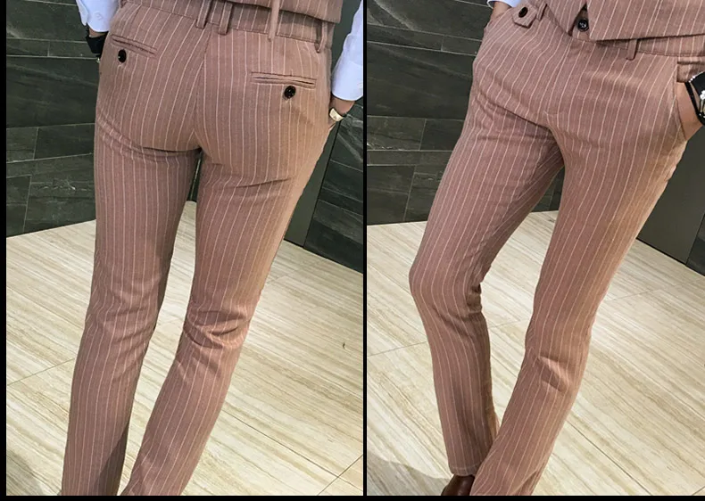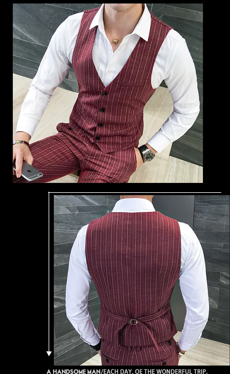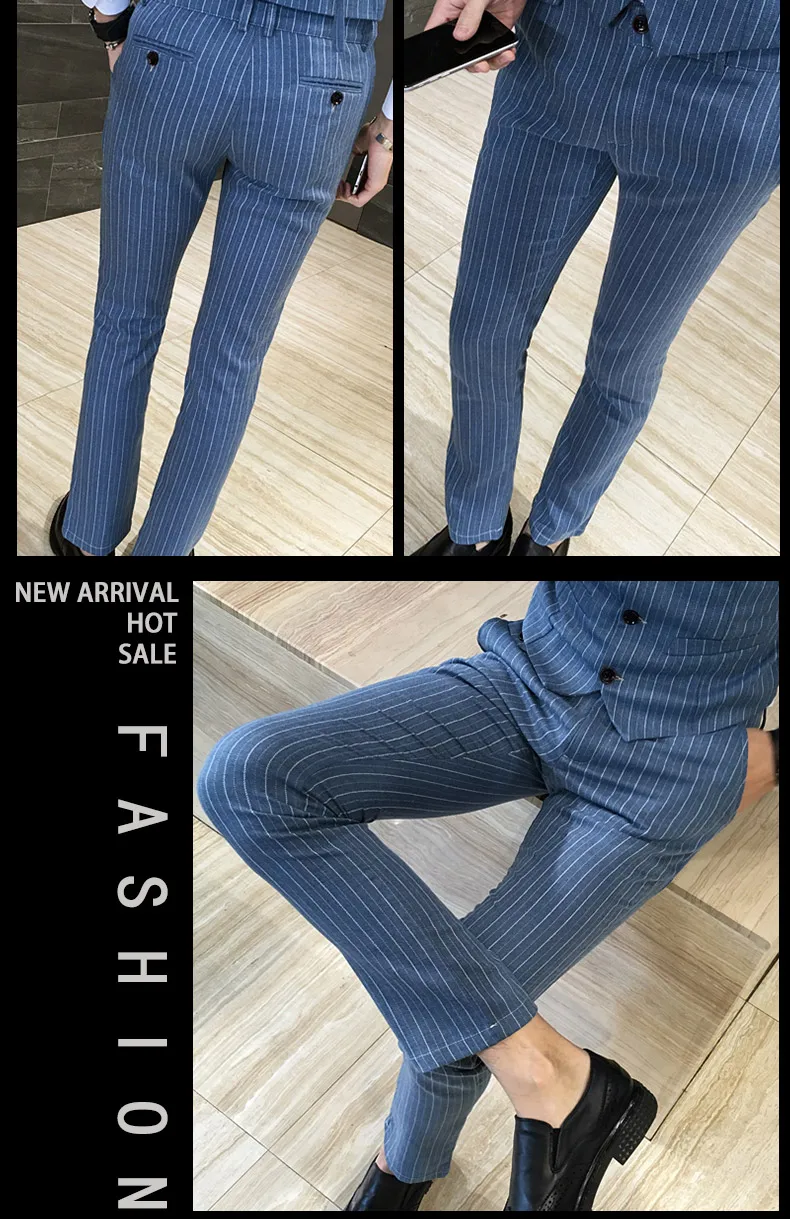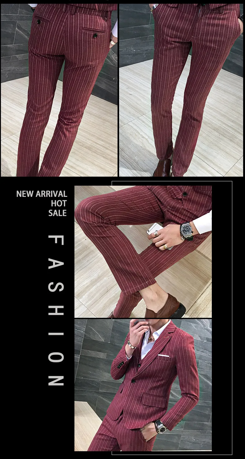( Jackets + Vest + Pants ) Men's Fashion High-grade Business Striped Suit Three-piece Men Wedding Dress Smart Suit Blazers