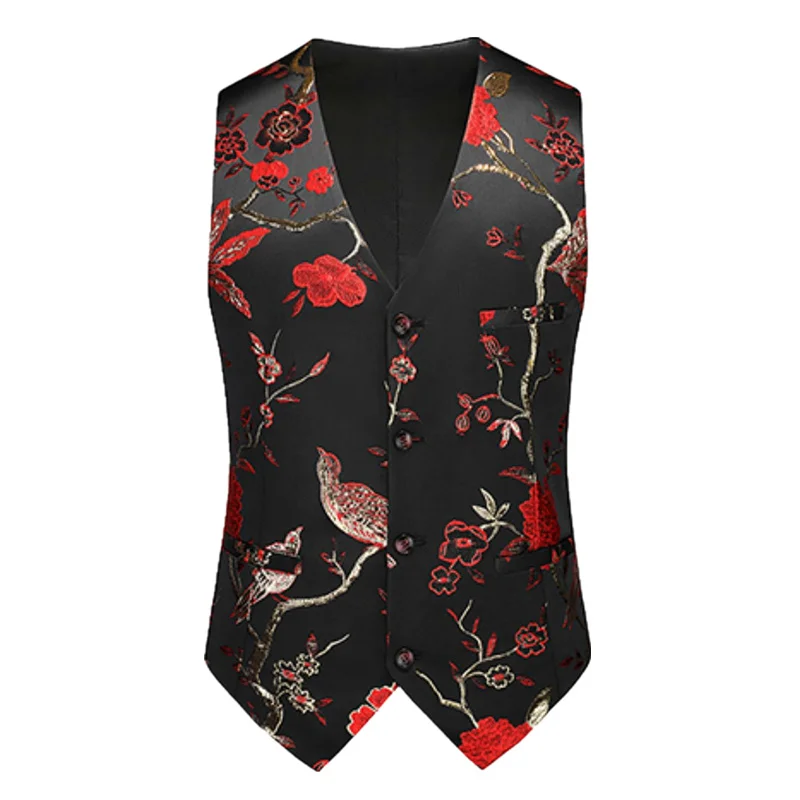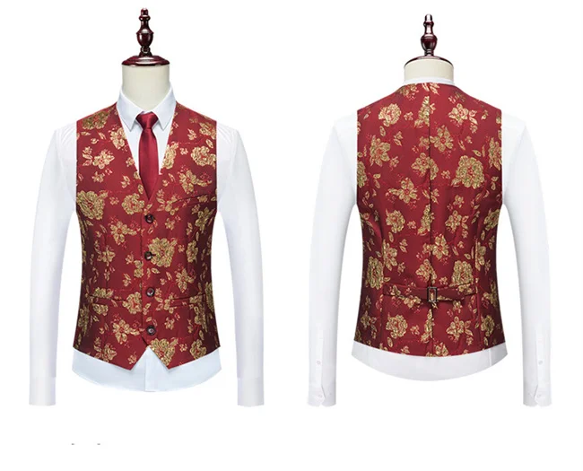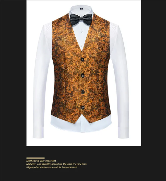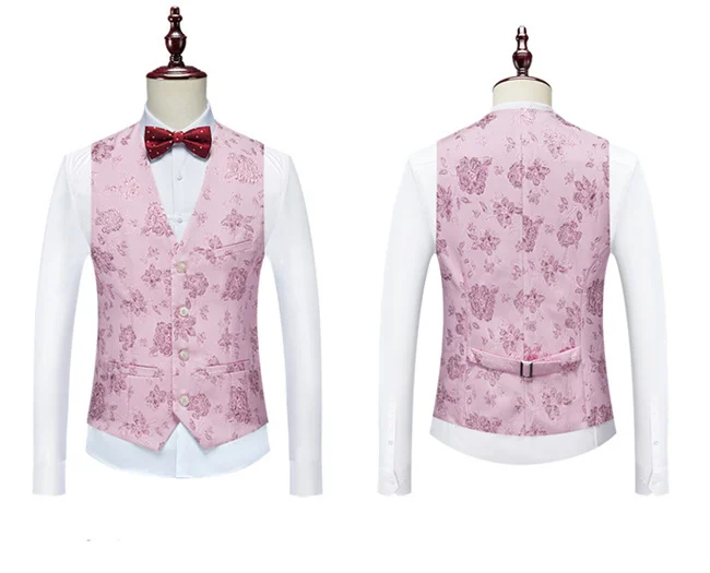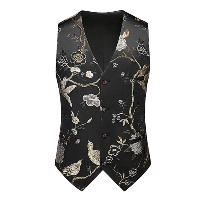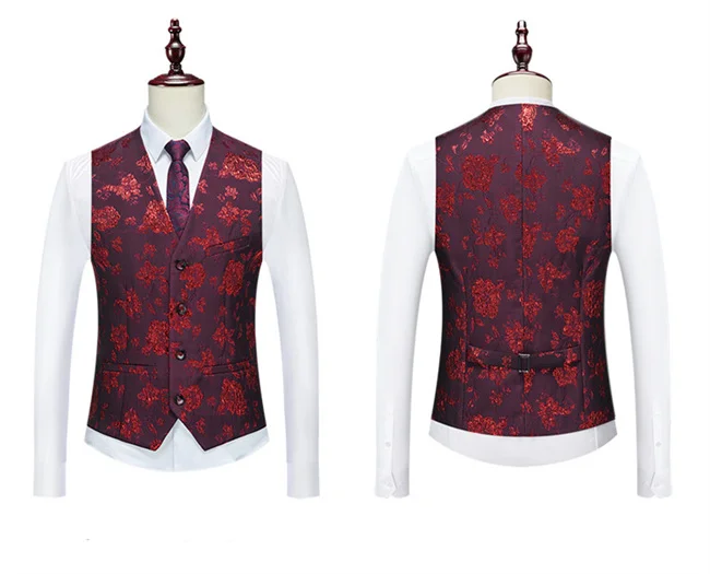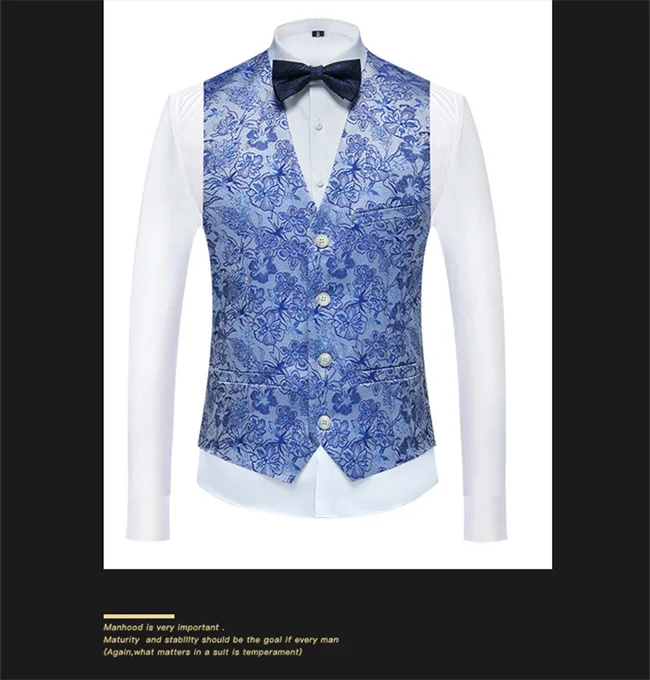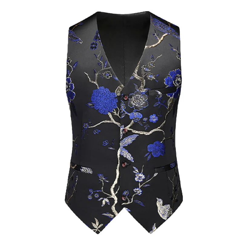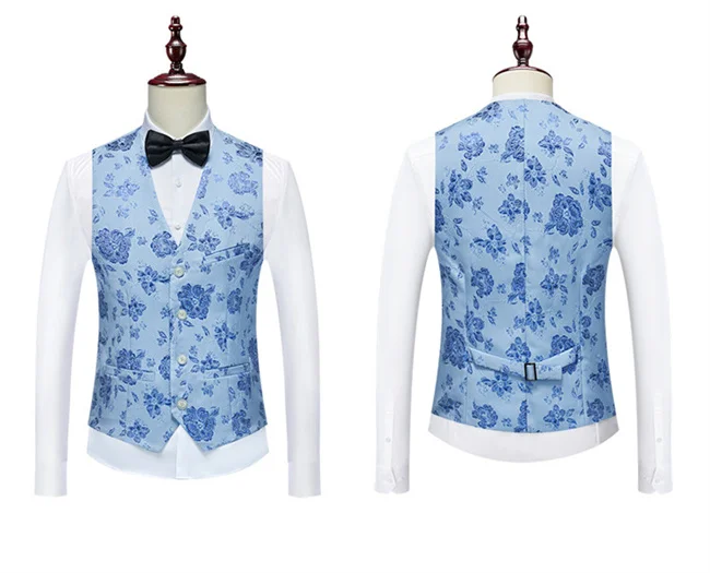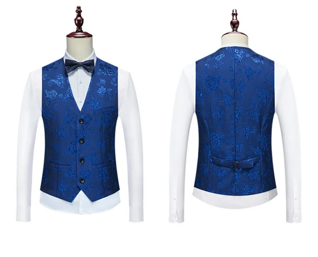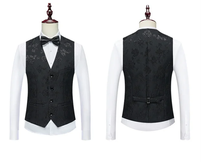 Riolio Large Size 6XL Men Luxury Jacquard Wedding Suit Vest Black Blue White Business Banquet Party Casual Flower Dress Waistcoat Homme