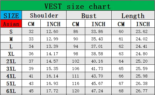 *1 . This VEST is ASIAN SIZE , ASIAN size is 3-4 sizes Smaller thanUS/EUR Size. / United Kingdom / Australia / EU size! (1cm=0.394in)