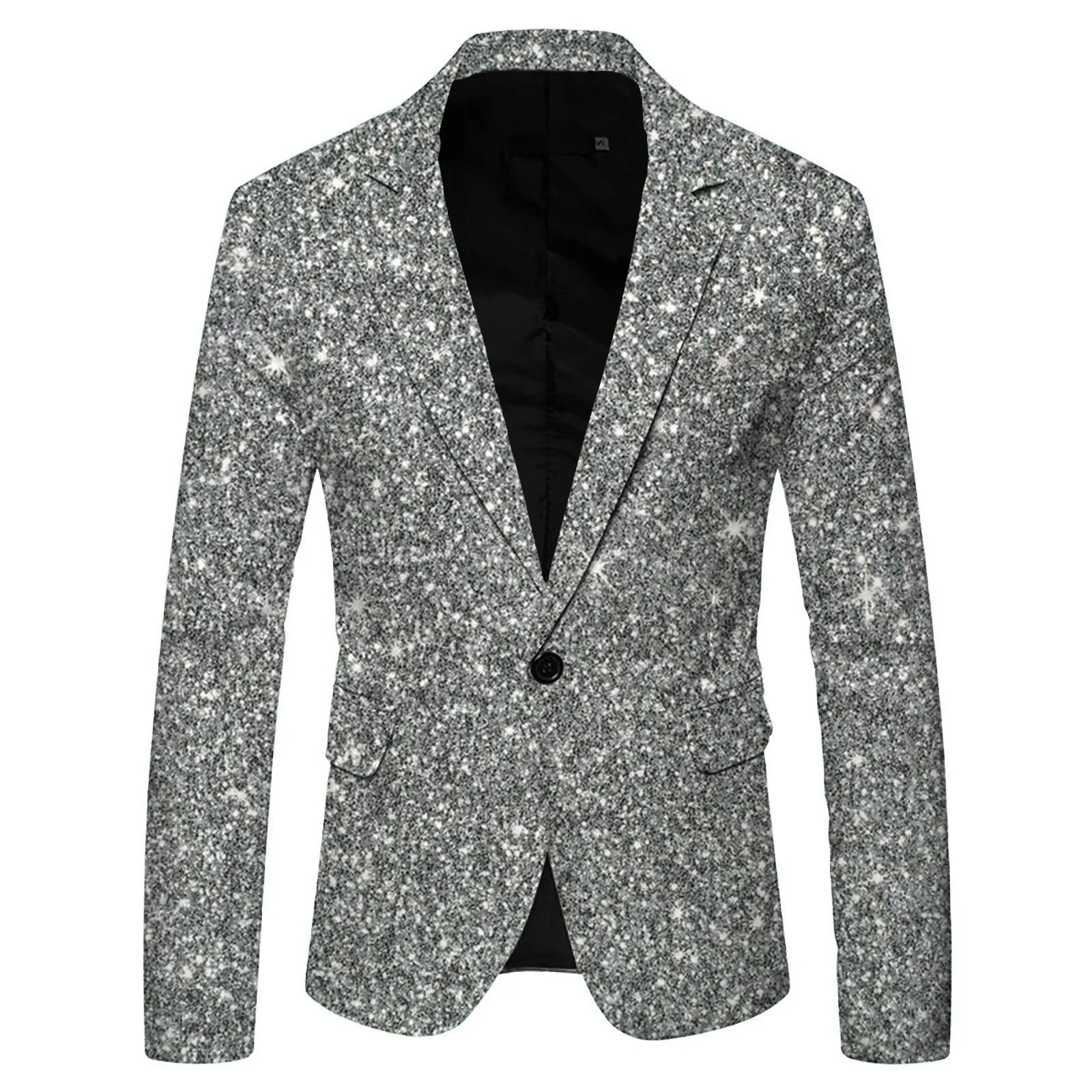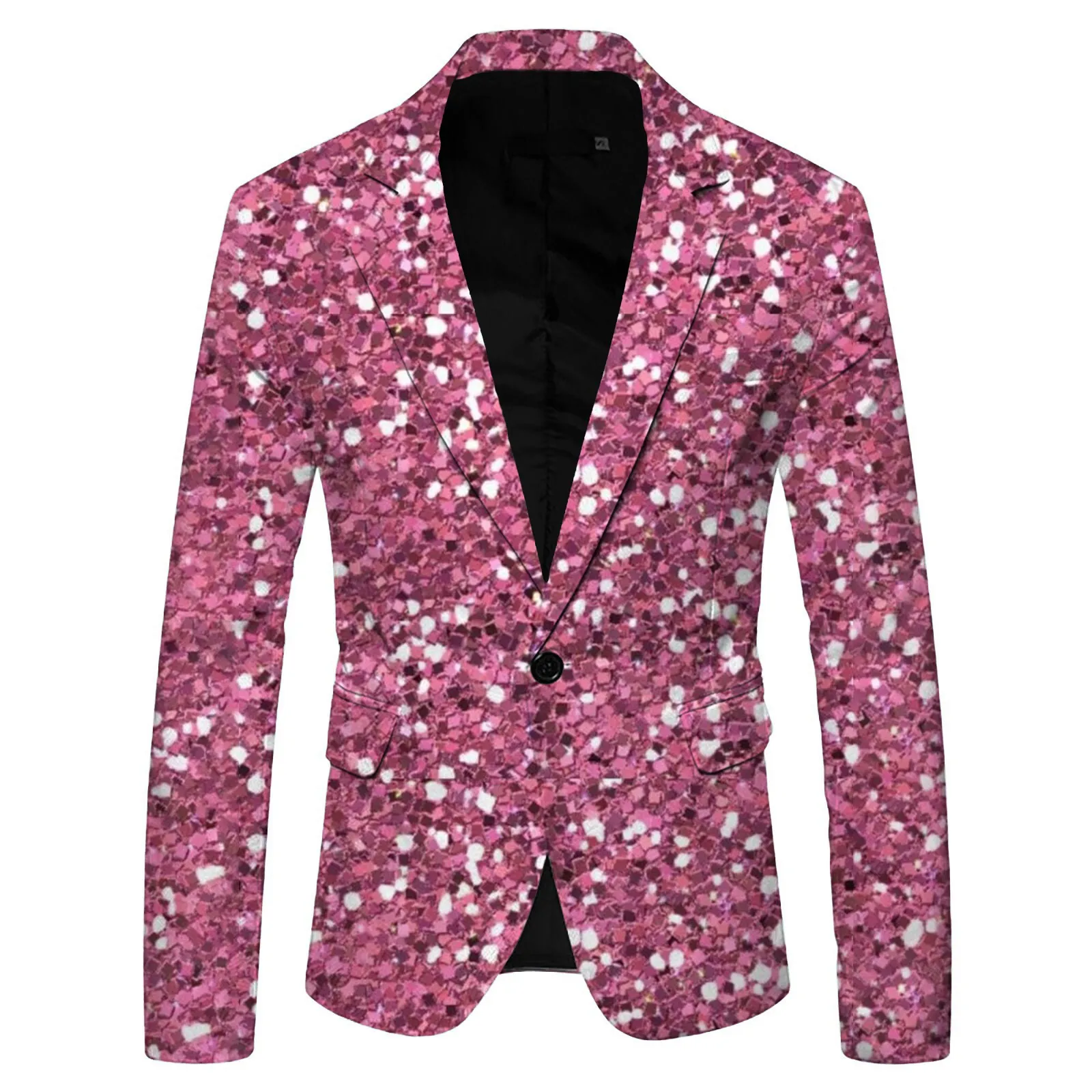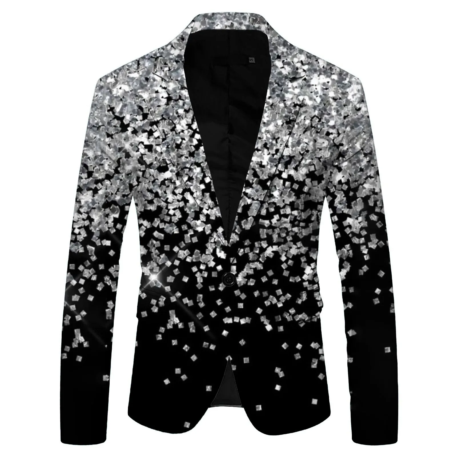 Men's 3D Sequin Suit Printed Pocket Lapel Button Up Suit Suit Style Four Wedding Suits