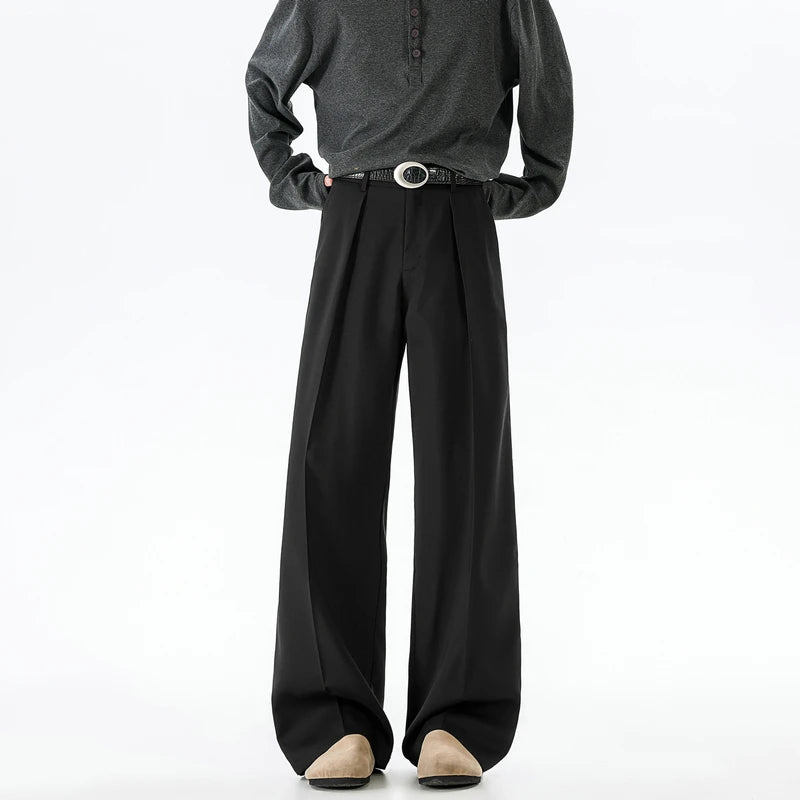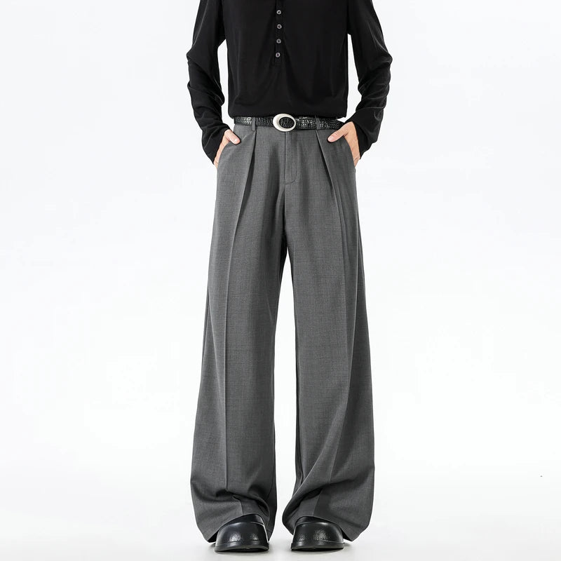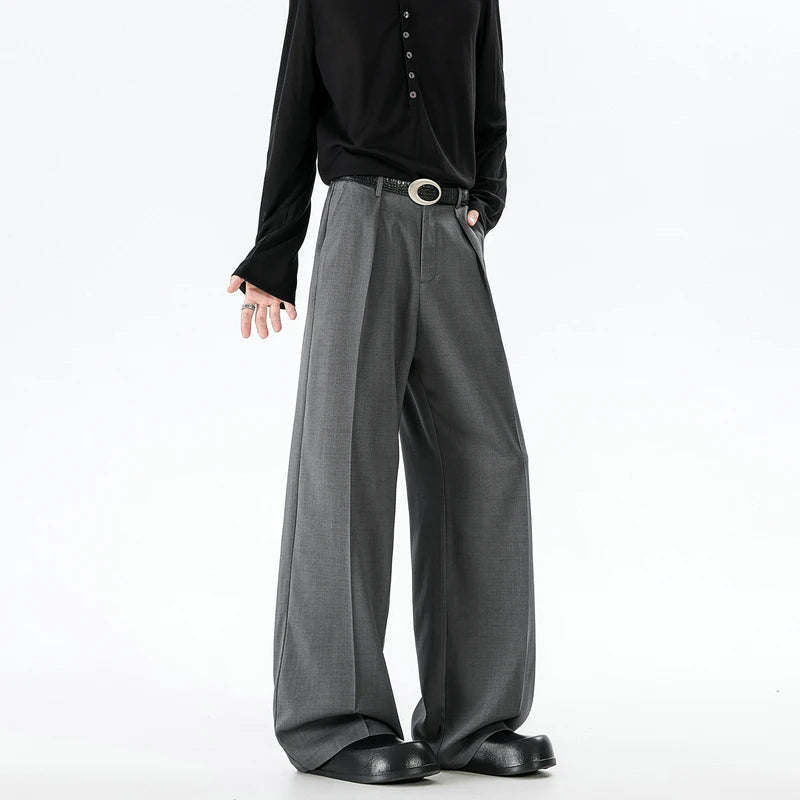 Riolio Grey Black Suit Pants Men Fashion Society Mens Dress Pants Korean Loose Wide Leg Pants Mens Office Formal Trousers Large Size