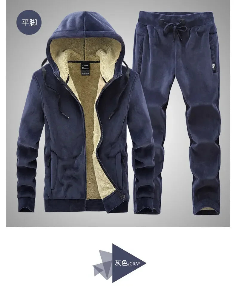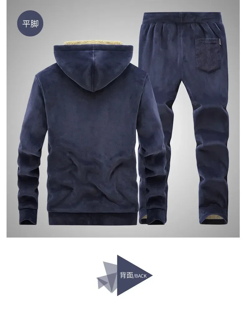 Riolio Hooded Sweat shirt+Pant 2-piece Sets Men Set Sports Suit Fleece Thickened Sportswear Casual Men Tracksuit Winter male Tracksuit