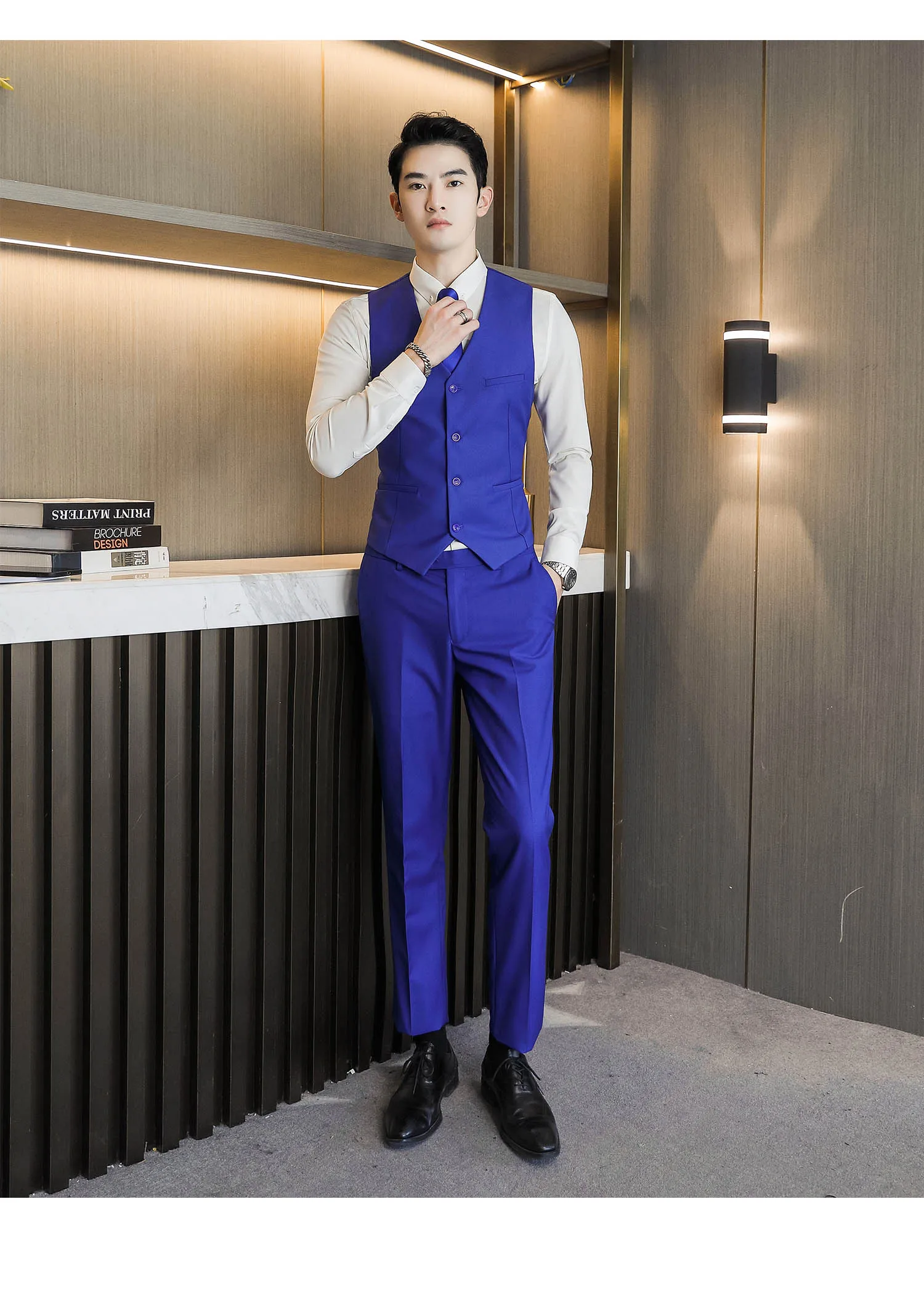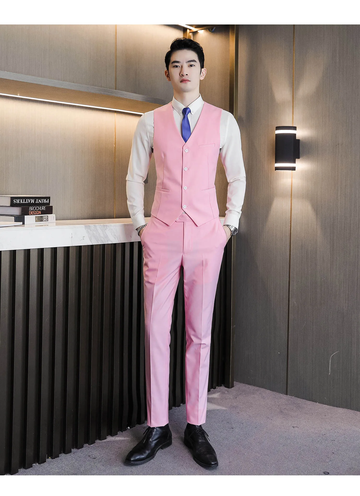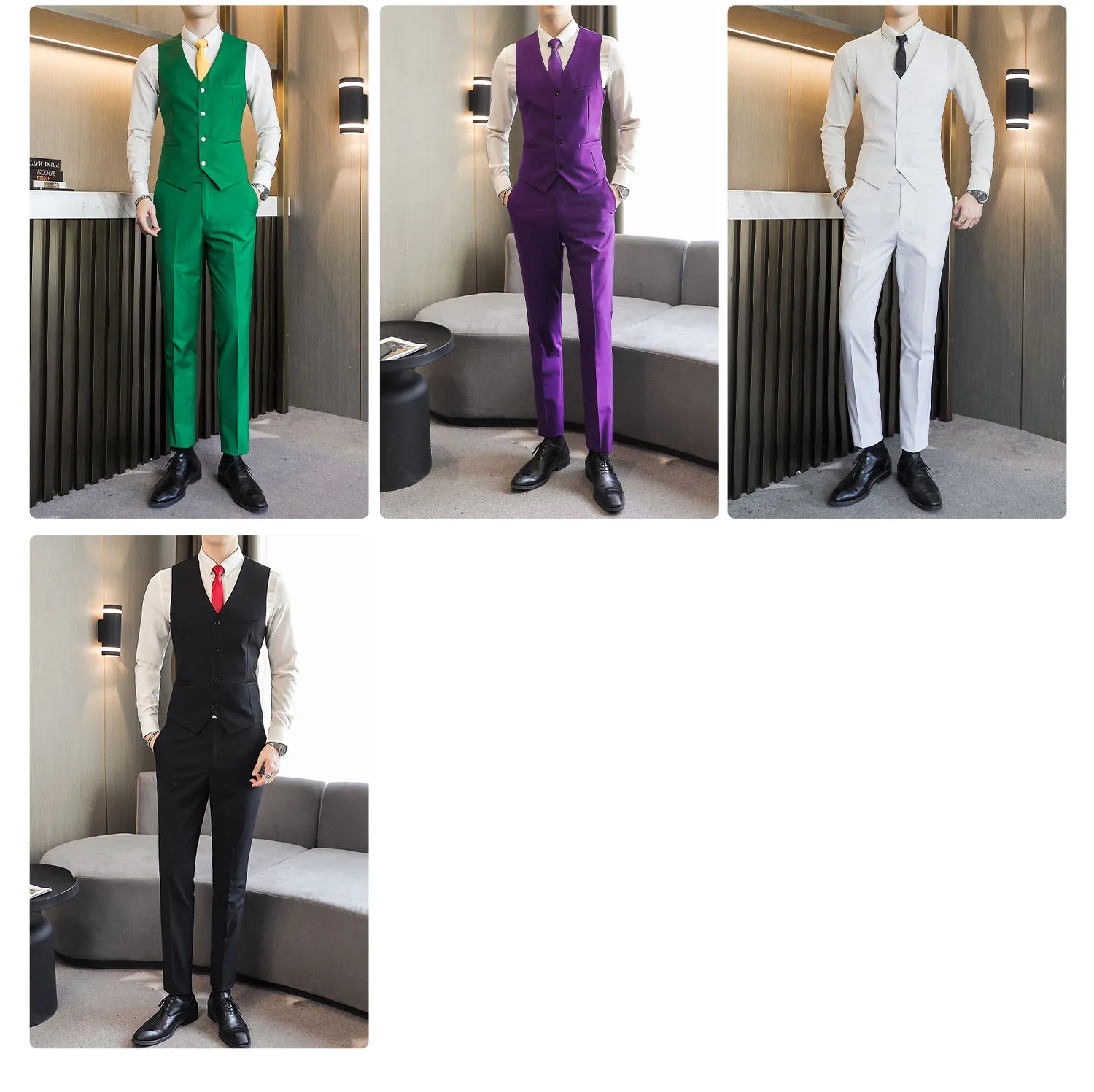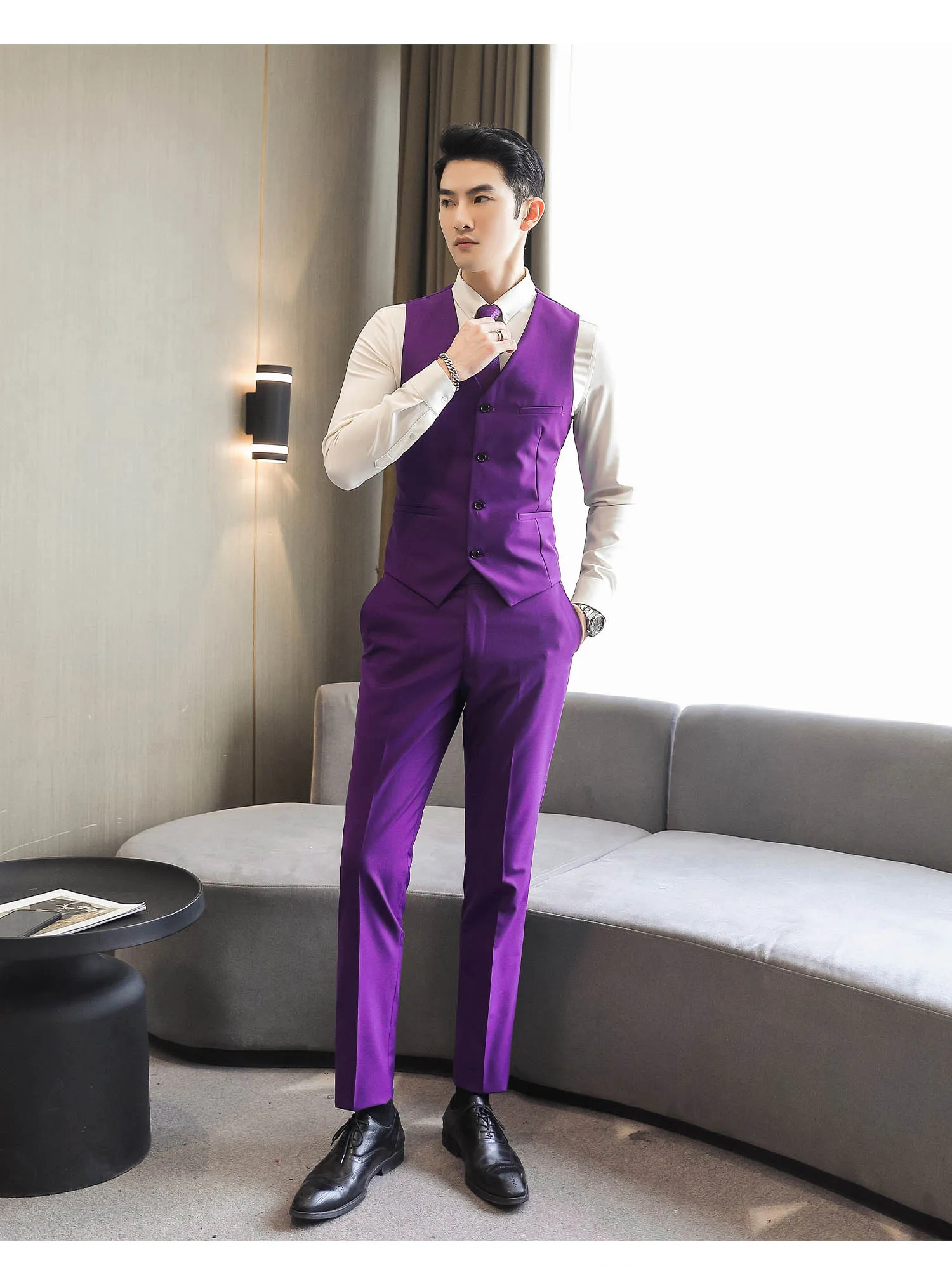 Riolio Two-pieces Male Formal Business Solid Suit for Men's Fashion Boutique Slim Fit White Purple Wedding Dress Suits ( Vest + Pants )