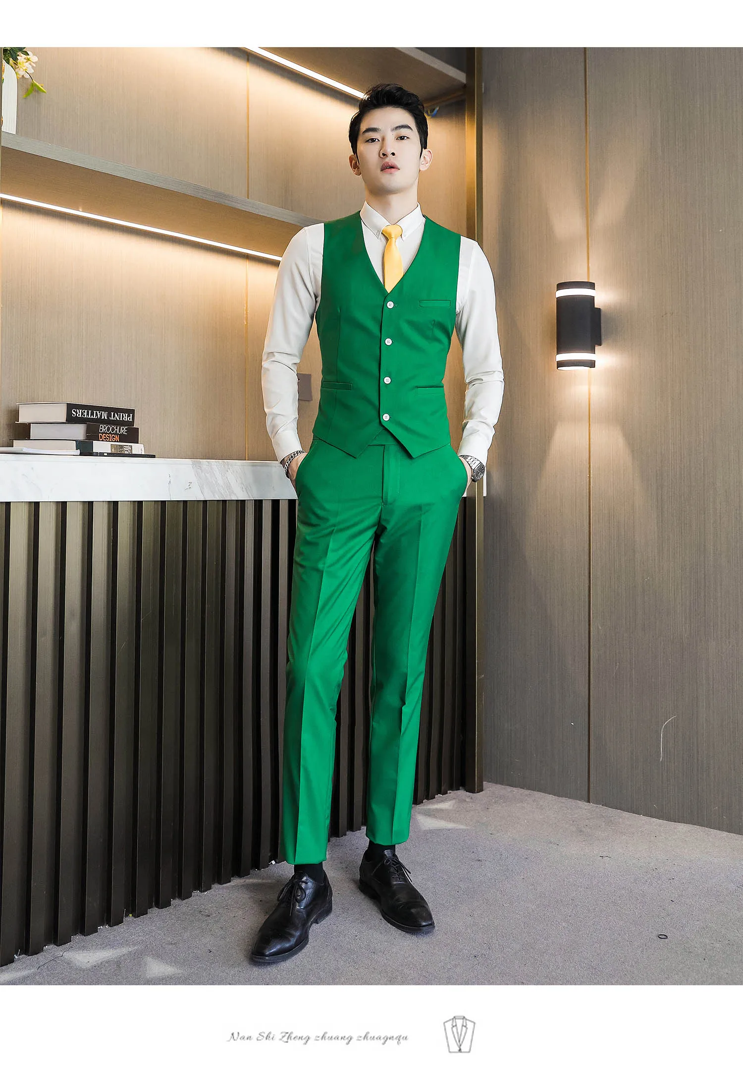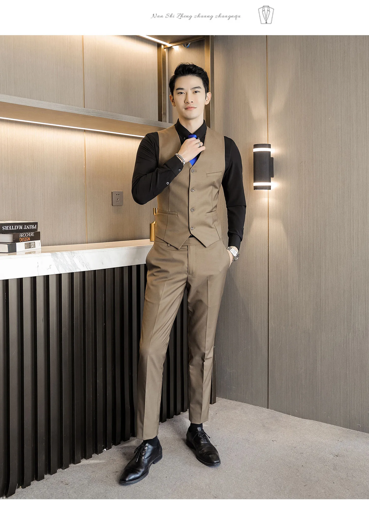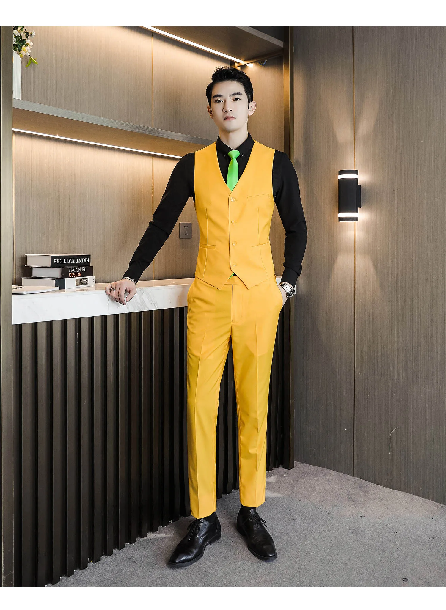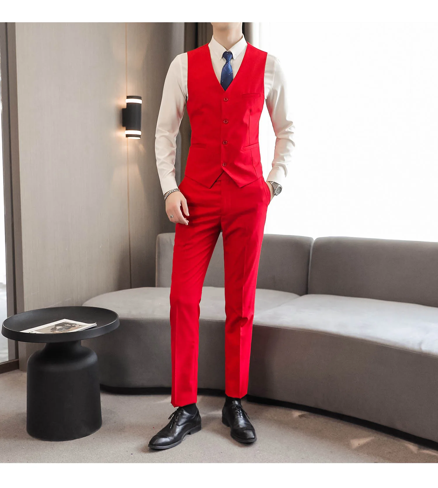 Riolio Two-pieces Male Formal Business Solid Suit for Men's Fashion Boutique Slim Fit White Purple Wedding Dress Suits ( Vest + Pants )