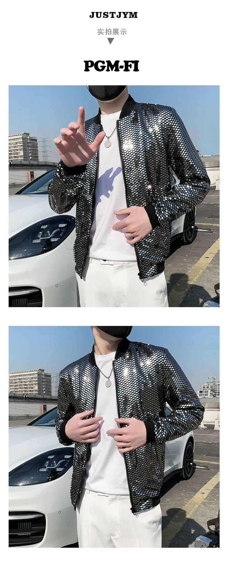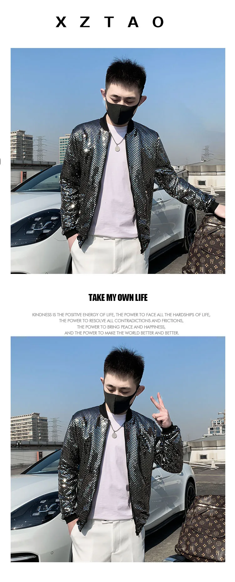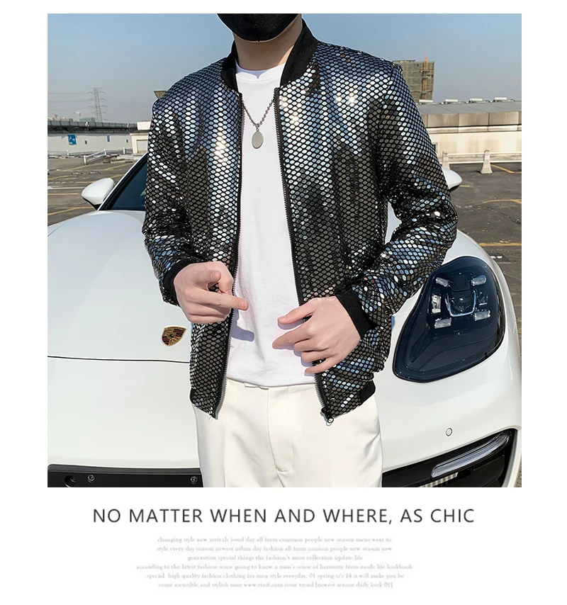 Riolio Fine Fashion Sequin Casual Men's Slim Jacket Lightweight Men's Stand-up Collar Coat Bomber Bomber Jacket