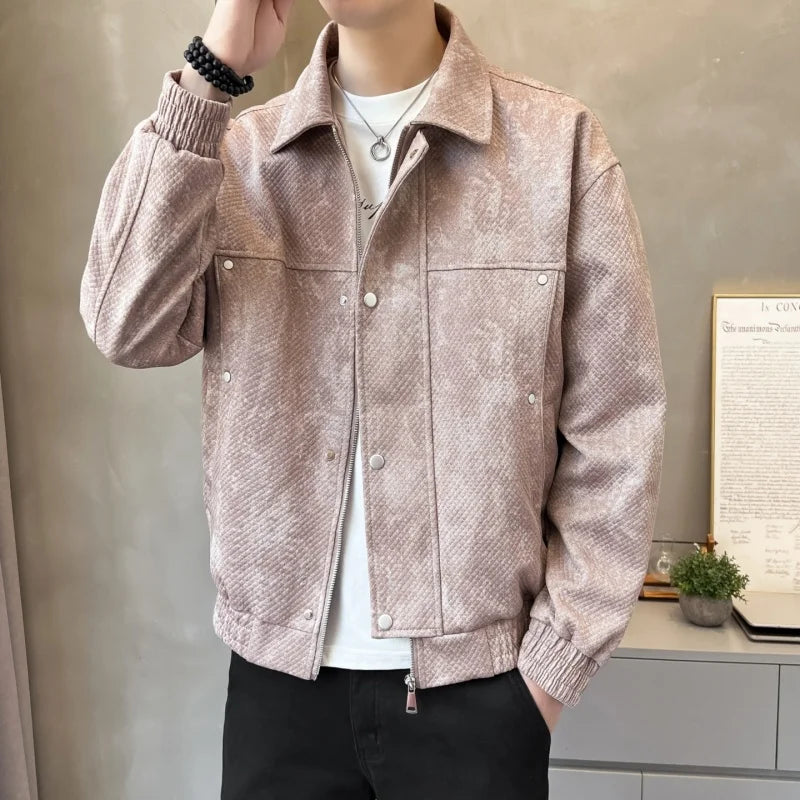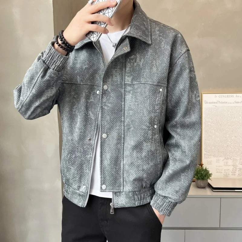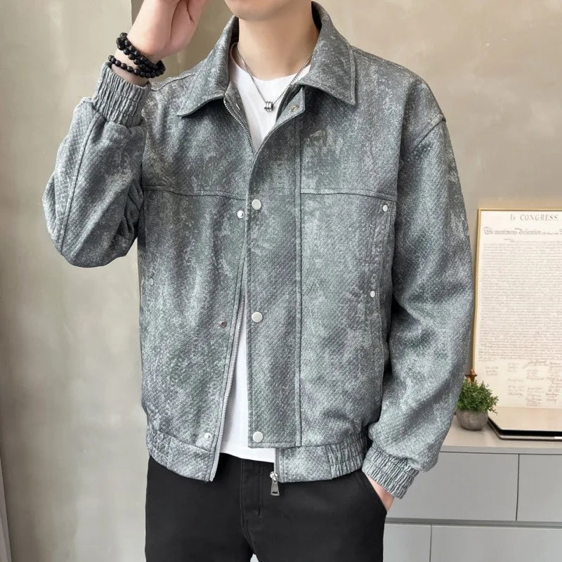 Riolio American Street Style Men's Jacket Handsome Trendy Jacket with Retro Collar Design and Rivet Decoration Double Door Front Coat
