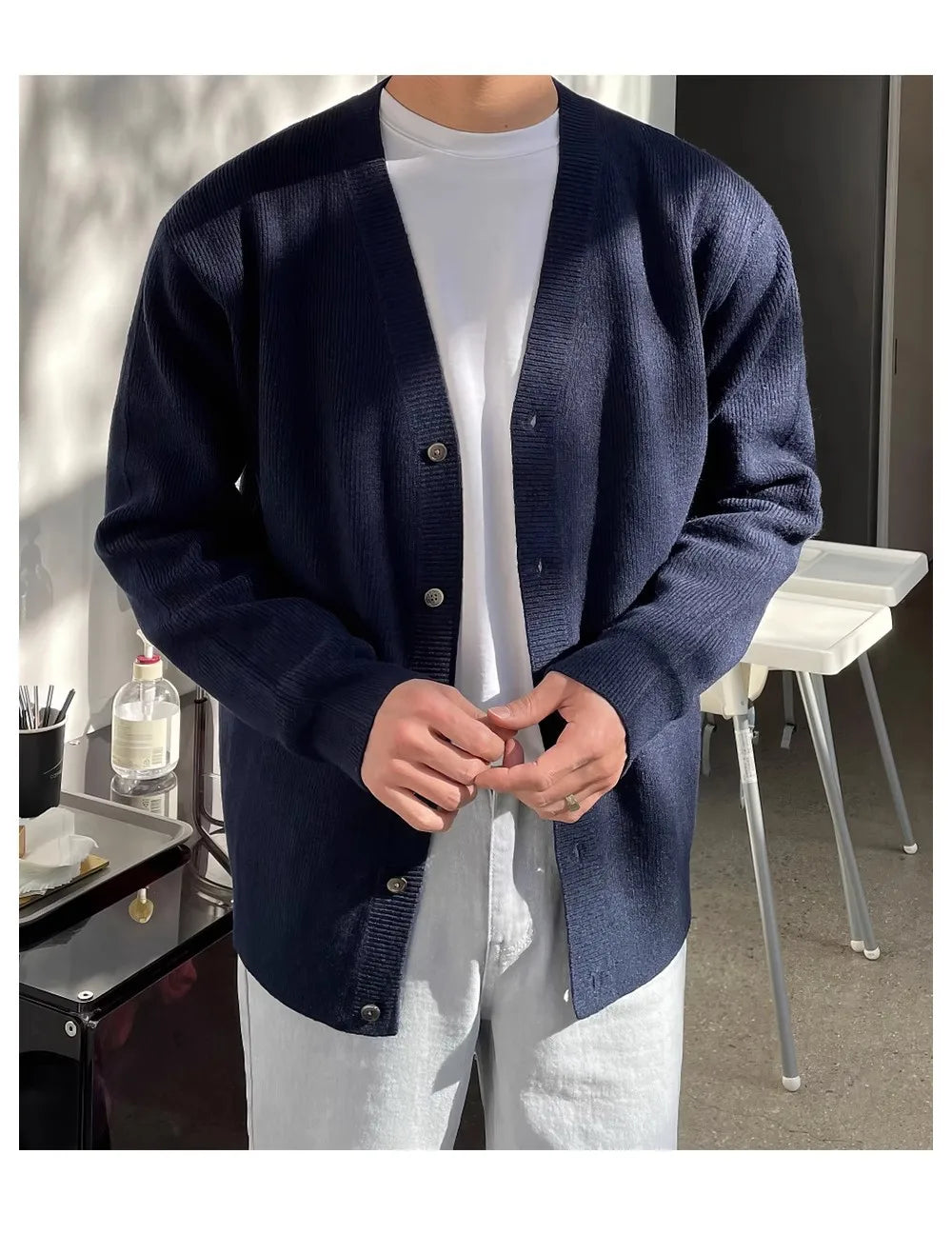 Riolio Autumn Fashion Men Luxury Knitted Sweater Coats Trendy Korean Popular V Neck Long Sleeve Cardigan Jacket Casual Stylish Knitwear