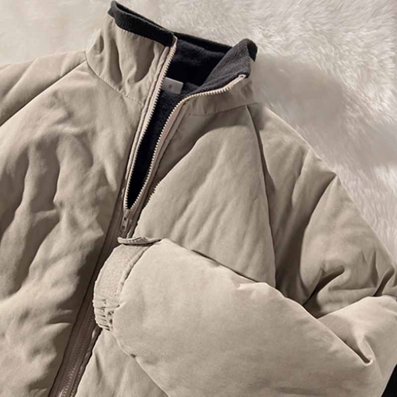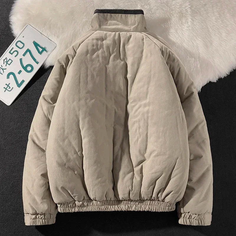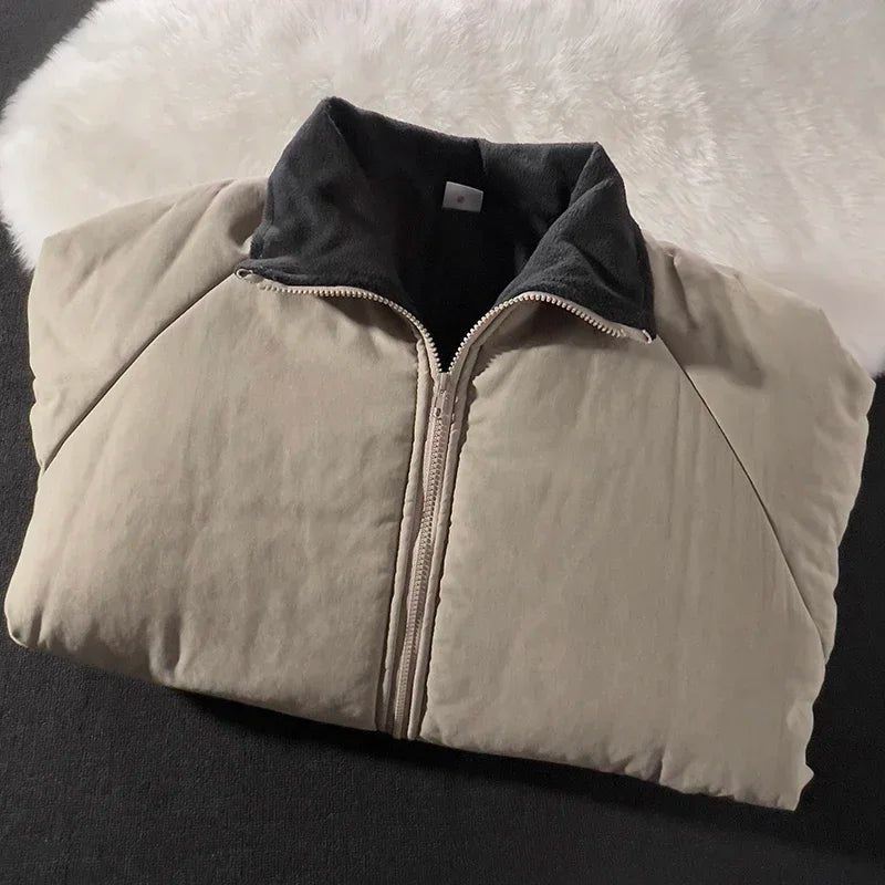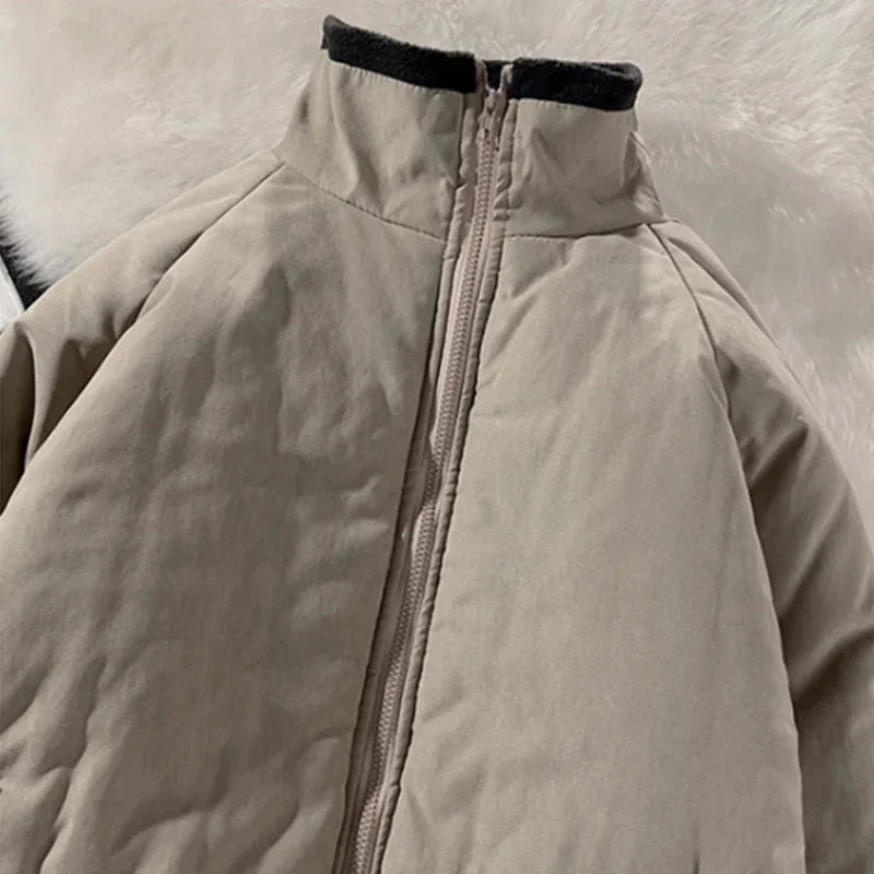 Riolio Japan Standing Collar Padded Jacket Vintage Cityboy Men's Plush Parkas American Retro Hong Kong Style Winter Jacket Cargo Coat
