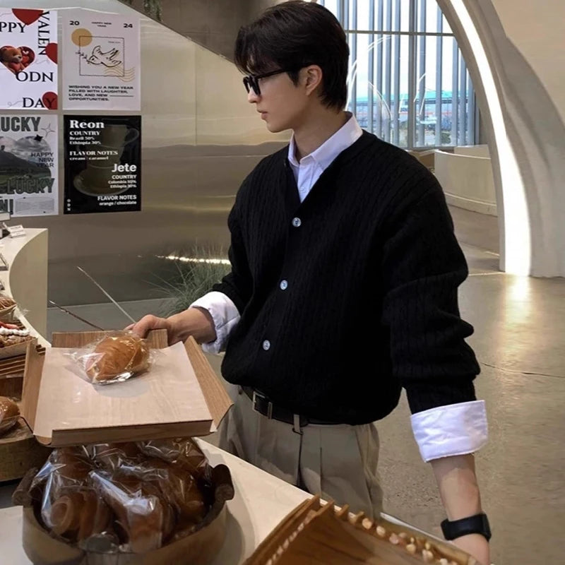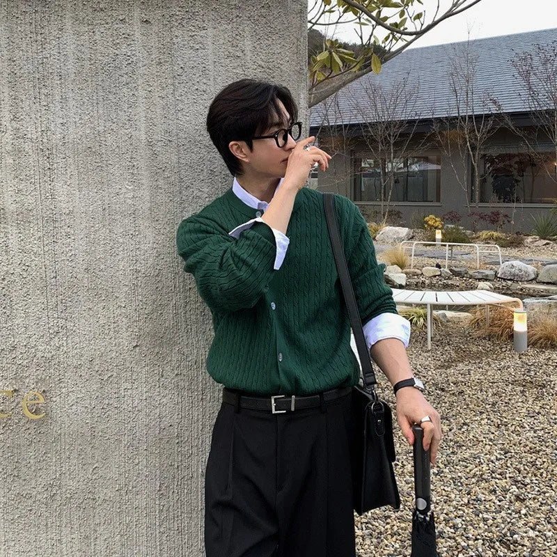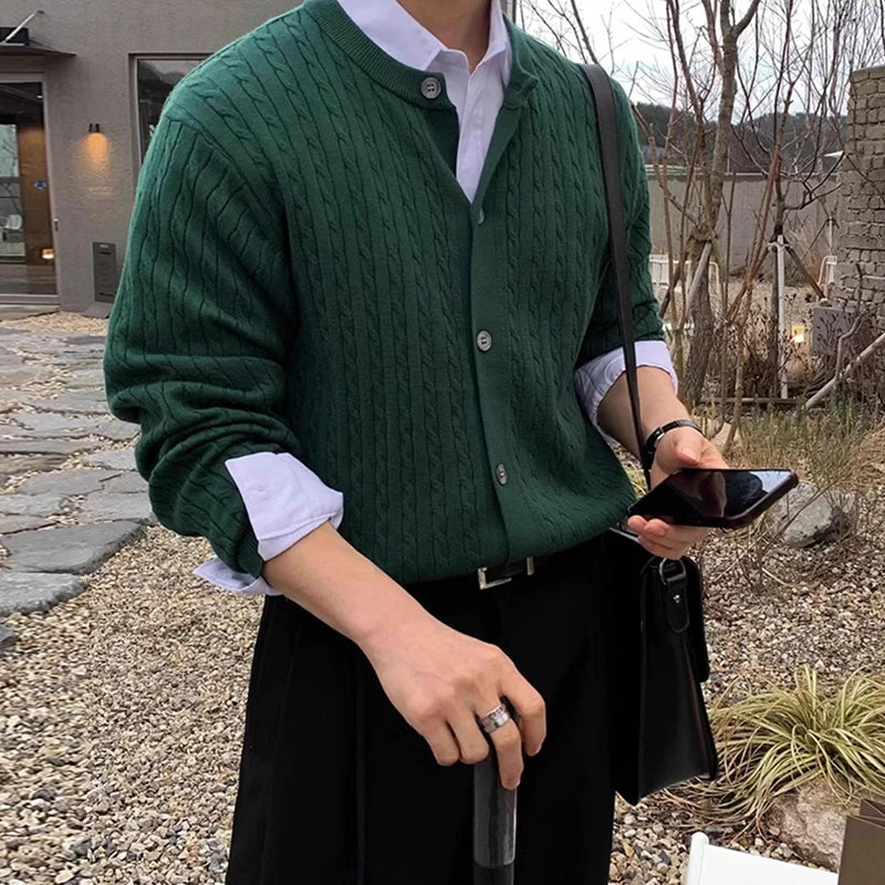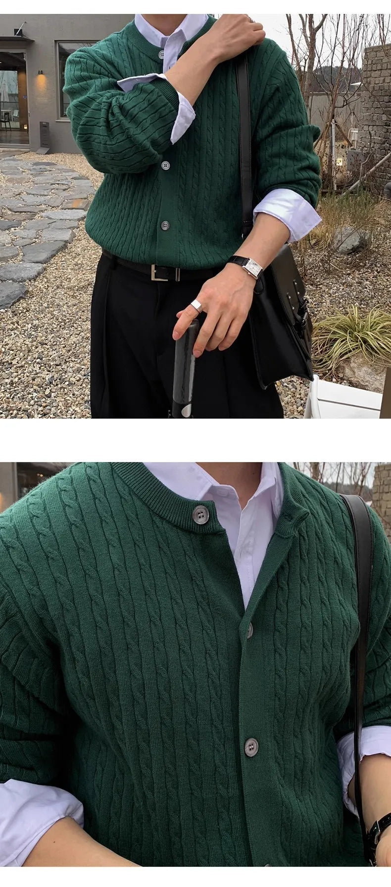 Riolio Korean Fashion Men Cardigan Light Luxury Knitted O Neck Long Sleeve Sweater Coats Autumn Leisure Premium Jacquard Knitwear