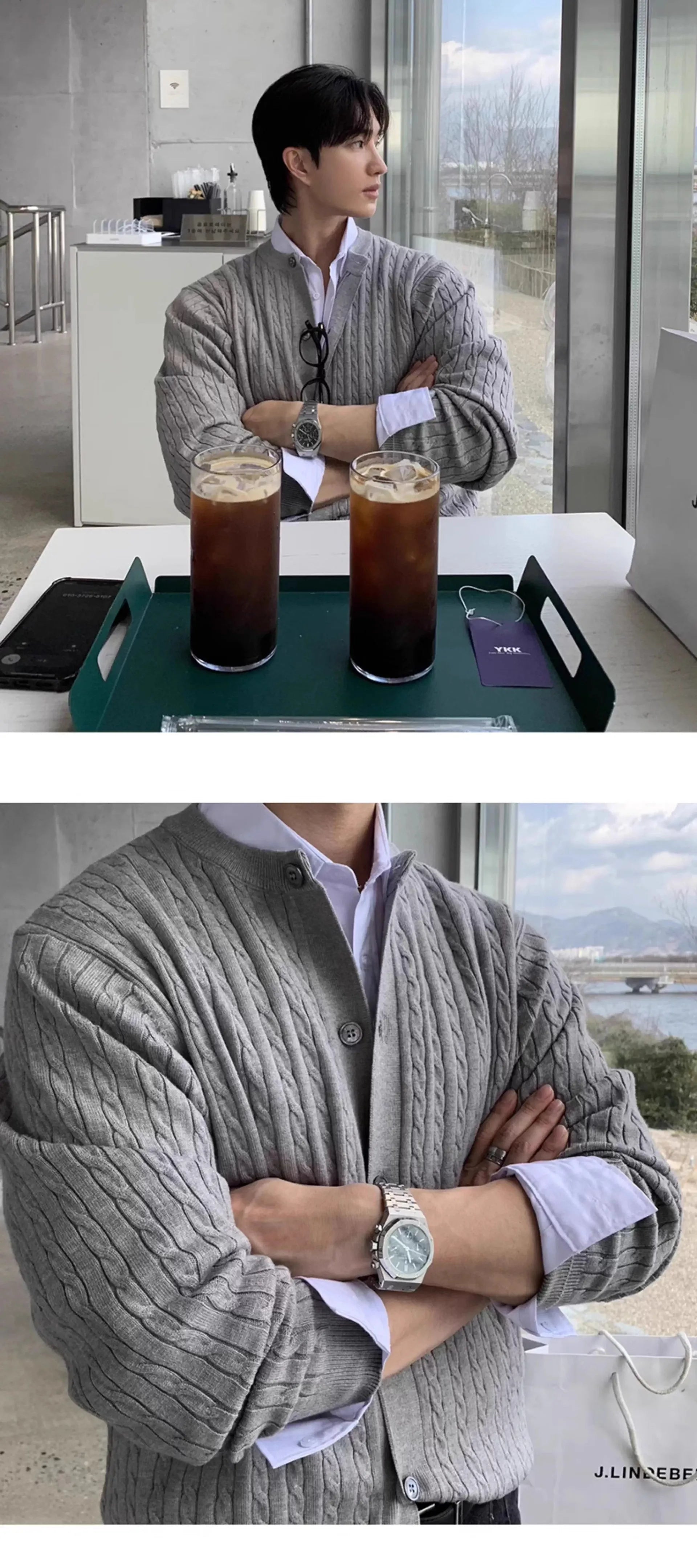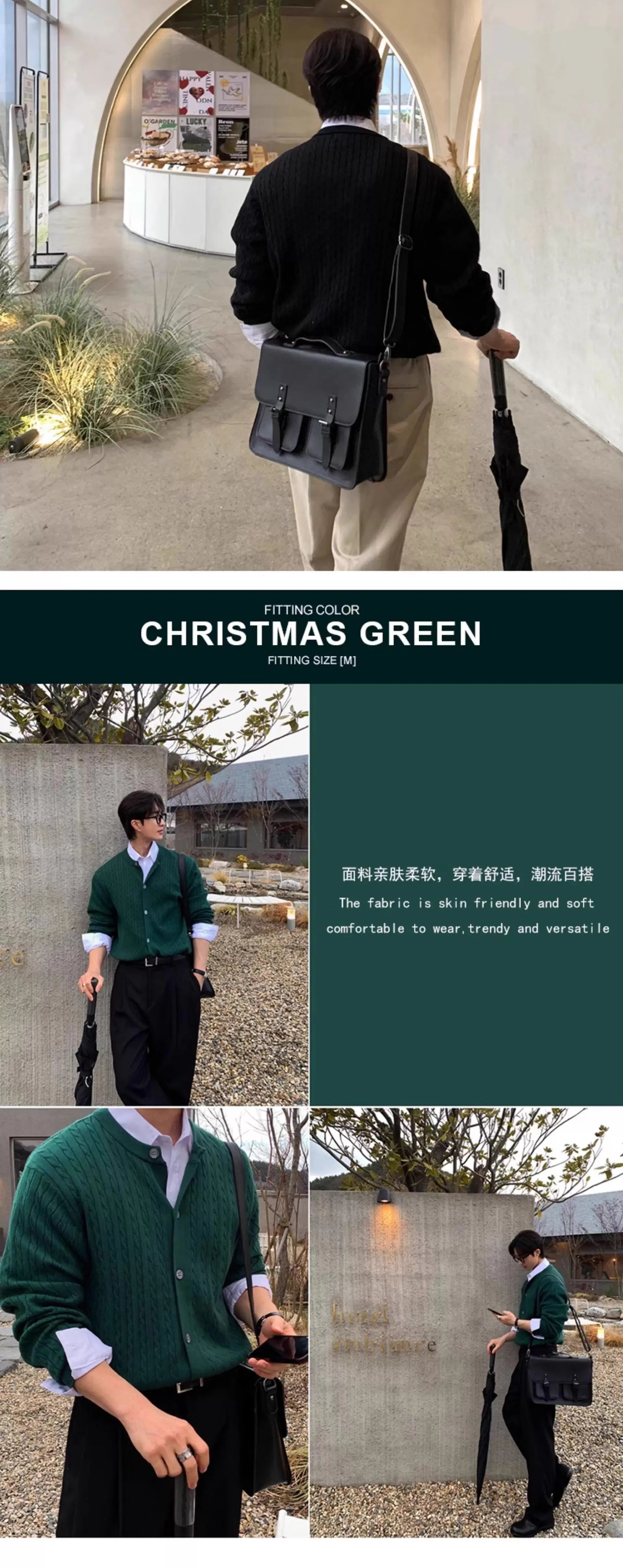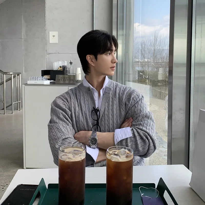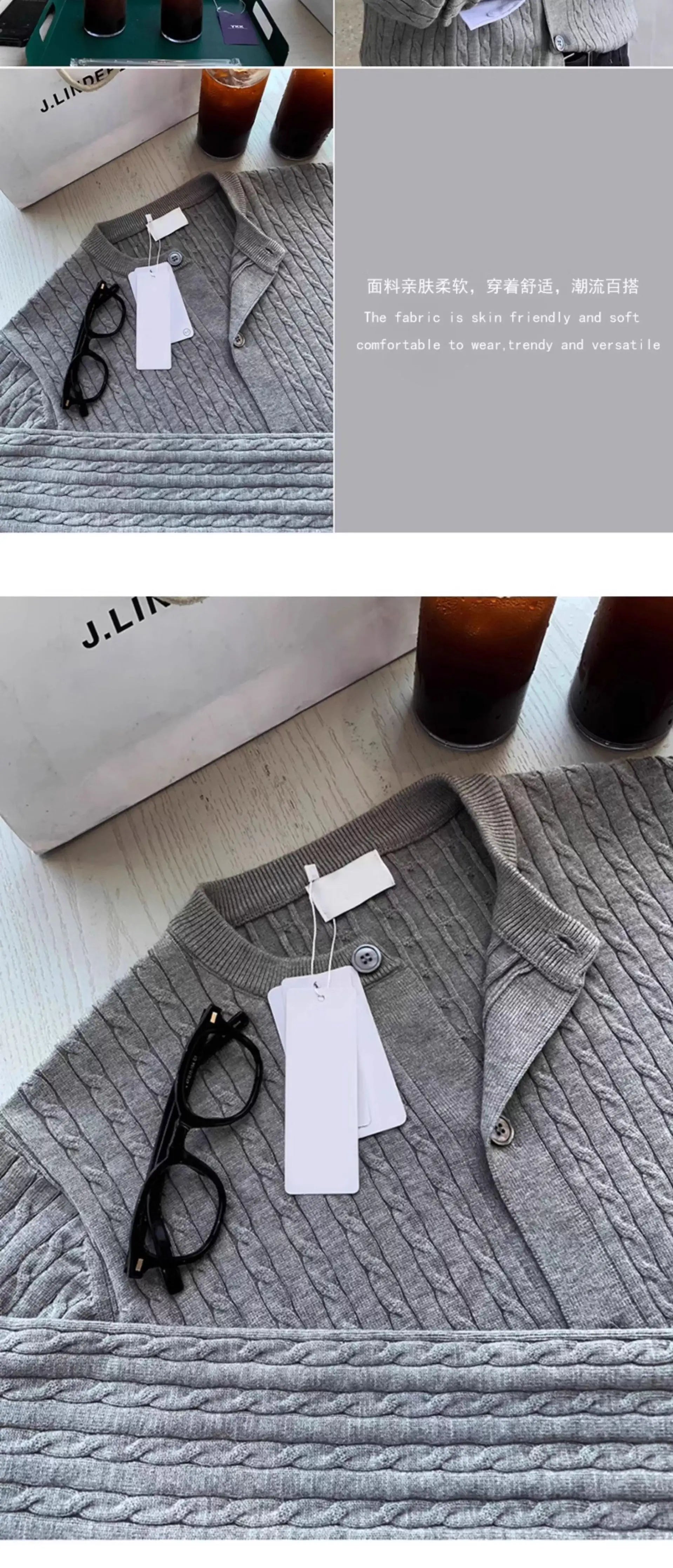 Riolio Korean Fashion Men Cardigan Light Luxury Knitted O Neck Long Sleeve Sweater Coats Autumn Leisure Premium Jacquard Knitwear