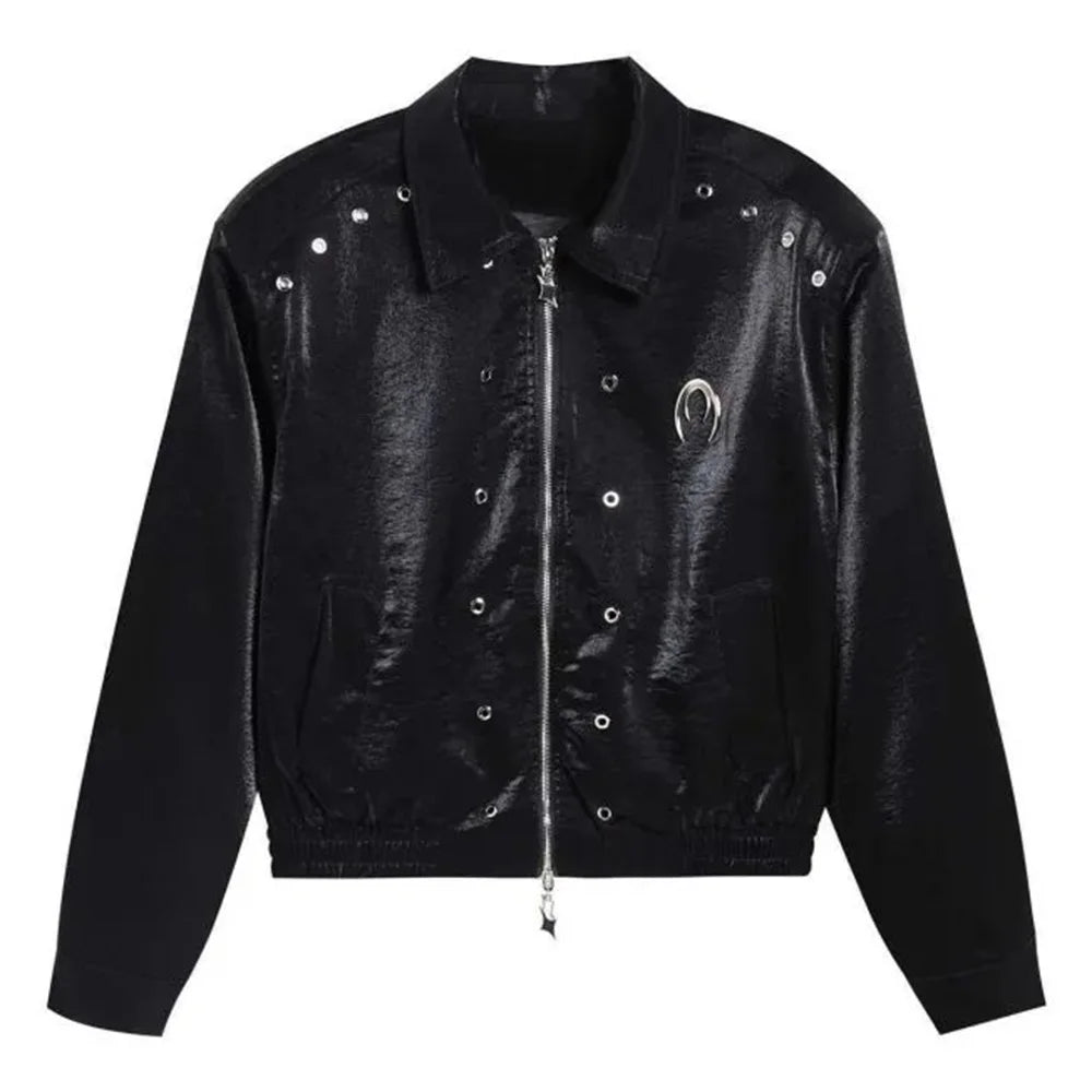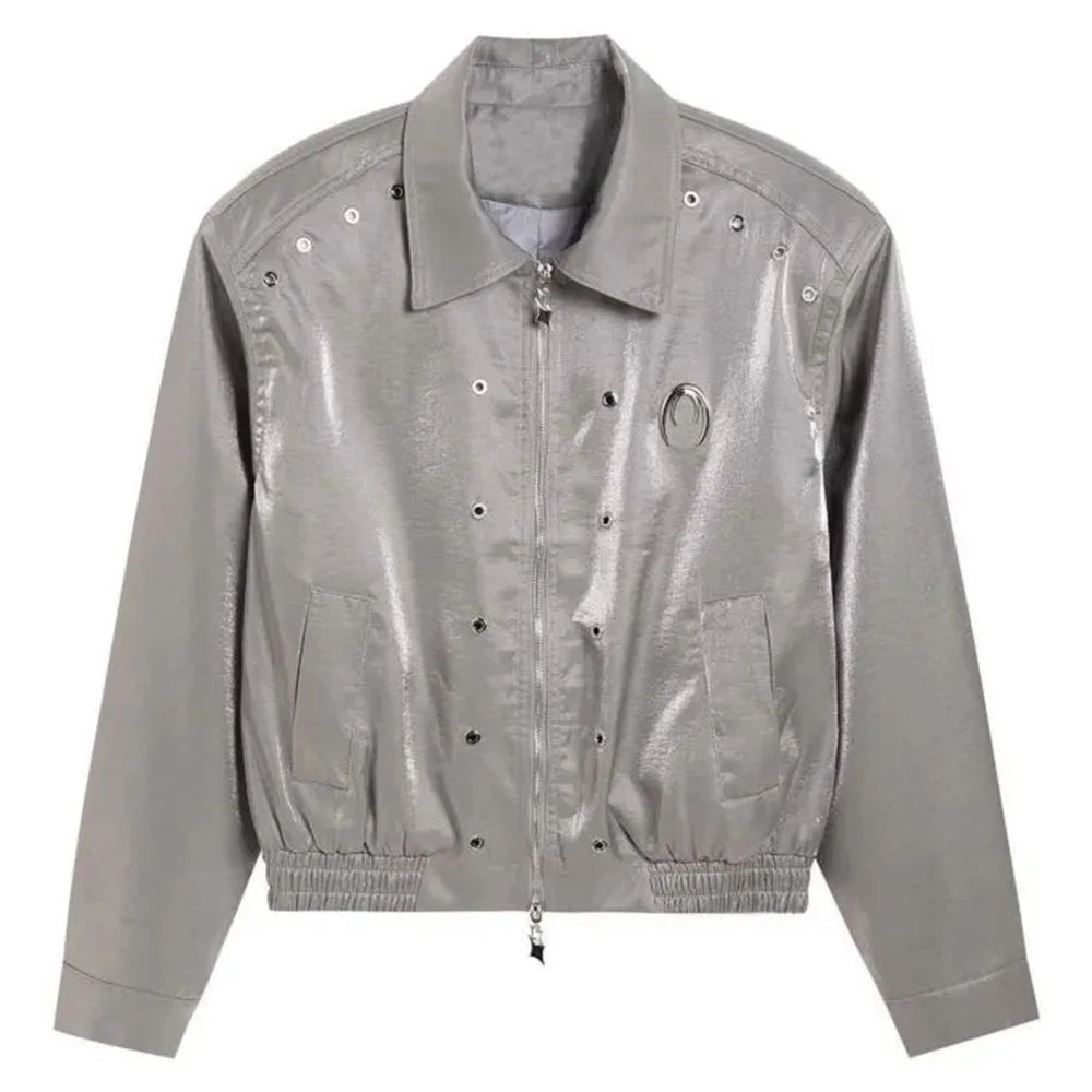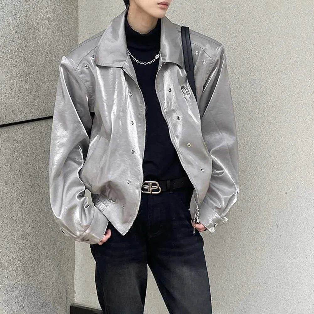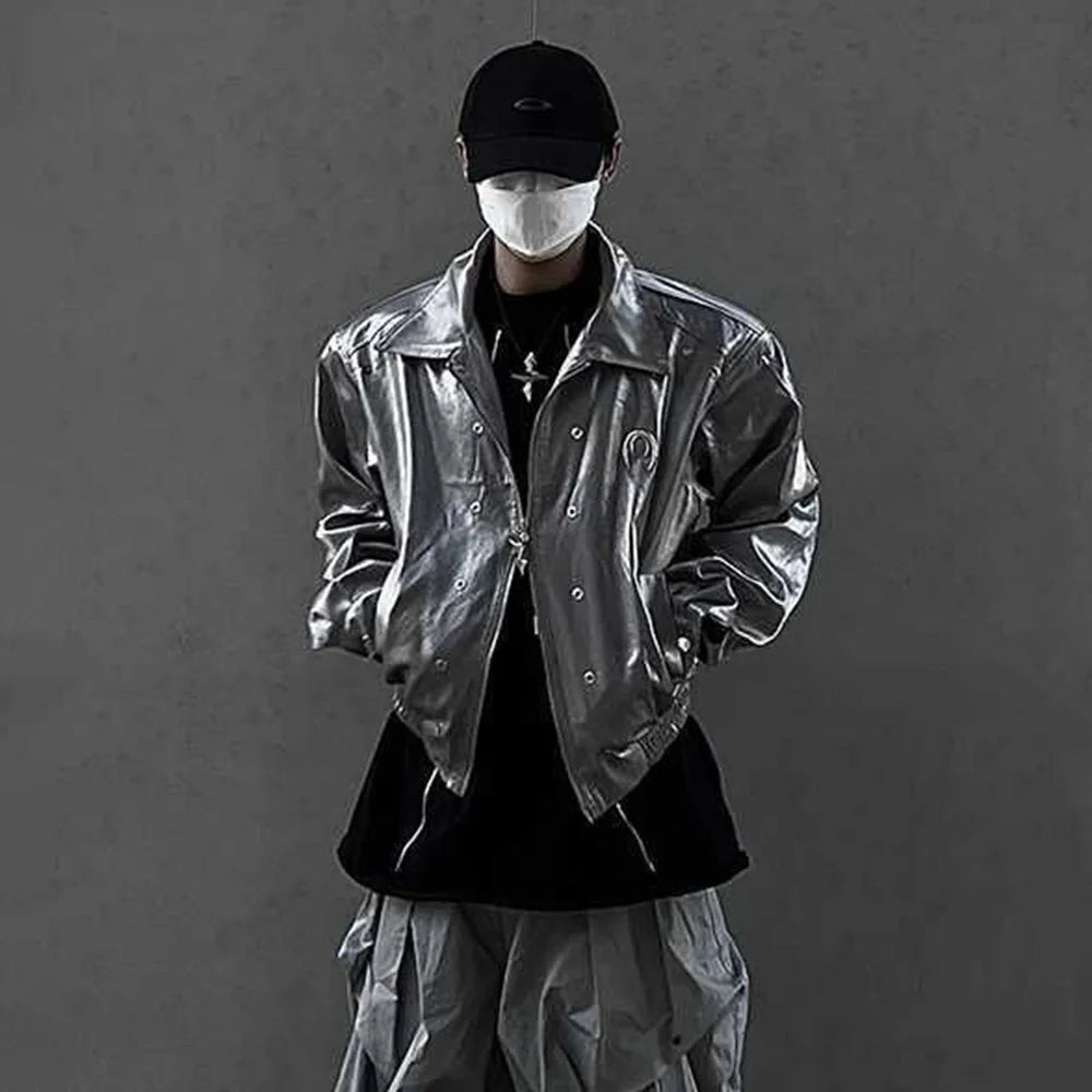 Riolio Men's Leather Outerwear Y2k Clothes Trend Streetwear Faux Leather Glossy Long Sleeve Jackets Motorcycle Zipper Short Tops Coat