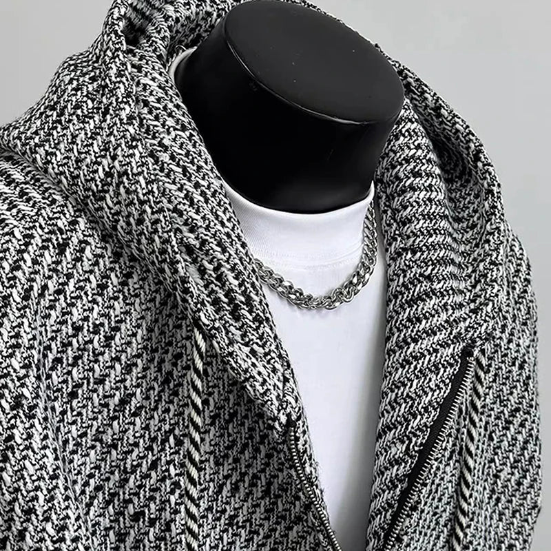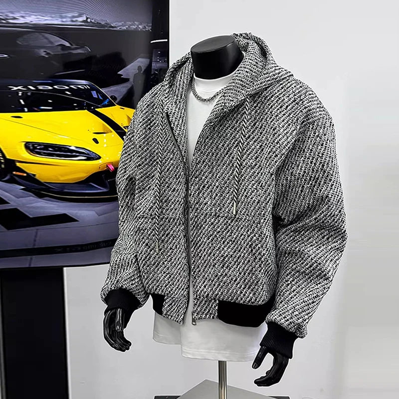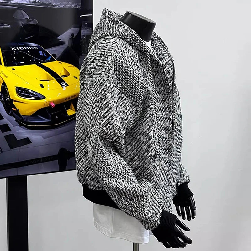 Riolio New Autumn Men Textured Hooded Sweatshirt Jacket Light Luxury Harajuku Zip-up Leisure Fashion Long Sleeve Hoodie Crop Coat M-2XL