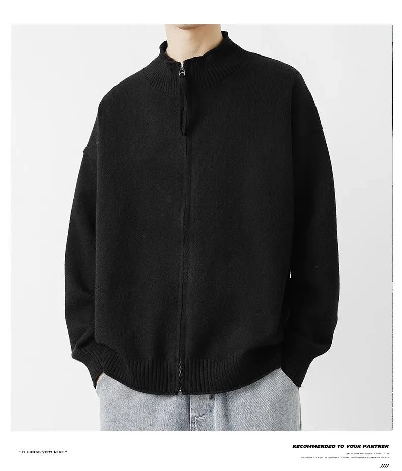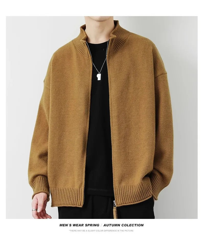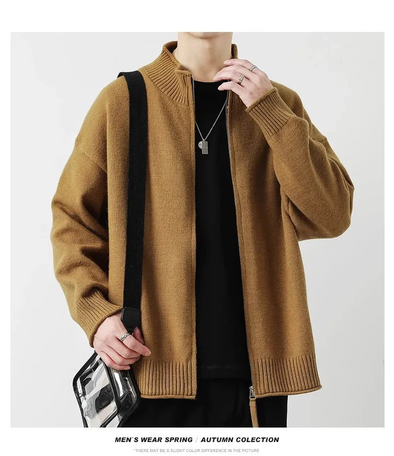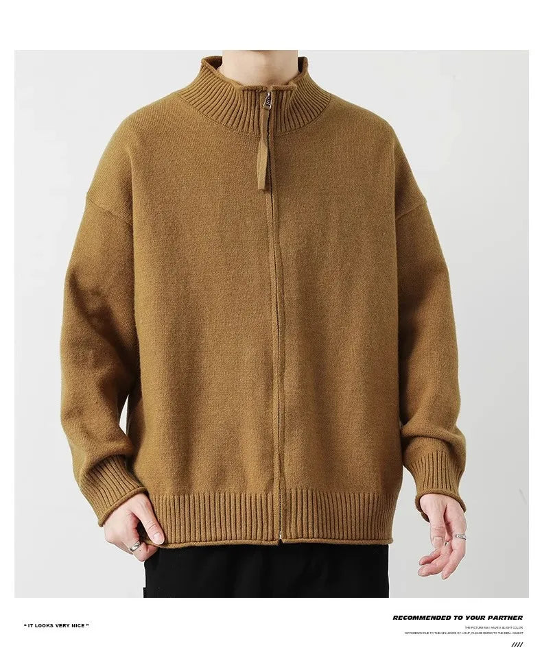 Riolio New Japanese Popular Men Cardigan Jacket Luxury Trendy Turtleneck Knitted Zip-up Long Sleeve Sweater Coat Premium Knitwear M-3XL