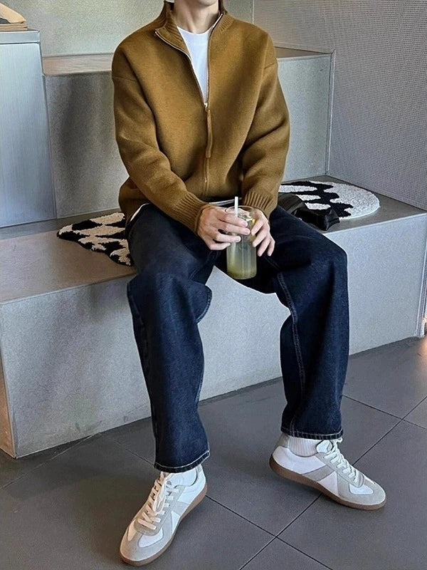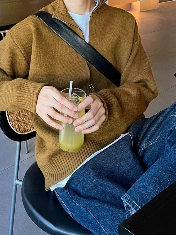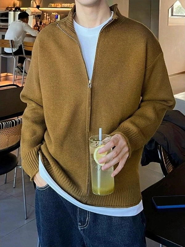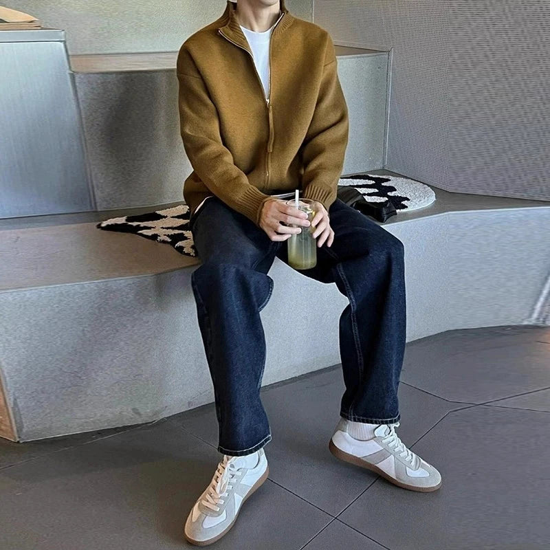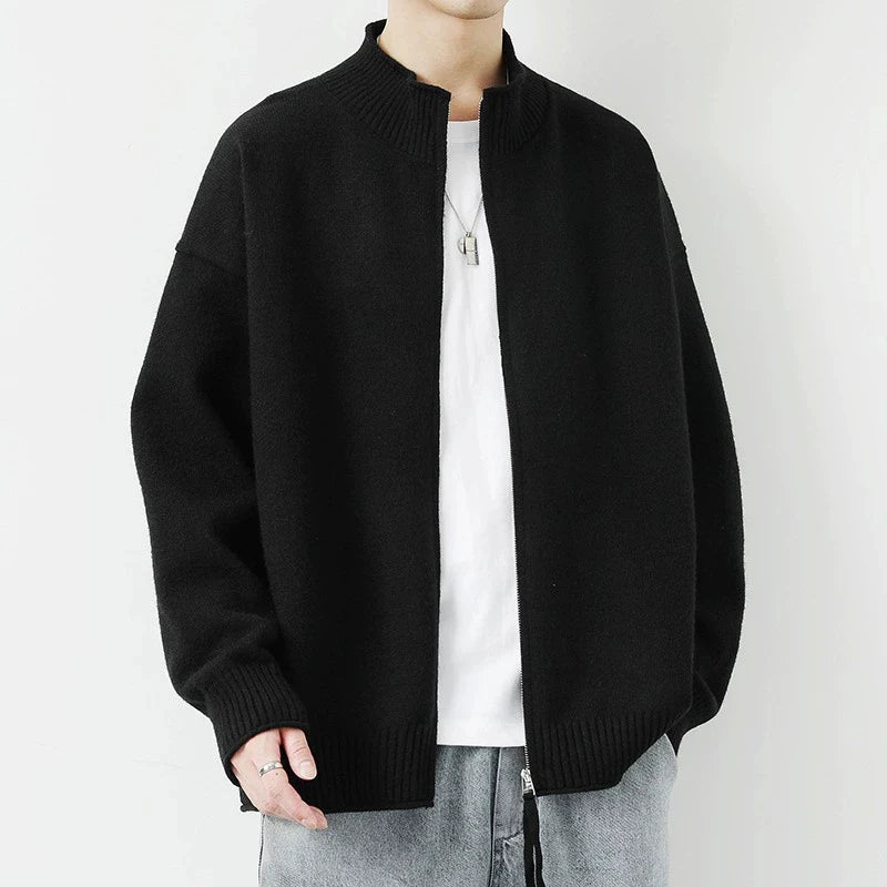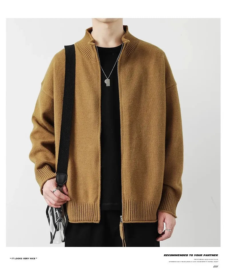 Riolio New Japanese Popular Men Cardigan Jacket Luxury Trendy Turtleneck Knitted Zip-up Long Sleeve Sweater Coat Premium Knitwear M-3XL