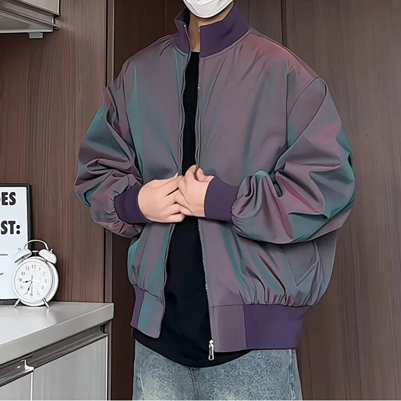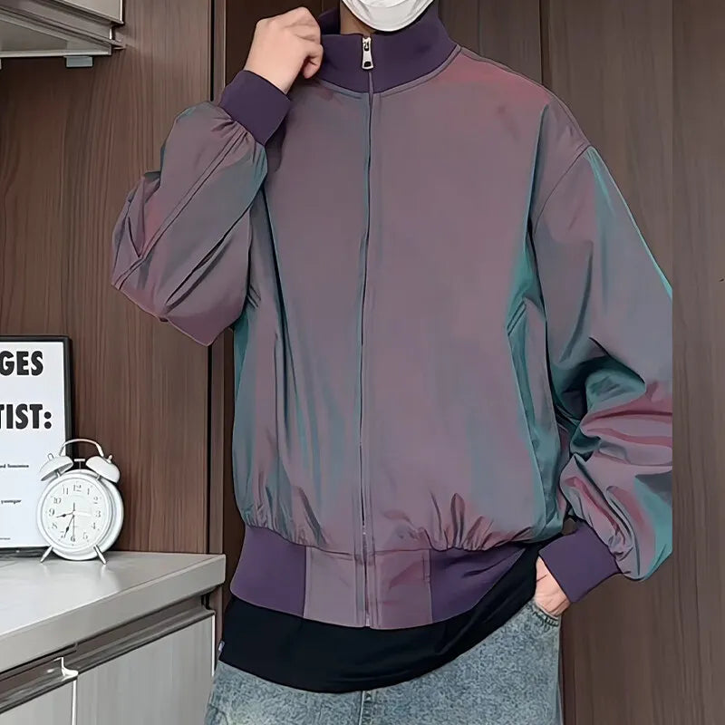 Riolio Purple jacket Stand Collar Loose Outdoor Spring Mens Jacket Casual Windbreaker Streetwear Urban Travel Trendy Daily Wear Coat