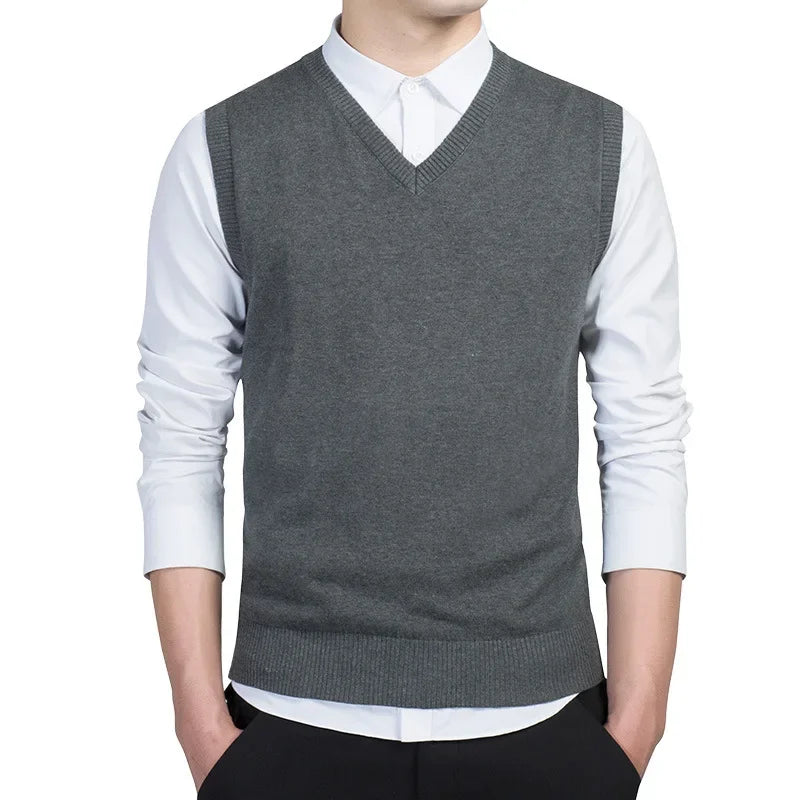 Riolio Spring Autumn Knit Vest Male Casual Sweater V-Neck Waistcoat Man Warm Sweaters Vest Knitwear Jumpers Sleeveless Vest Man Clothes